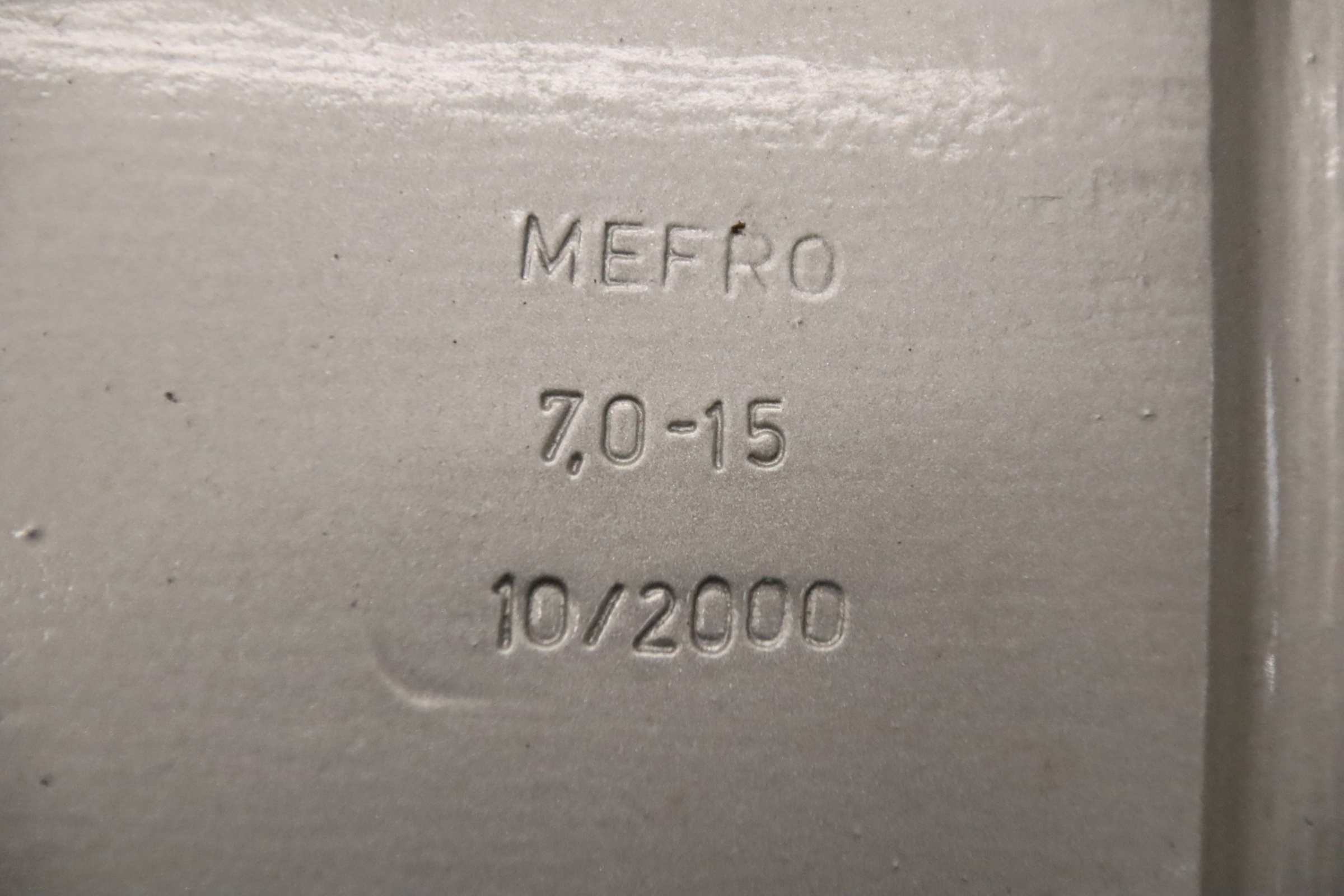 Tires with rim, trailer tires, heavy-duty tires, heavy-duty wheels, forklift tires, steel rims, rims -Manufacturer: Mefro, 6-hole steel rim -Type: 7.0-15 -Hub bore: Ø 160 mm -Bolt circle: Ø 205 x 22 mm -Quantity: 2x rims available -Price: per piece -Dimensions: Ø 460 x 225 mm -Weight: 30 kg/pc.