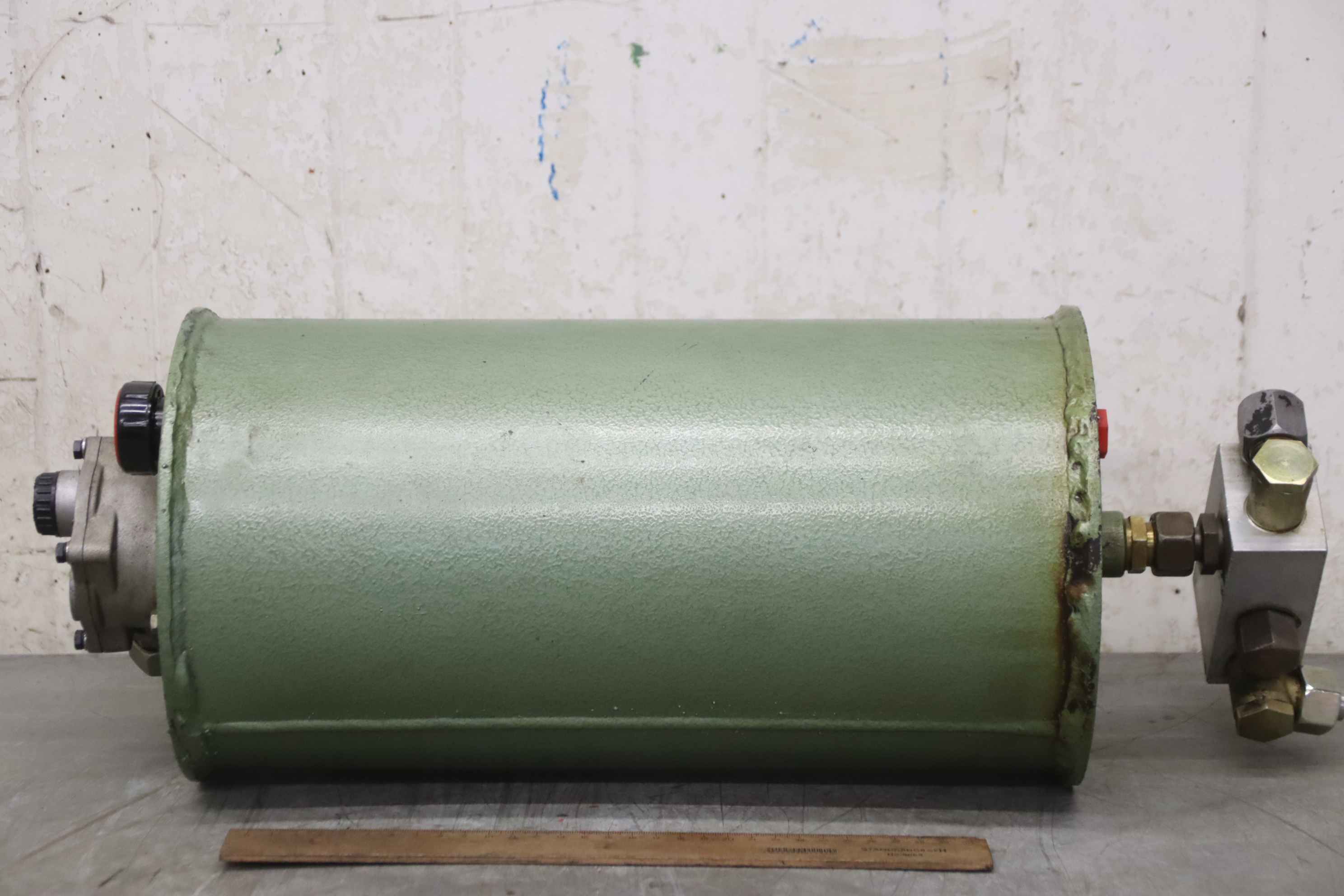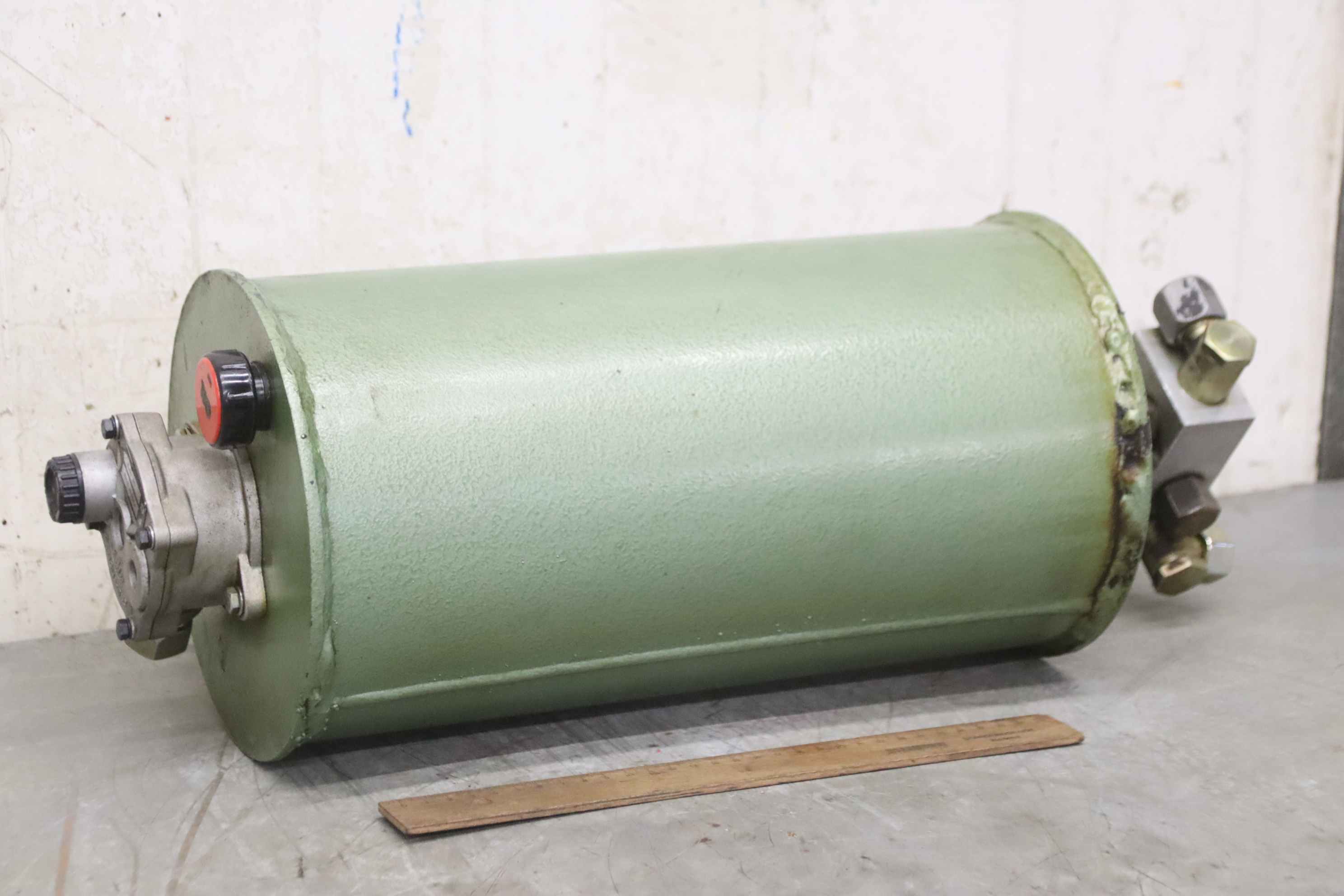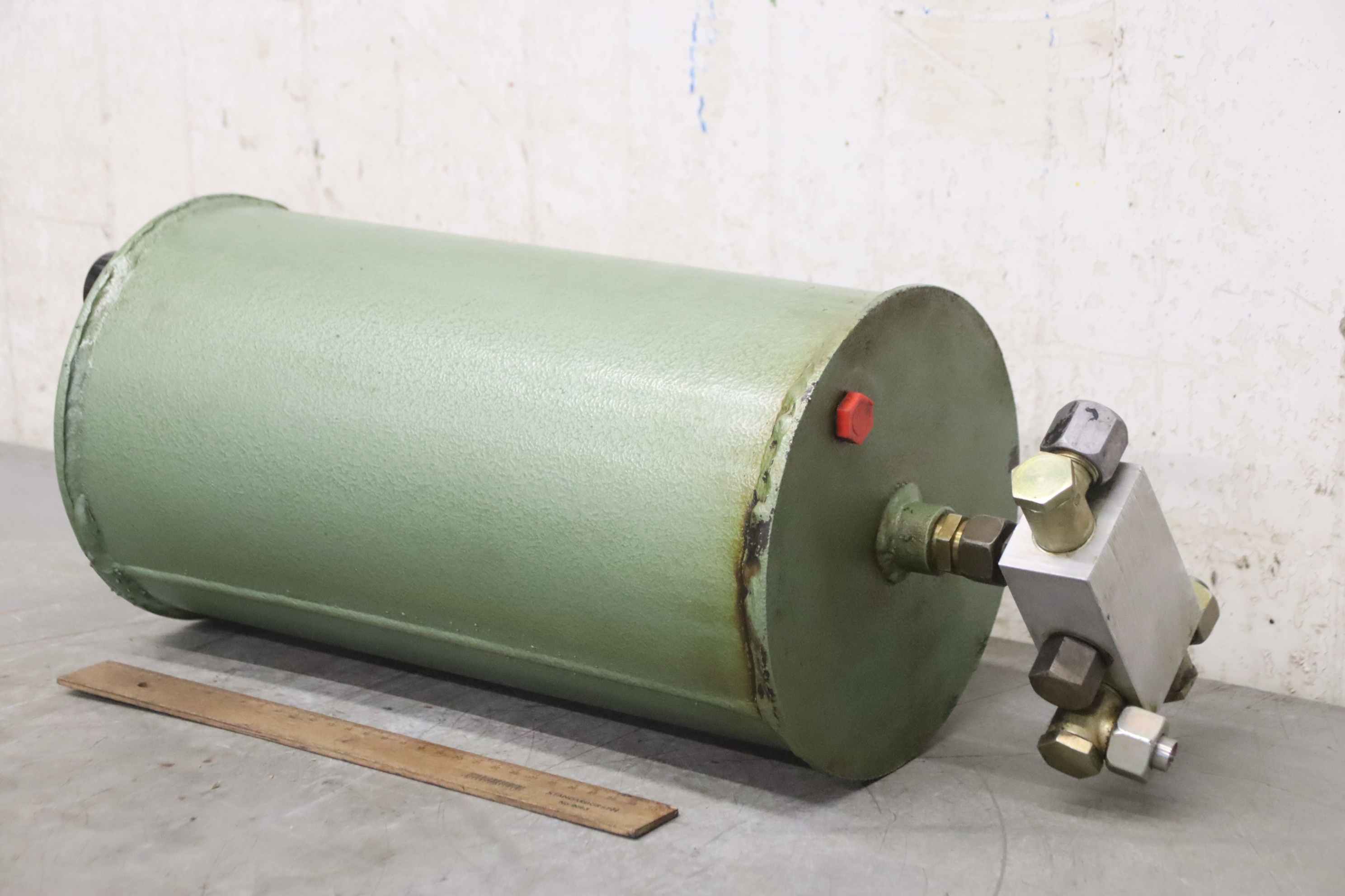 Hydraulic oil tank, hydraulic oil reservoir, hydraulic tank -Hydraulic reservoir: from Butler 1200 pallet jack -Contents: approx. 11 liters -Additional parts: see photos -Dimensions: Ø 210 x 580 mm -Weight: 11 kg