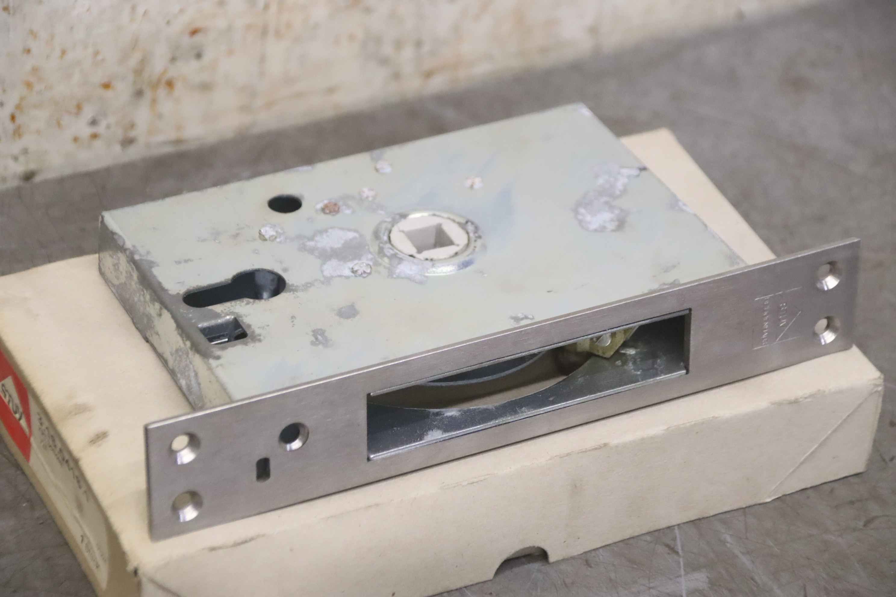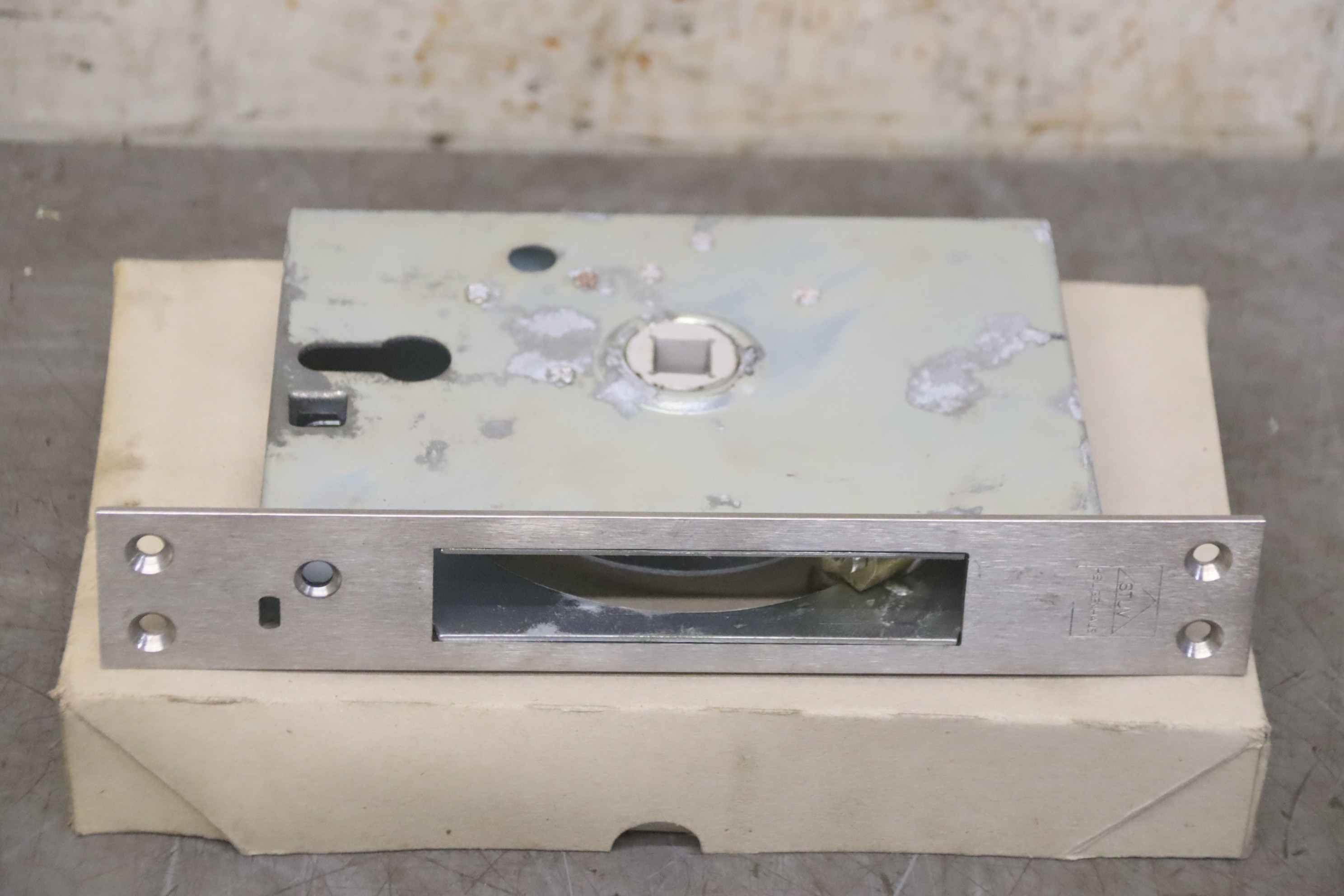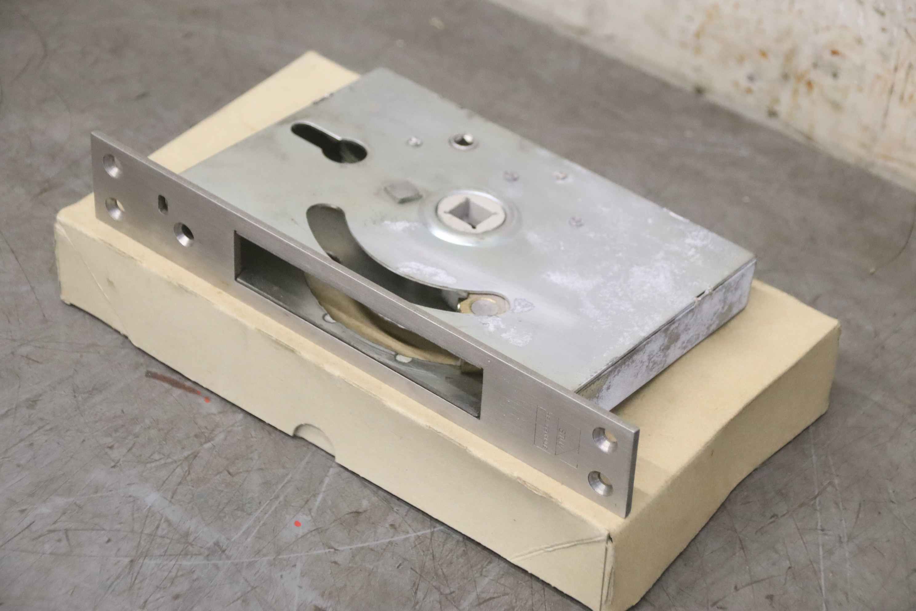 Cold room lock, cold room lock, mortise snail lock, cold room door lock -Manufacturer: STUV, cold storage lock unused Ovp -Type: 3.16.416.1 KRT Lock V2A -Number: 5x door lock available -Price: per piece -Carton dimensions: 260/150/H40 mm -Weight: 1.1 kg/piece