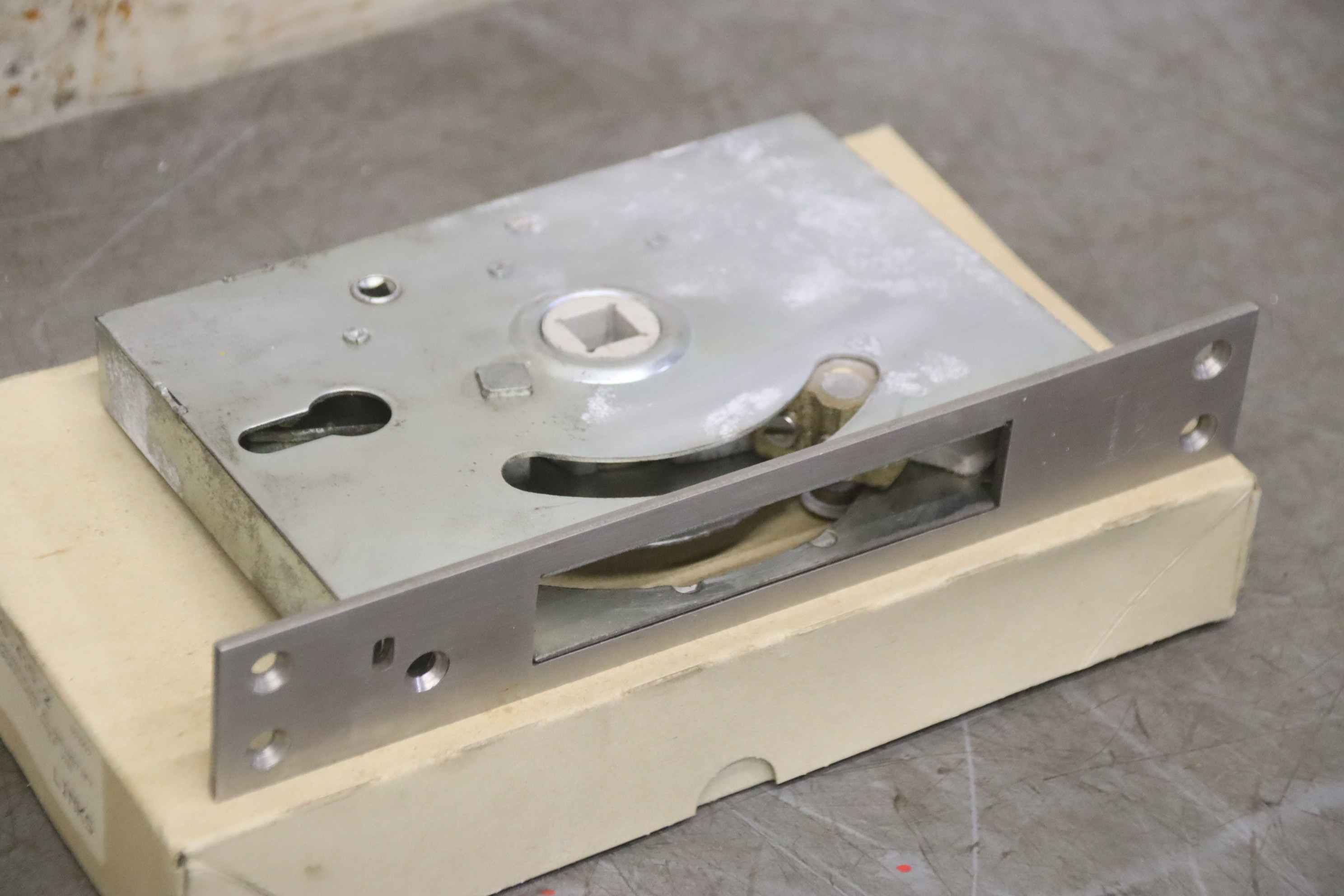 Cold room lock, cold room lock, mortise worm lock, cold room door lock-Manufacturer: STUV, cold storage lock unused in original packaging-Type: 3.16.415.2 Links-Quantity: 4x door lock available-Price per piece-Dimensions of box: 260/150/H40 mm-Weight: 1.3 kg/pc.
