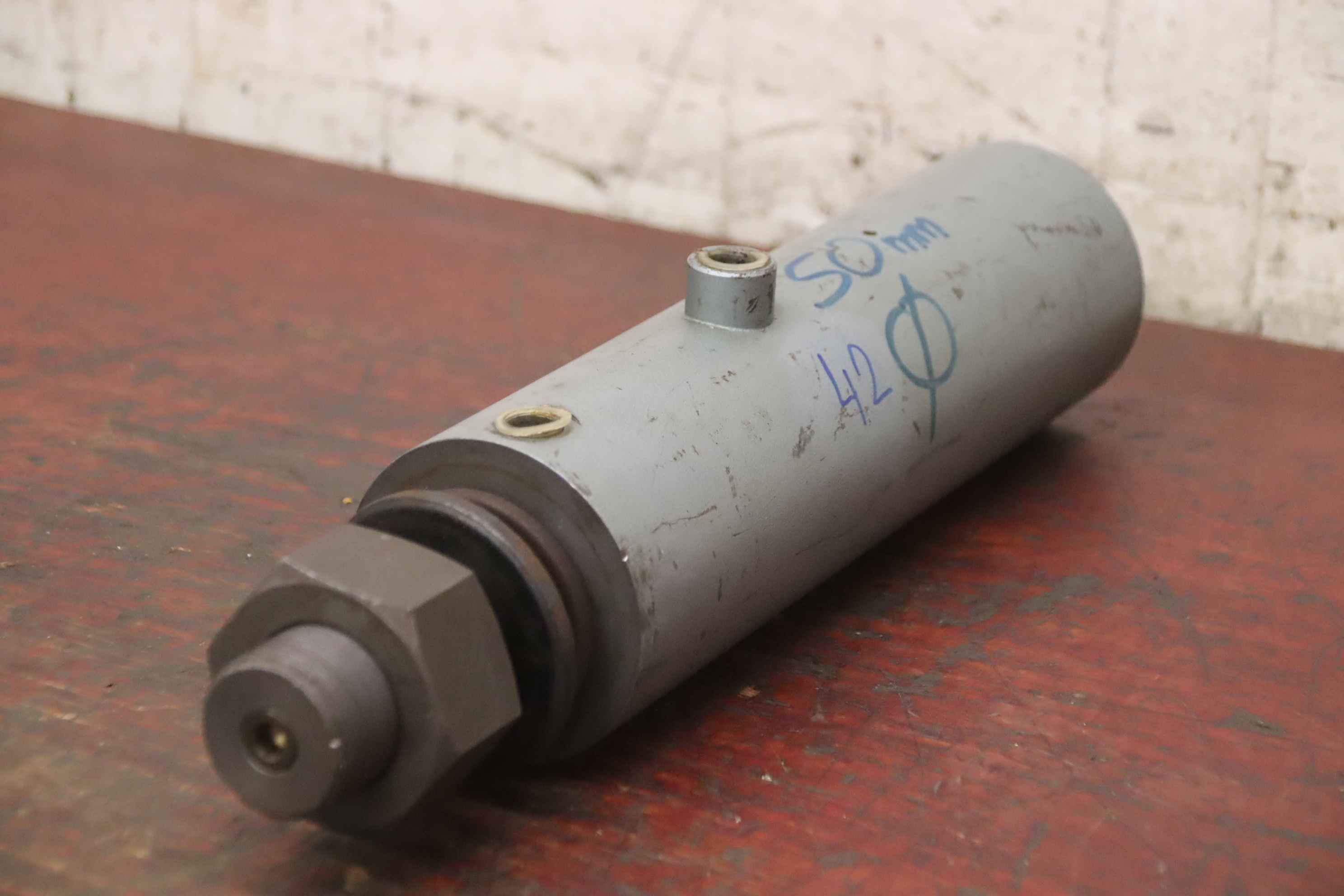 Rear axle, steering axle, forklift axle, steering cylinder, hydraulic cylinder, support cylinder, hydraulic ram, pressure ram, tie rod cylinder-Hydraulic cylinder: tie rod cylinder stroke 50 mm-Piston rod: Ø 42 mm-Dimensions: Ø 90 x 420 mm-Weight: 12 kg