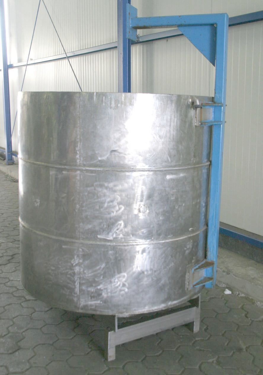 Agitator tank, agitator tank, agitator tank, agitator tank, silo system, transport silo, tank, fertilizer storage silo, melting tank, melting tank -Material: stainless steel -Bracket: for agitator -Content of the tank: 1.3 m3 -Inside diameter tank: 1230 mm -Interior height tank: 1120 mm -double-walled container: can be cooled or heated -Equipment: spout below, on feet, with agitator holder (without agitator) -Transport dimensions: 1280/1300 / H2100 mm -Weight: 430 kg