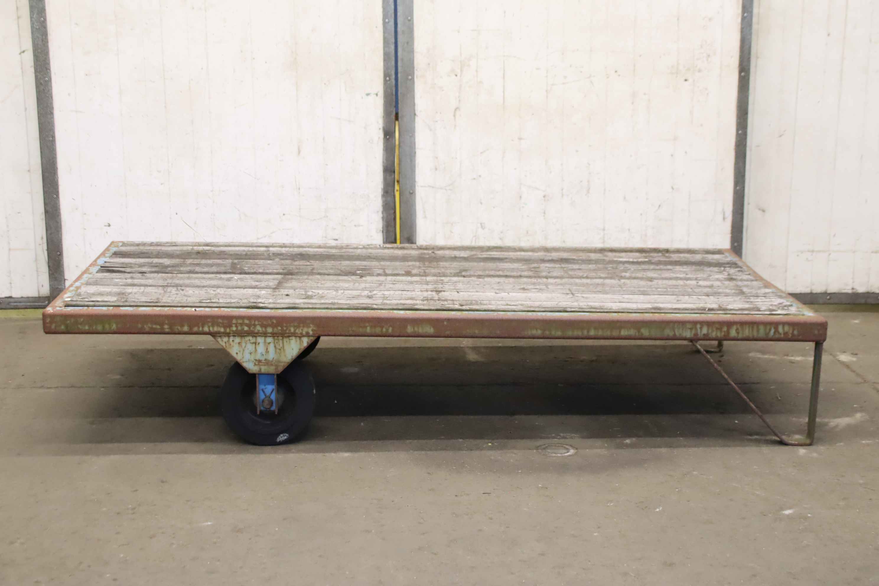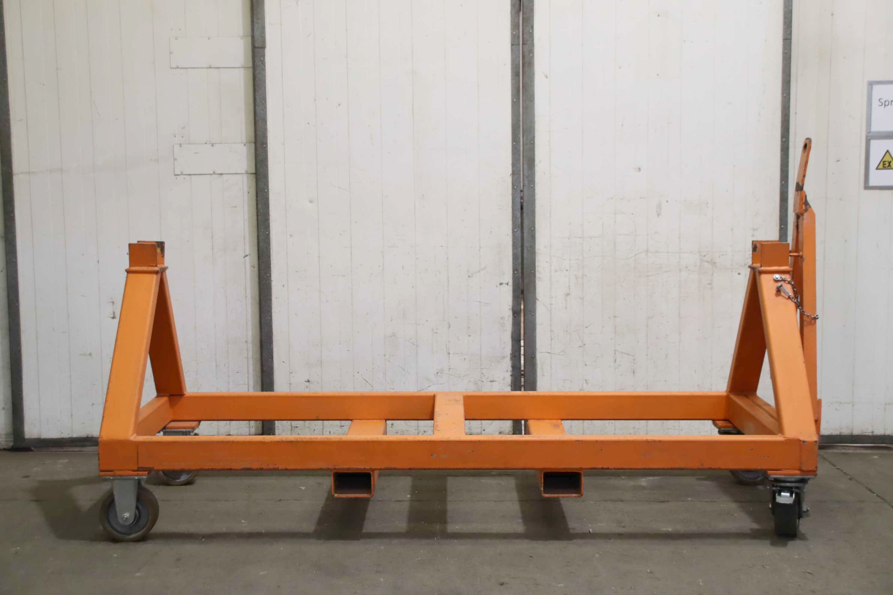 Platform trucks, transport trucks, heavy duty trucks, table trucks, assembly trucks, industrial trailers -Transport trolley: with 2 steerable wheels -Load capacity: 5 Ton -Load absorption: distance 2560 mm -Transport holder: for forklifts -Dimensions: see photo technical. drawing -Quantity: 5 transport trolleys available -Price per piece -Total dimensions: 3770/940/H1060 mm -Weight: 276 kg/pc.