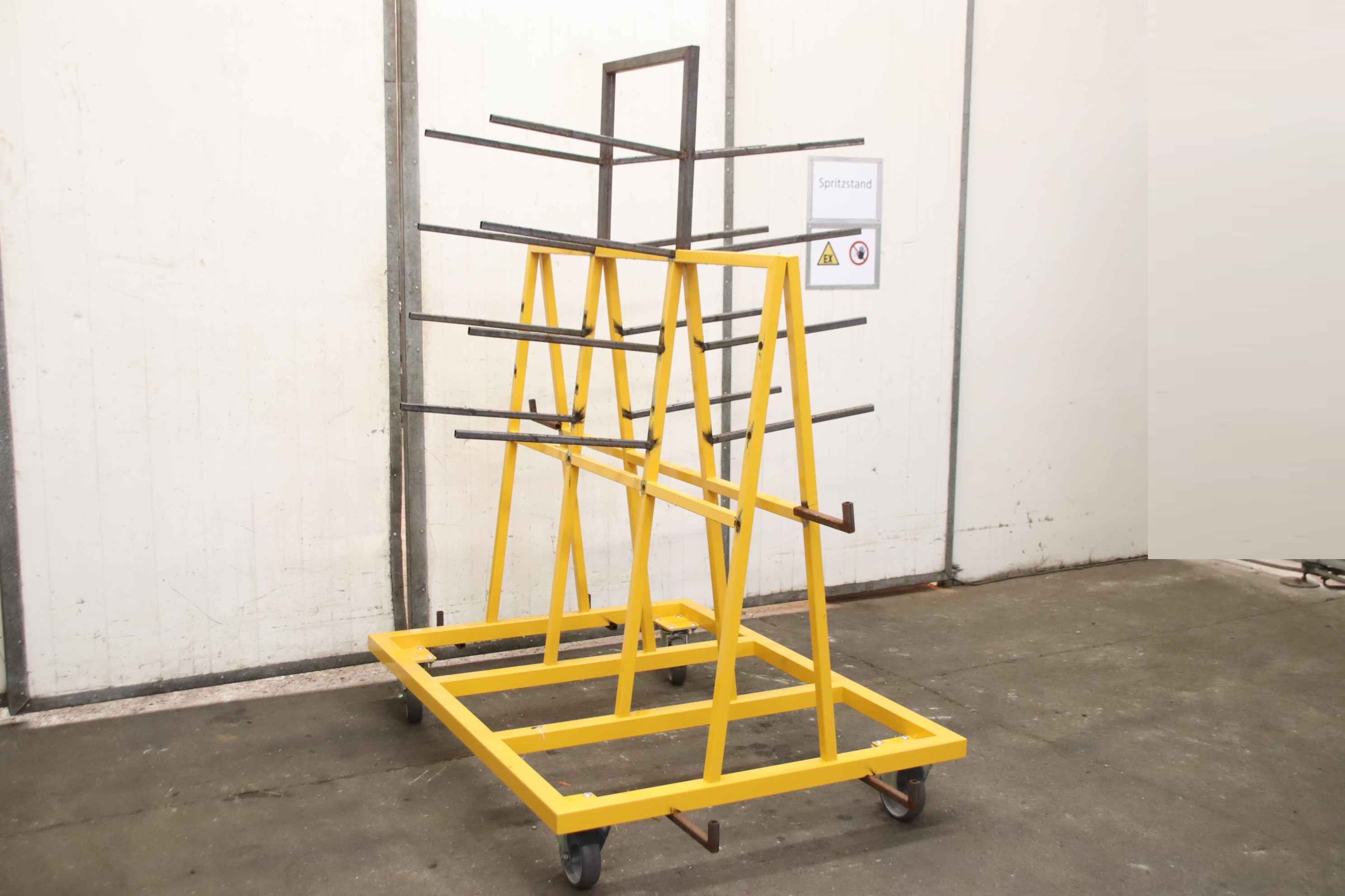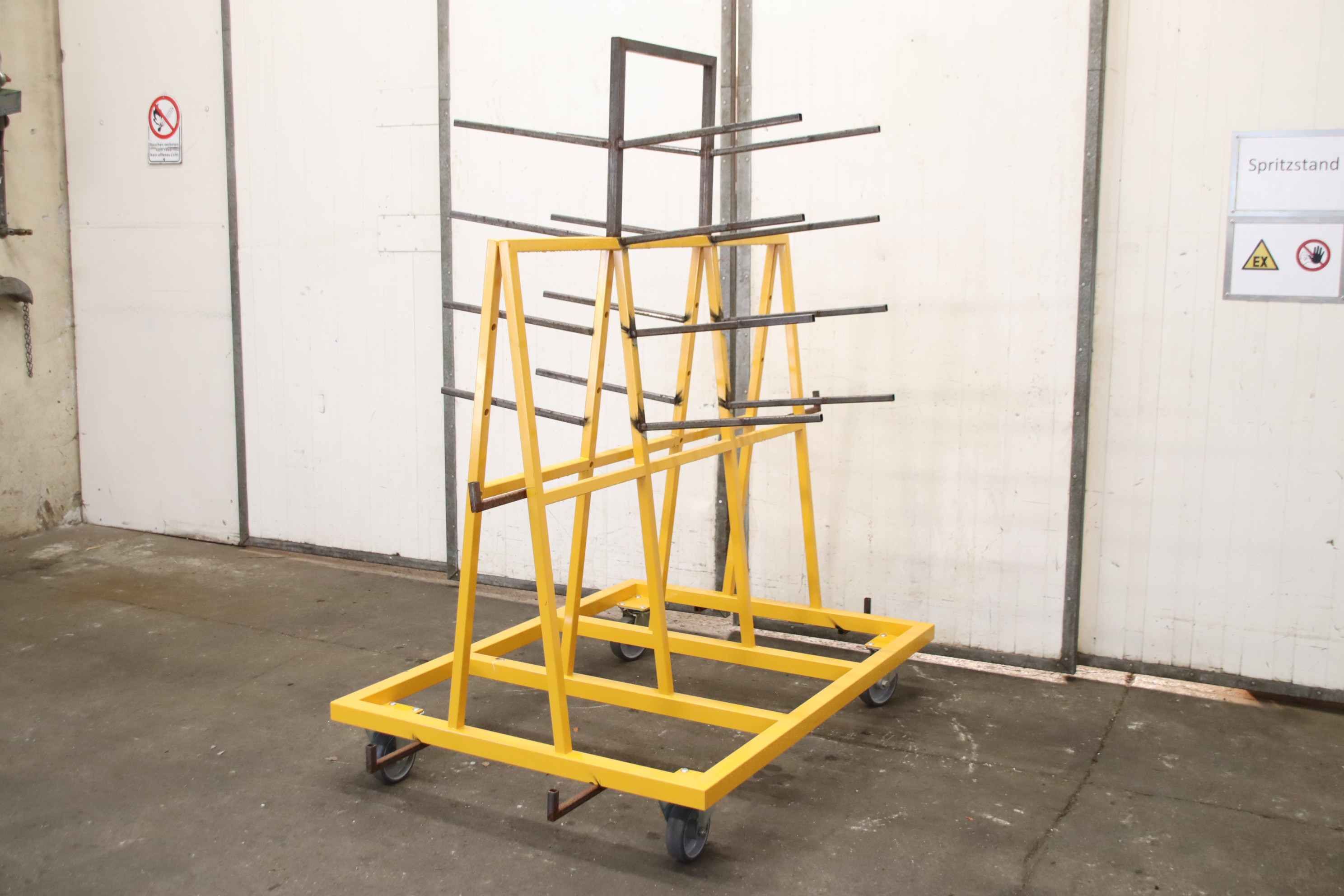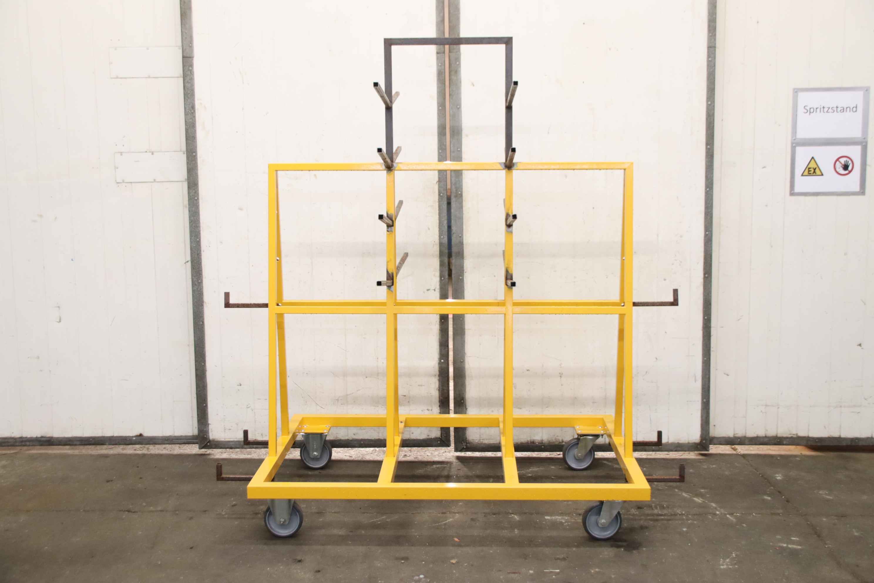 Tier trolleys, transport trolleys, shelf trolleys, sorting trolleys, order picking trolleys, mobile racks, support arm trolleys-Transport trolley: commission trolley, double-sided support arm trolley-Total length: 1500 mm-Width: 1175mm-Height: 1920mm-additional holders: see photos-Weight: 70 kg