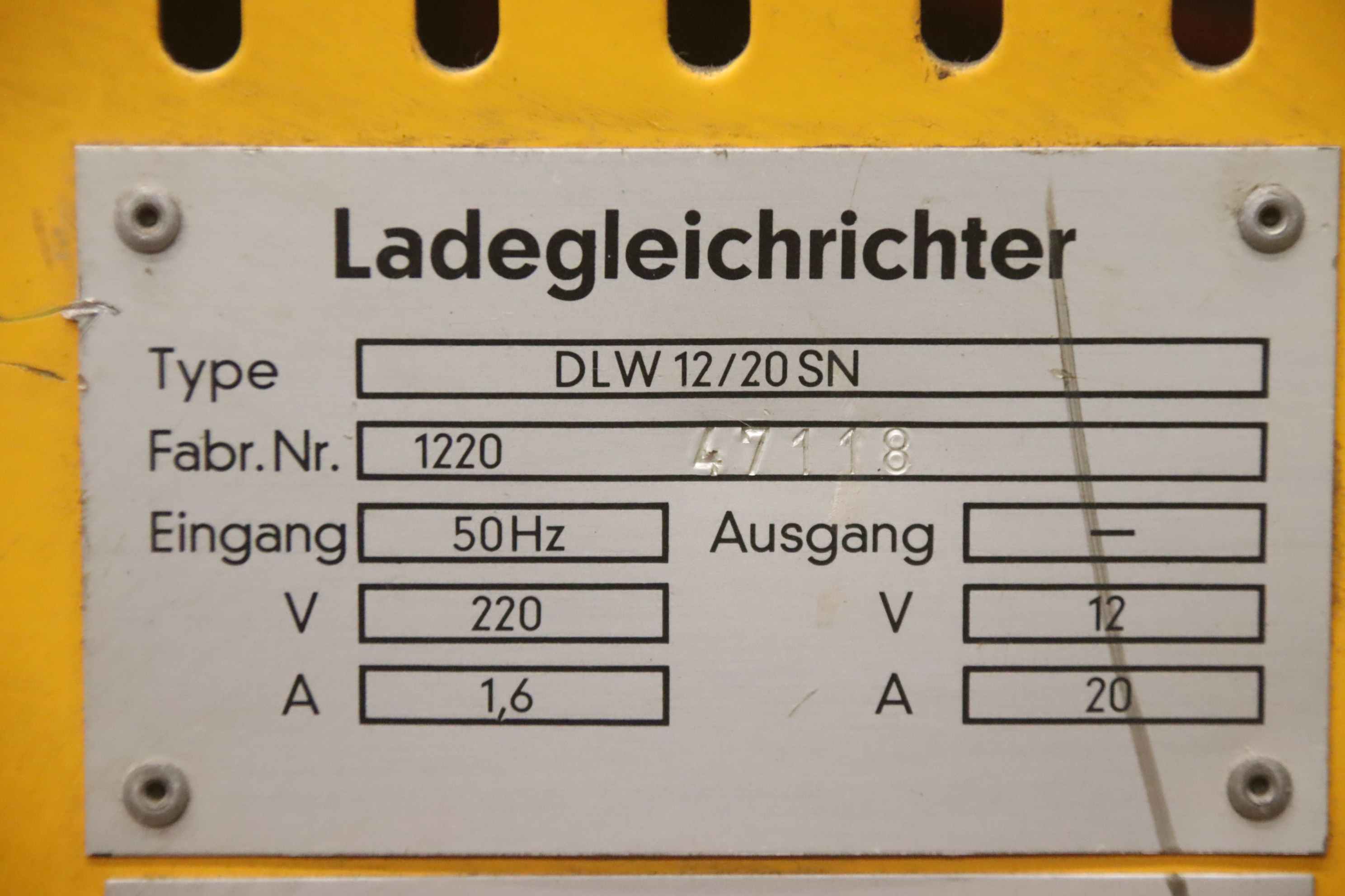 Forklift battery charger, industrial charger, Forklift battery charger, industrial charger, Si rectifier-Manufacturer: Jungheinrich, charger type DLW 12/20 SN-Input voltage: 220 V 50 Hz-Power: 12 V/20 A-Dimensions: 410/200/H340 mm-Weight: 12 kg