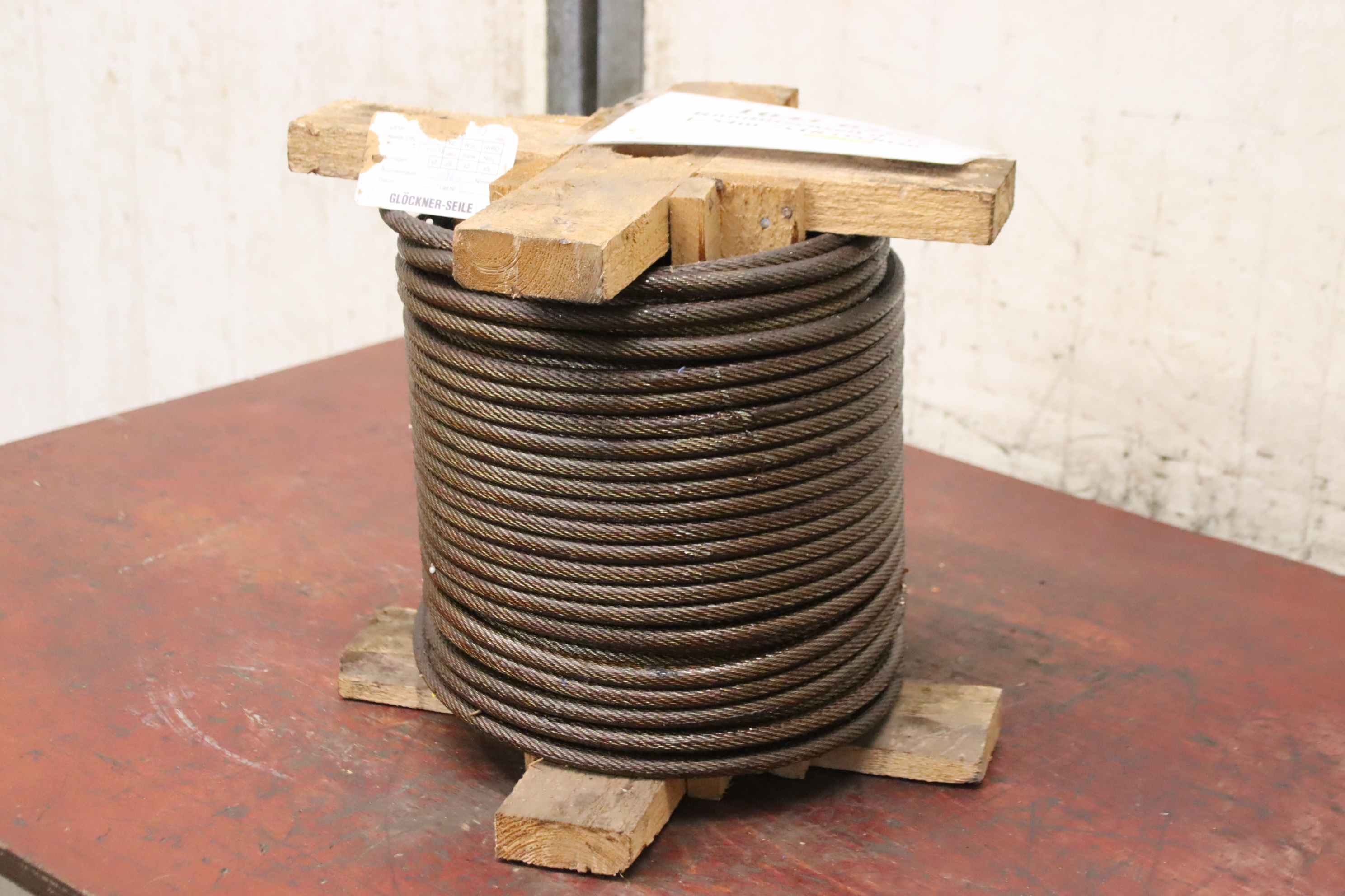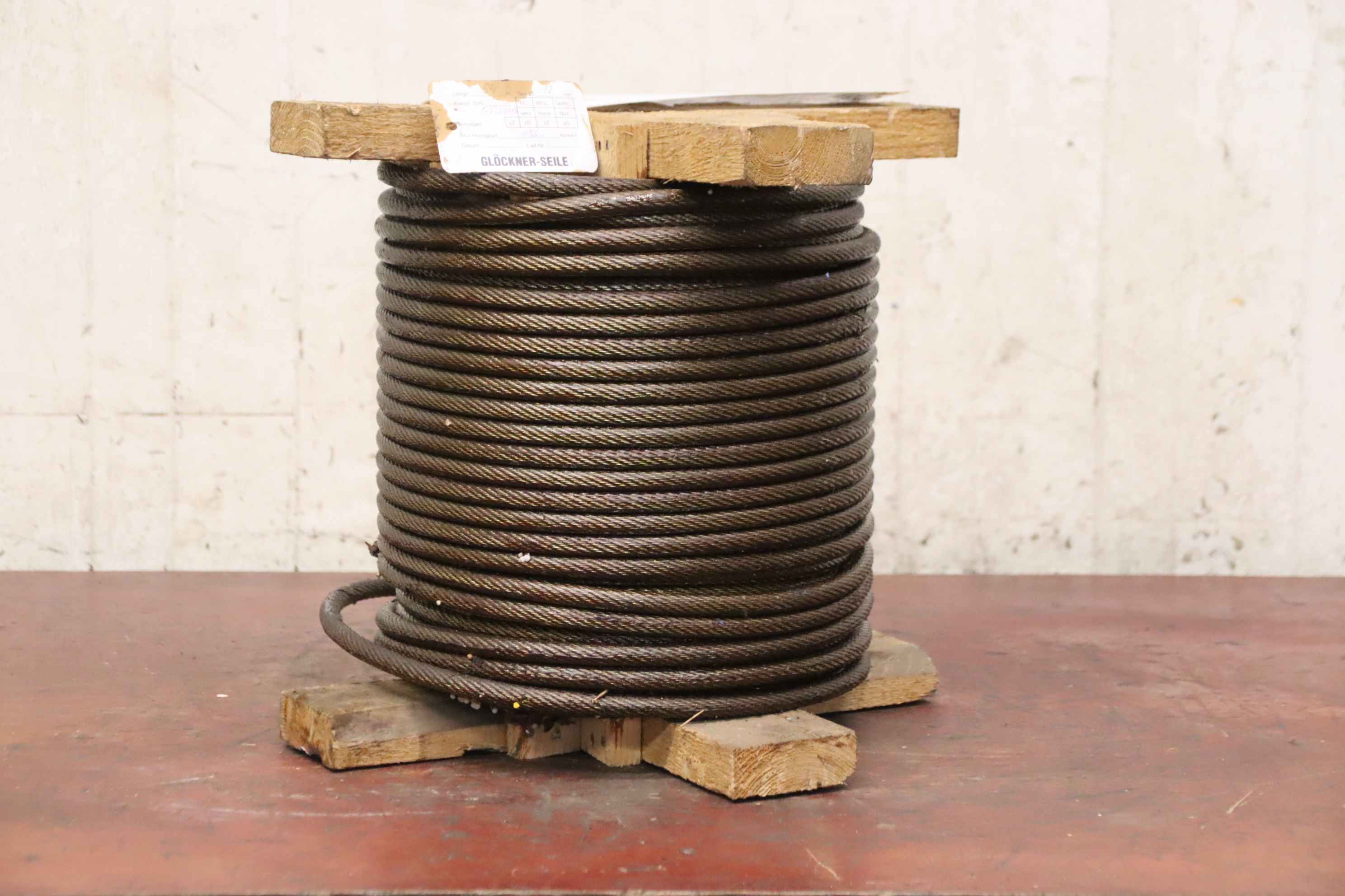 Winch rope, crane rope, lifting rope, wire rope, stainless steel rope, forestry winch rope, round strand rope -Manufacturer: Glöckner-Seile, crane rope, round strand rope Ø 12 mm -Rope type: 7x18 -Length: 54 m -Number: 6x wire rope available -Price: per piece -other crane ropes also available -Dimensions: Ø 400 x 367 mm -Weight: 34 kg/pc.