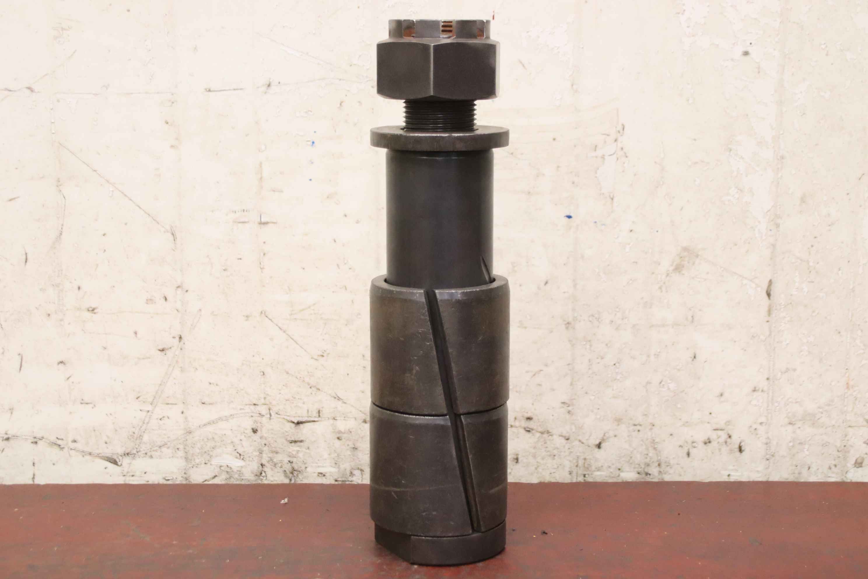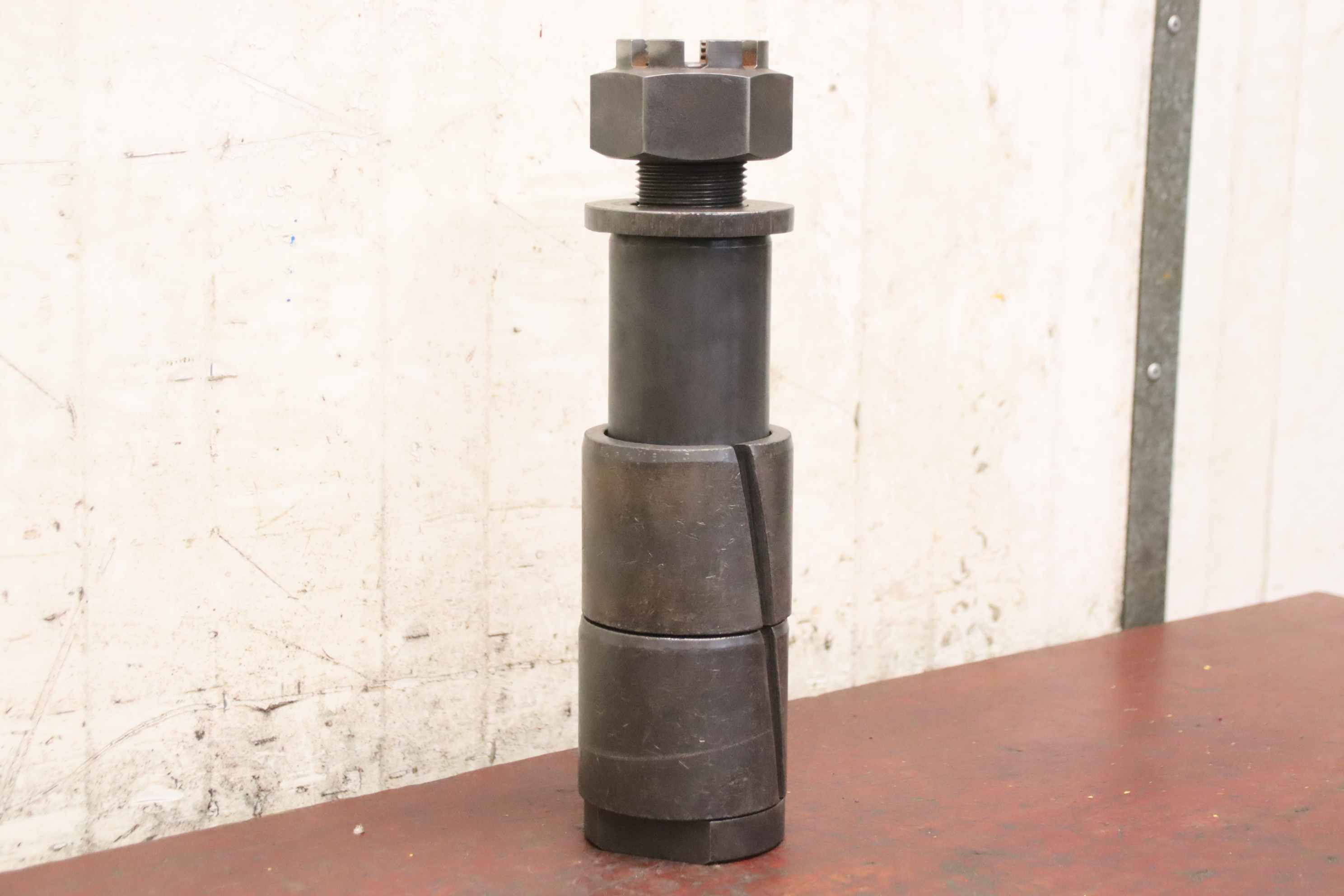 Lubricating bolt for rope pulley, steel rope pulley, rope deflection pulley, crane rope, four-rope multi-shell grapple, polyp grapple, mechanical multi-shell grapple, shell grapple, ship unloading grapple, scrap grapple, garbage grapple, rope grapple, digging grapple, bolt crane bolt Lubrication bolt: Crane bolt type M48 -Shaft: Ø 69.5 mm -Number: 3x crane bolts available -Price: per piece -Dimensions: Ø 92 x 345 mm -Weight: 13.2 kg/piece