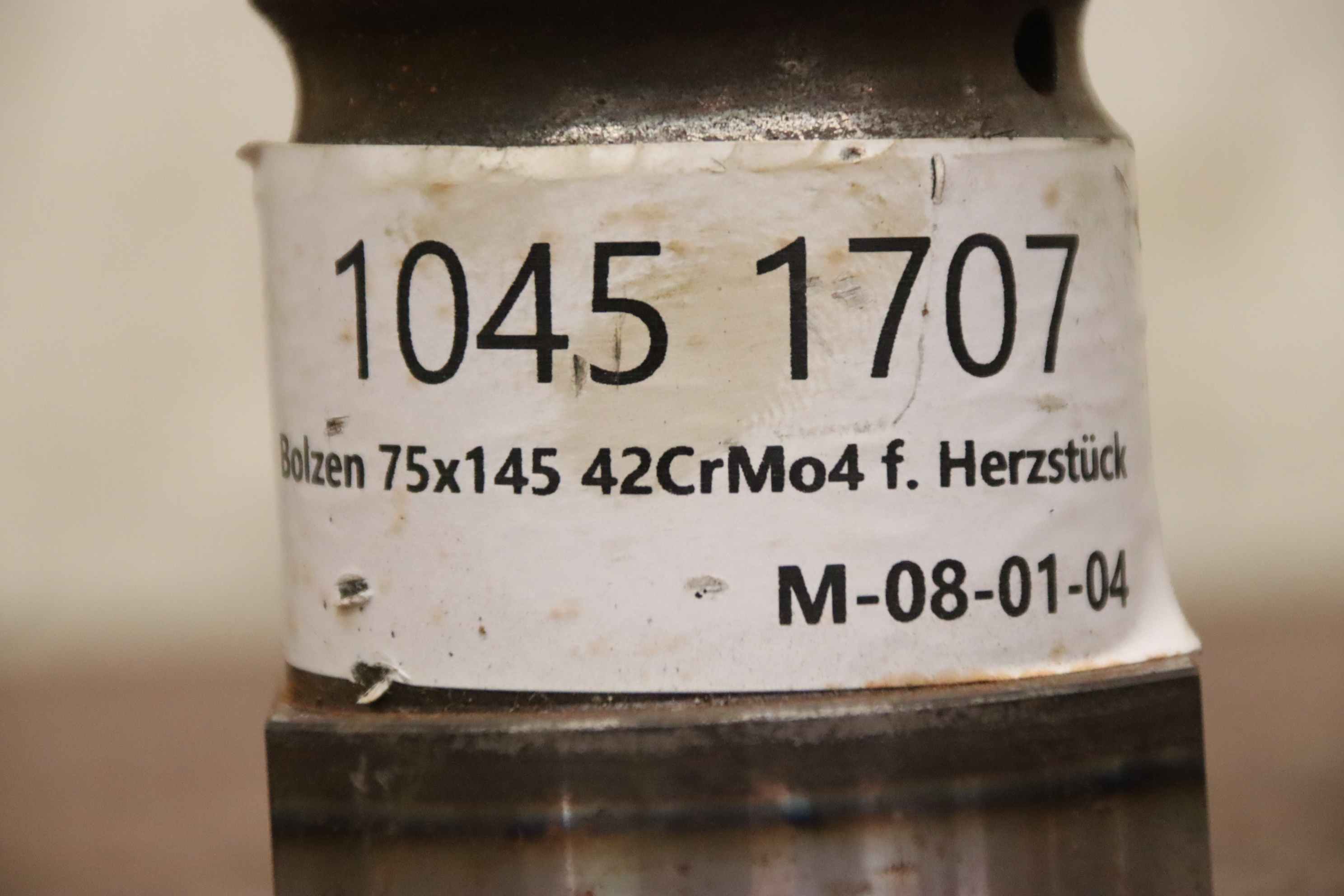 Lubricating bolt for rope pulley, steel rope pulley, rope deflection pulley, crane rope, four-rope orange peel grapple, polyp grapple, mechanical orange peel grapple, shell grapple, ship unloading grapple, scrap grapple, garbage grapple, rope grapple, digging grapple, bolt crane bolt, lubricating bolt -Grease bolt: crane bolt type 75x145 M48 -Shaft: Ø 59.6 mm -Art.No.: 1045 1707 -Number: 10x bolts available -Price: per piece -Dimensions: Ø 80 x 150 mm -Weight: 3.4 kg/piece