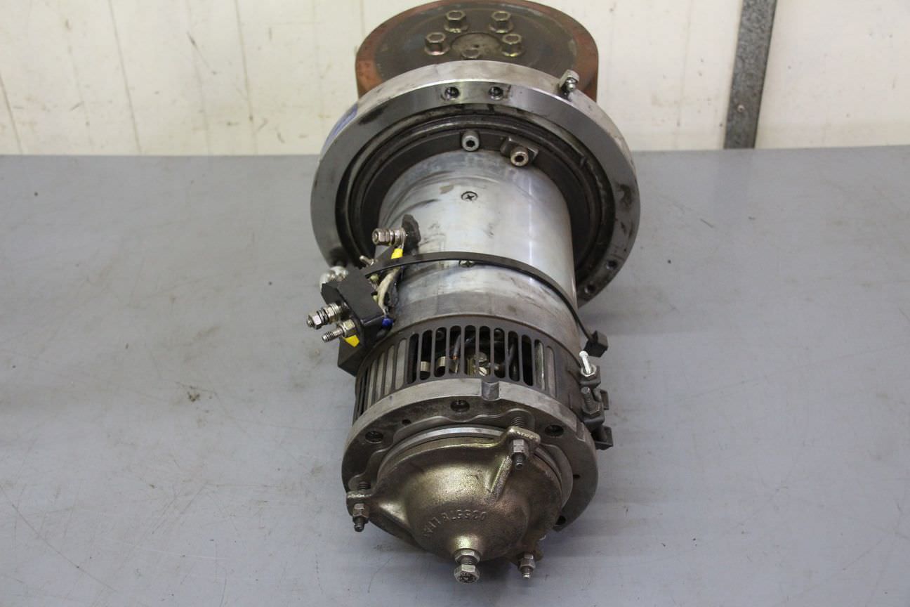 Chassis, electric motor, DC motor, traction motor, drive motor, steering motor-Manufacturer: Jungheinrich, steering motor from pedestrian stacker type ERC 205-Type: GNM 5460-G18.5-MIR1 Ser. H-Motor: 24V/240W-Dimensions: 135/130/H365 mm-Weight: 7.5 kg