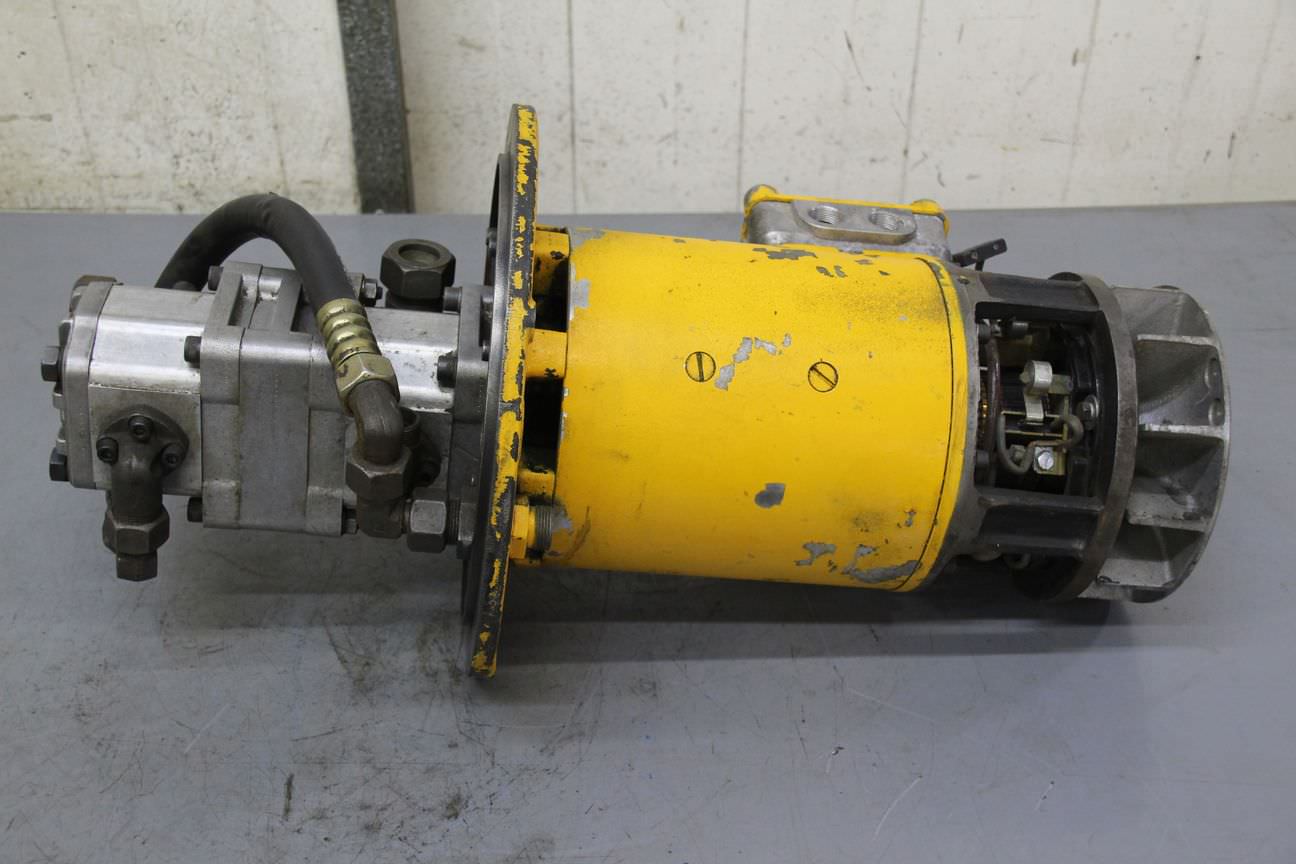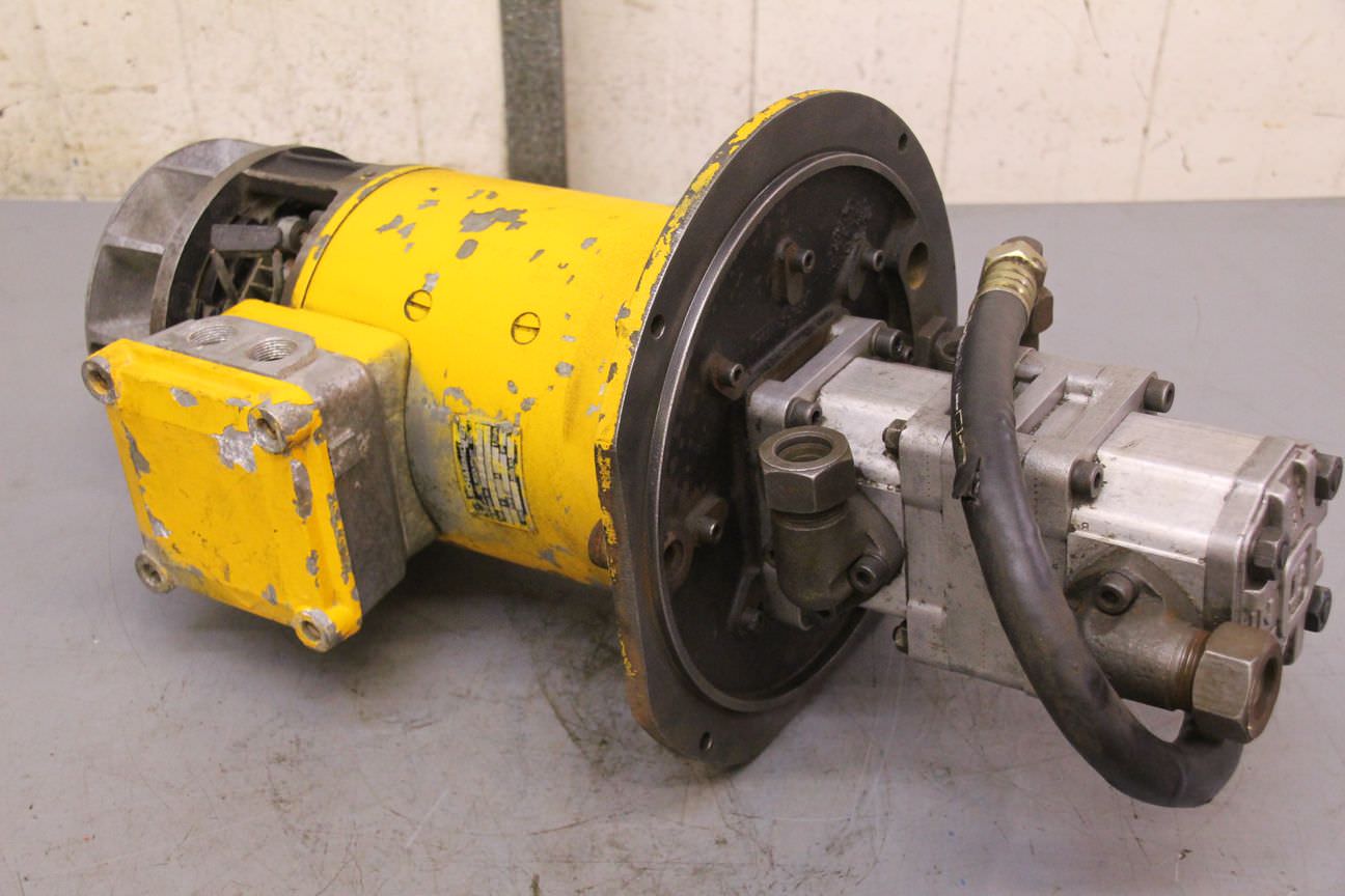 Hydraulic pump, oil pump, hydraulic power unit, hydraulic pump, electric motor, DC motor, traction motor, drive motor -Electric motor: 80 V with 2 hydraulic pumps -Power: 2.2 kW -Speed: 1480 rpm -Dimensions: 340/290/H590 mm -Weight: 45 kg
