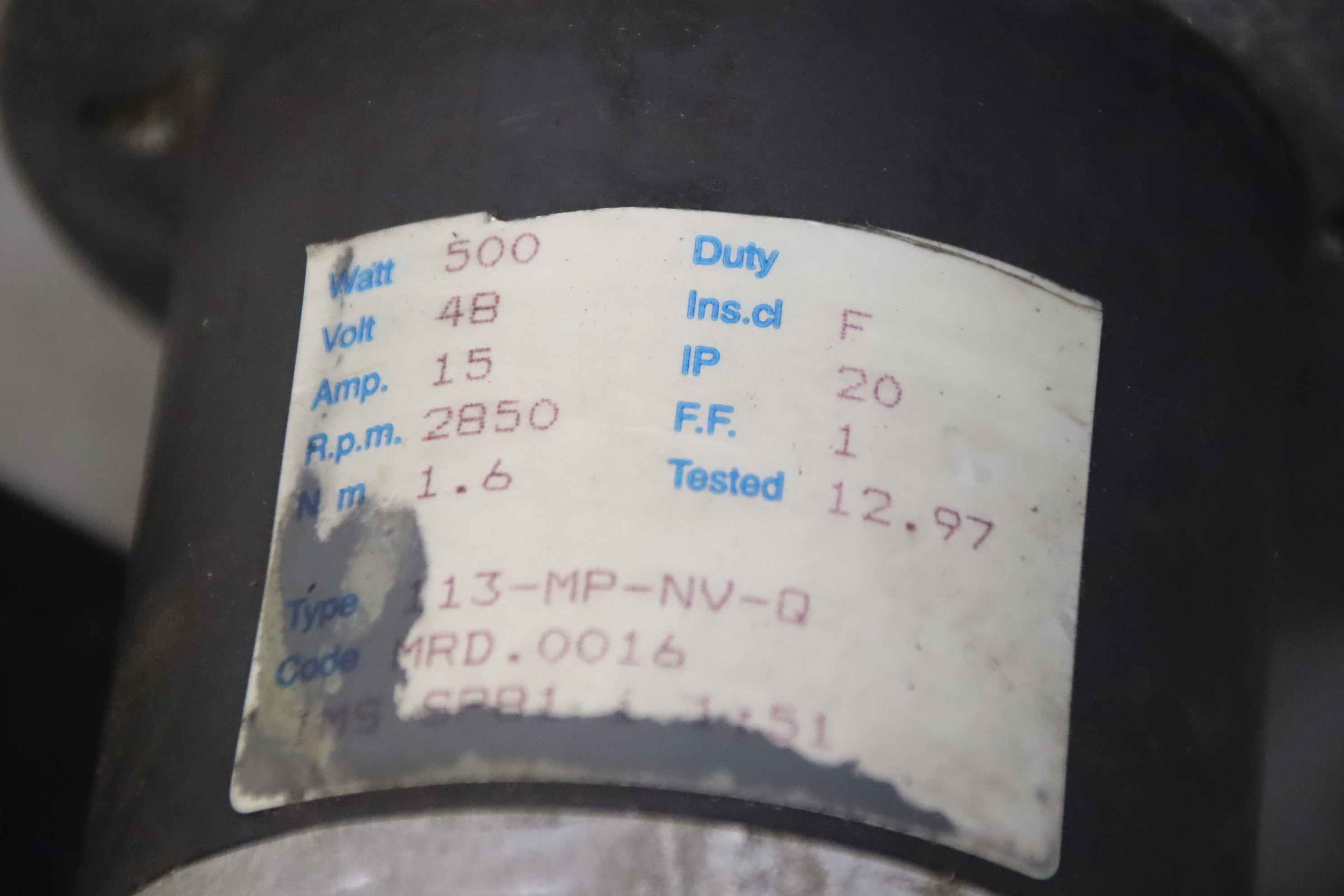 Chassis, electric motor, DC motor, traction motor, drive motor, steering motor-Manufacturer: Sichelschmidt, steering motor from electric forklift truck M 1510 V-Motor: Motovario 113-MP-NV-Q 48V/500W-Dimensions: 400/160/H180 mm-Weight: 17 kg