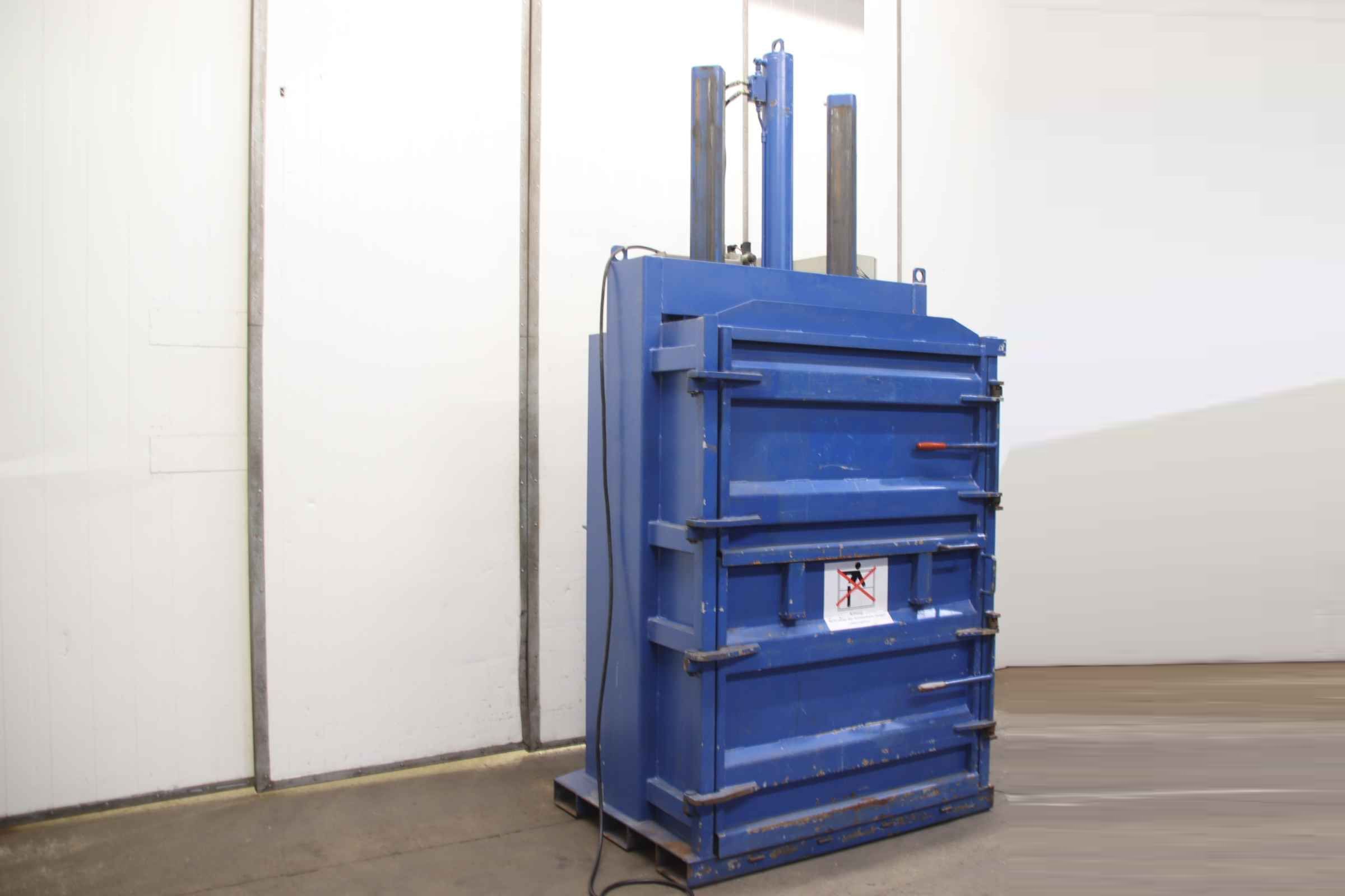 Garbage compactor, garbage press, press container, garbage container, self-compacting compactor, waste press, paper press container, paper container, cabinet press, vertical baler -Manufacturer: Husmann, cabinet press vertical baler -Type: KBP 20 -Drive power: 3 kW -Pressure: 20 t -Filling opening: W x H 1250 x 680 mm -Bale ejection device: bale dimensions 1200x950x850 mm -Transport dimensions: 1450/1160/H2980 mm -Weight: 1300 kg