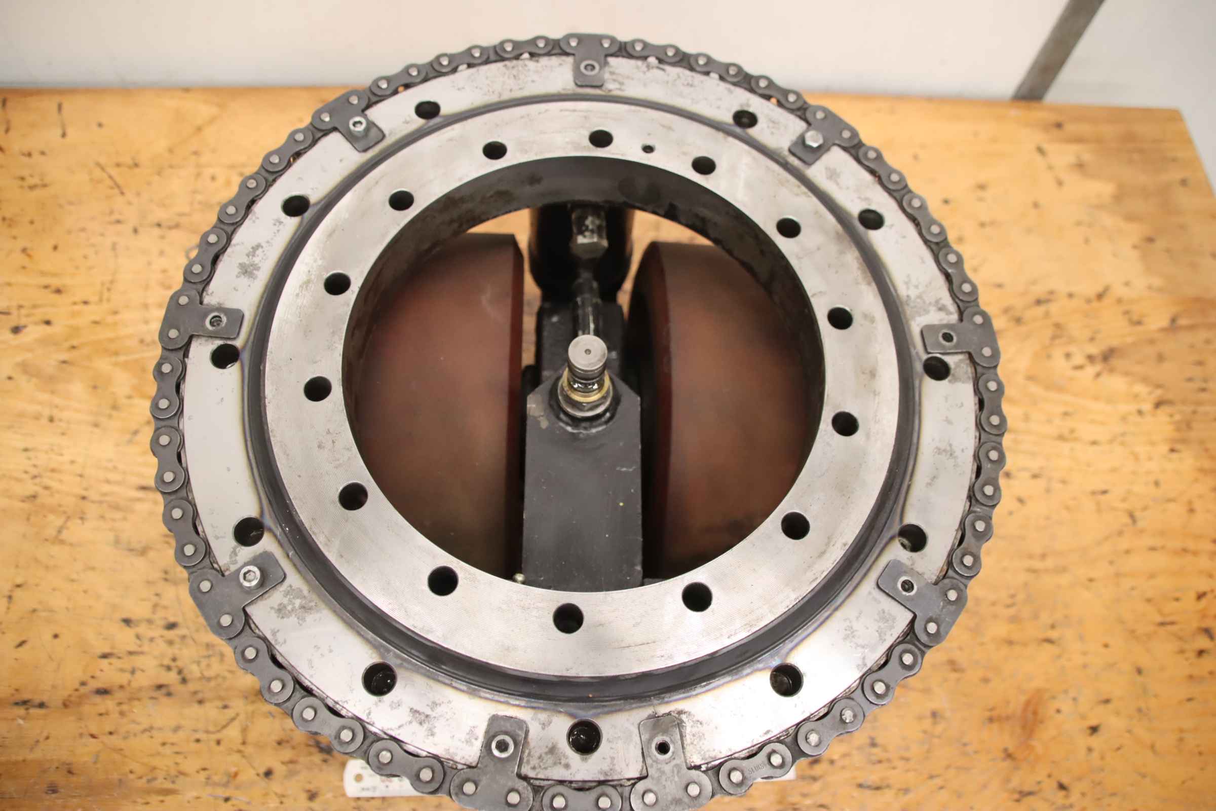 Chassis, electric motor, DC motor, traction motor, drive motor -Manufacturer: Baumann, chassis made from forklift truck -Type: unfortunately without a type designation -Hole: Ø 260 mm, dimensions see photos -Wheels: Ø 282 x 100 mm dual tires -Dimensions: 430/400/H360 mm -Weight: 99 kg