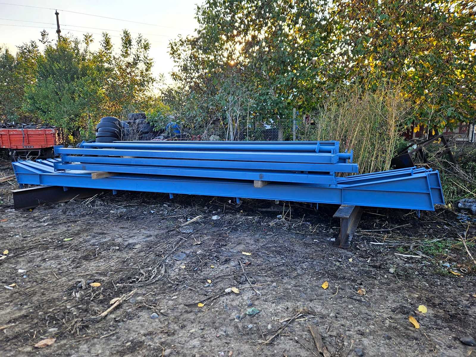 LOT 2 Type: Industrial metal hall Year of construction: 2026 Material: Steel construction Total area: 420 sq m Overall dimension (1): L 14000 mm Overall dimension (2): L 30000 mm Height: 5000 mm Ridge height: 7000 mm Additional information: Roof slope: 20 degrees; Painted RAI 5023; The structure consists of 2 beams (trusses) at the ends made of IPE 160 profile; 5 intermediate beams (trusses) from IPE 220 profile; 4 end columns from IPE 160 profile; 10 intermediate columns from IPE 220 profile; 4 door columns from square pipe 100x100x4; 6 pressure uprights from pipe 76x4; wind bracing for beams and columns made of galvanized steel with 16 mm tensioner; The whole structure is assembled with bolts (removable); Condition: unused; The structure includes a certificate of conformity for materials, construction draft, and foundation plan; An 8-ton forklift is available at the warehouse; Auctio ...