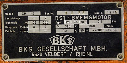 Electric chain hoist, crane, indoor crane, assembly crane-Load capacity: 125 kg-Main stroke: 8 m/min-Hakenweg: 5 m-Control switch-Weight: 25 kg