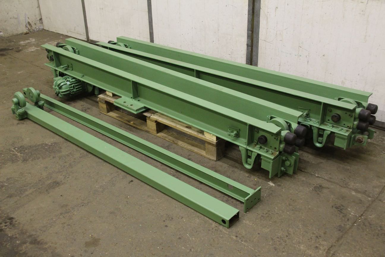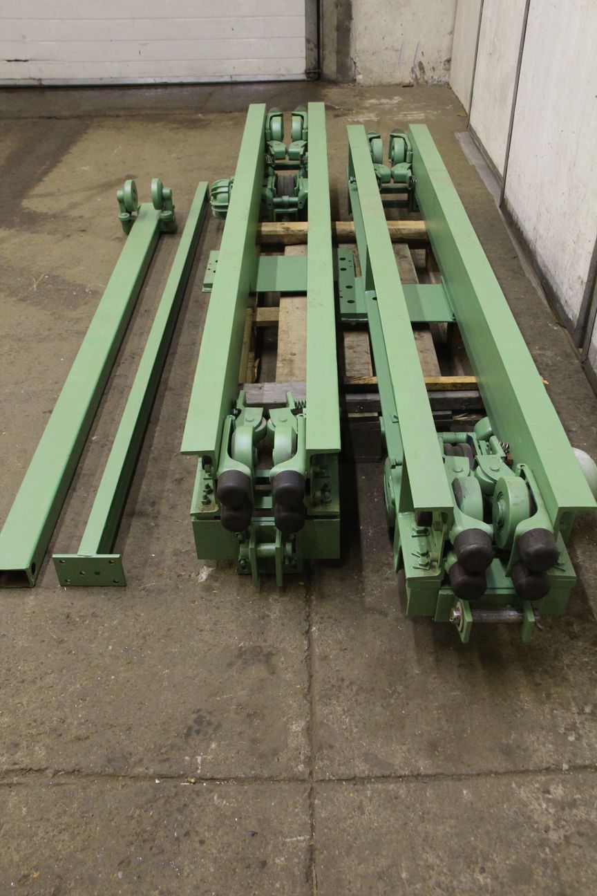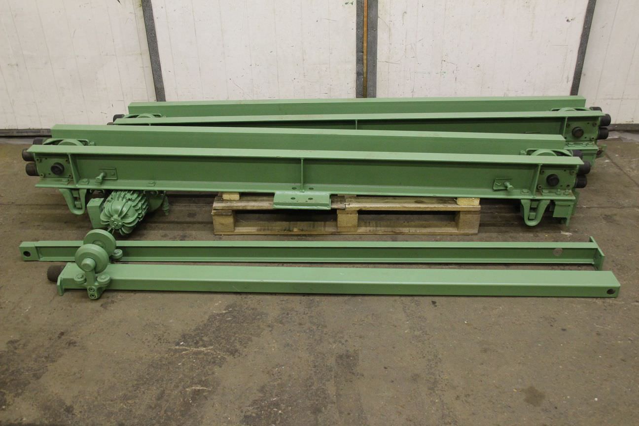 Indoor crane, crane, push carriage, crane running gear, crane undercarriage, girder carriage, headcarriage for bridge cranes, ceiling crane headcarriage, headcarriage single girder bridge crane -Friction wheel Demag type: RF180 -Carrier width: 120 mm -Load capacity: 2000 kg -Number: 2x drives available -Price: complete -Dimensions: 2550/320/H350 mm -Own weight: 500 kg