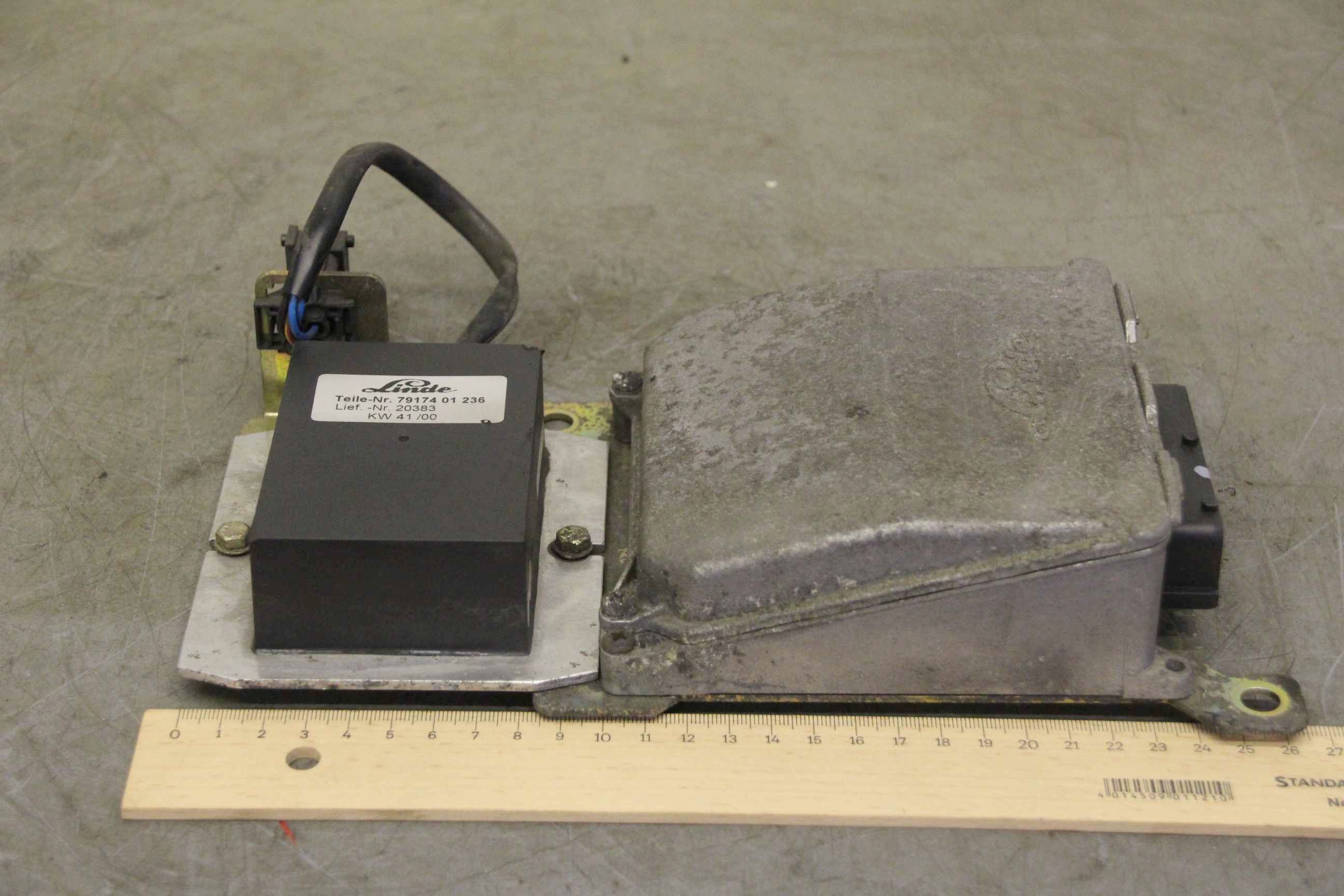 Control device for electric forklift, electric motor, DC motor, traction motor, drive motor, motor control, motor controller, control, drive control, voltage converter-Manufacturer: Linde, forklift control with voltage converter from forklift Linde R14-Type: LDC-32/10-HE01 390 360 53 68 Inverter 79 174 01 236-Dimensions: 265/170 / H55 mm-Weight: 1.5 kg