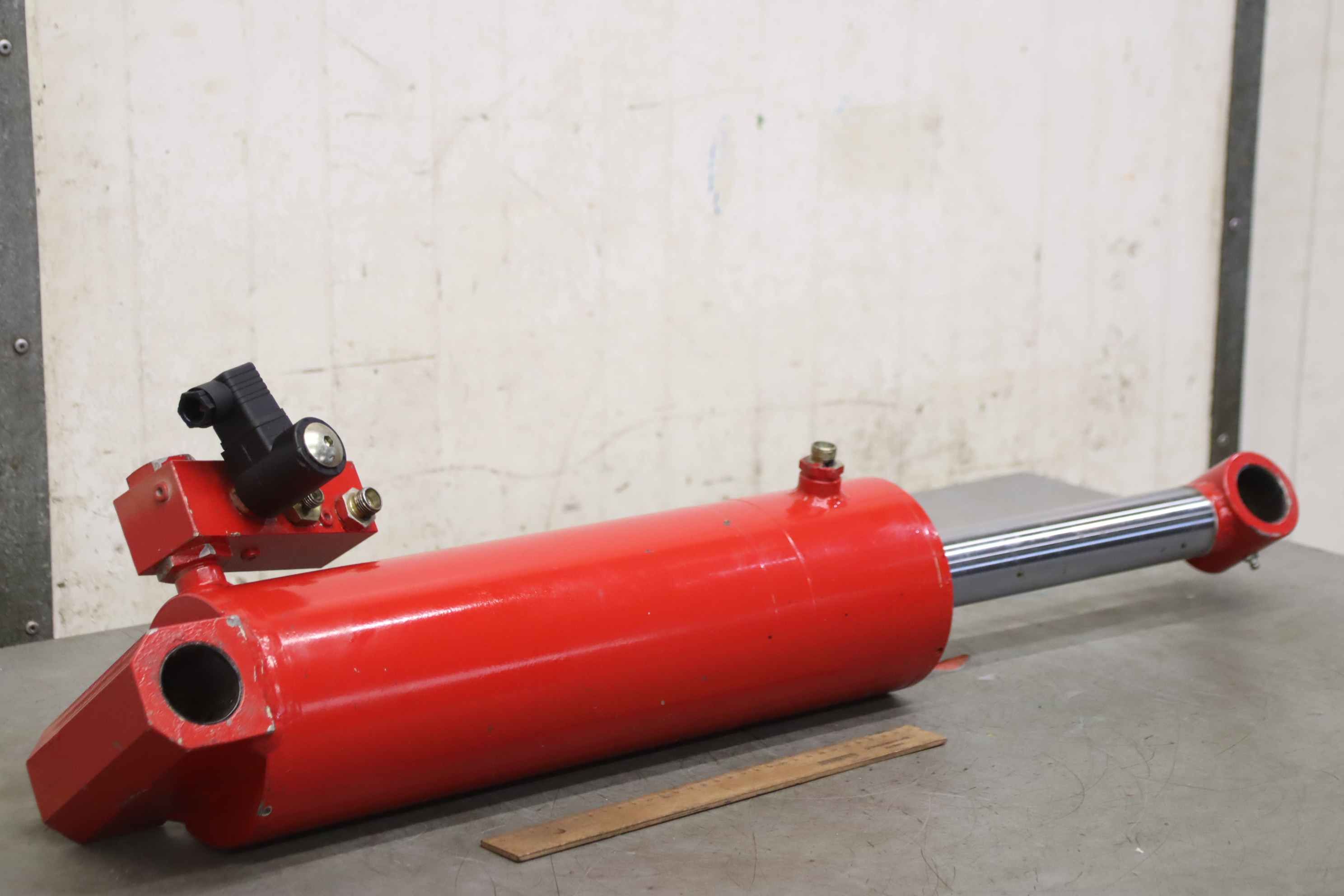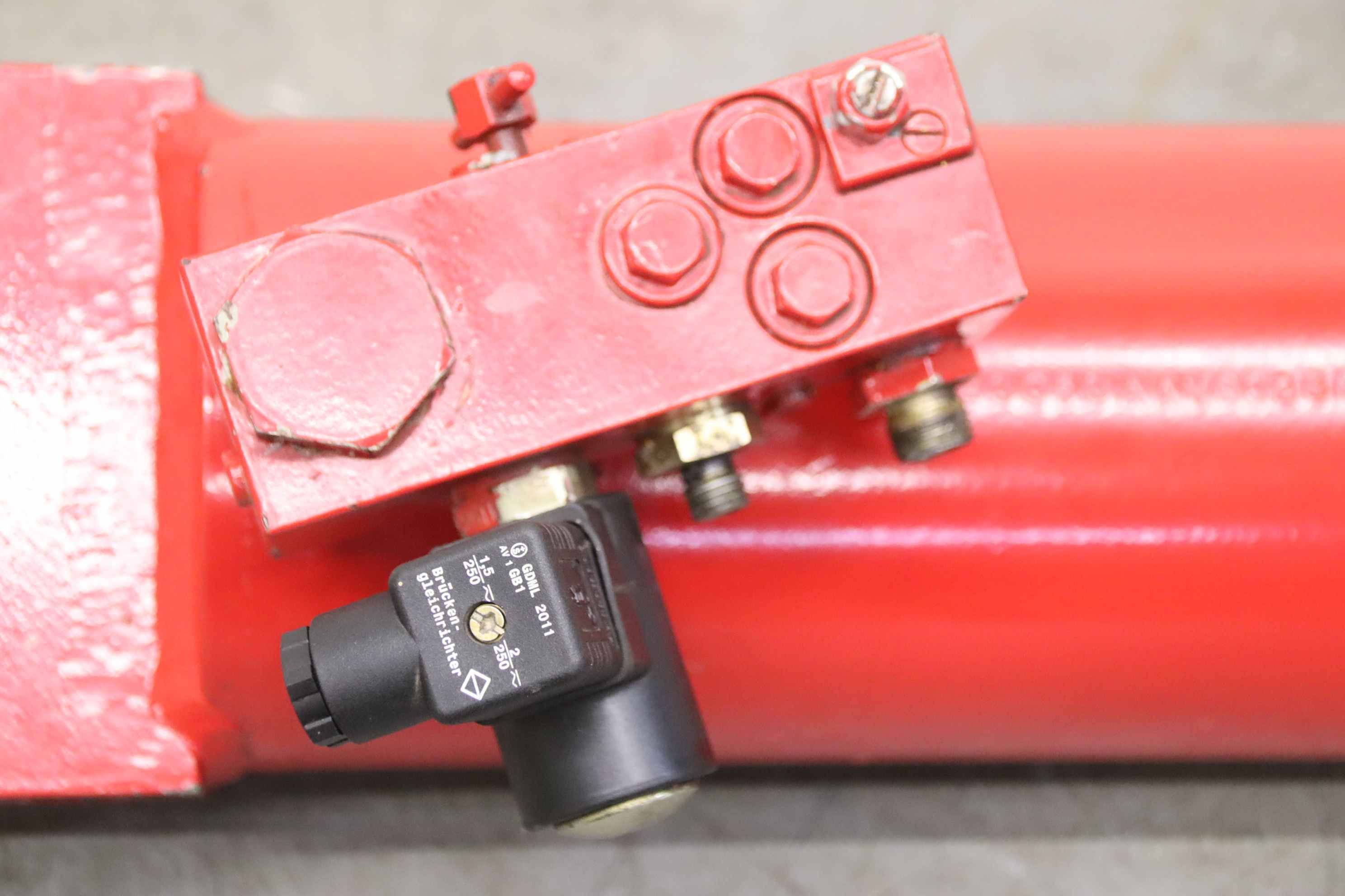 Hydraulic cylinders, support cylinders, hydraulic rams, pressure rams, tipping cylinders-Manufacturer: GSL (German Standard Lift), hydraulic cylinder with control valve stroke 280 mm-Type designation: D120050AAV60330 T28-Piston rod: Ø 50 mm-Recording. Ø 40mm-Dimensions: 615/145/H230 mm-Weight: 40 kg