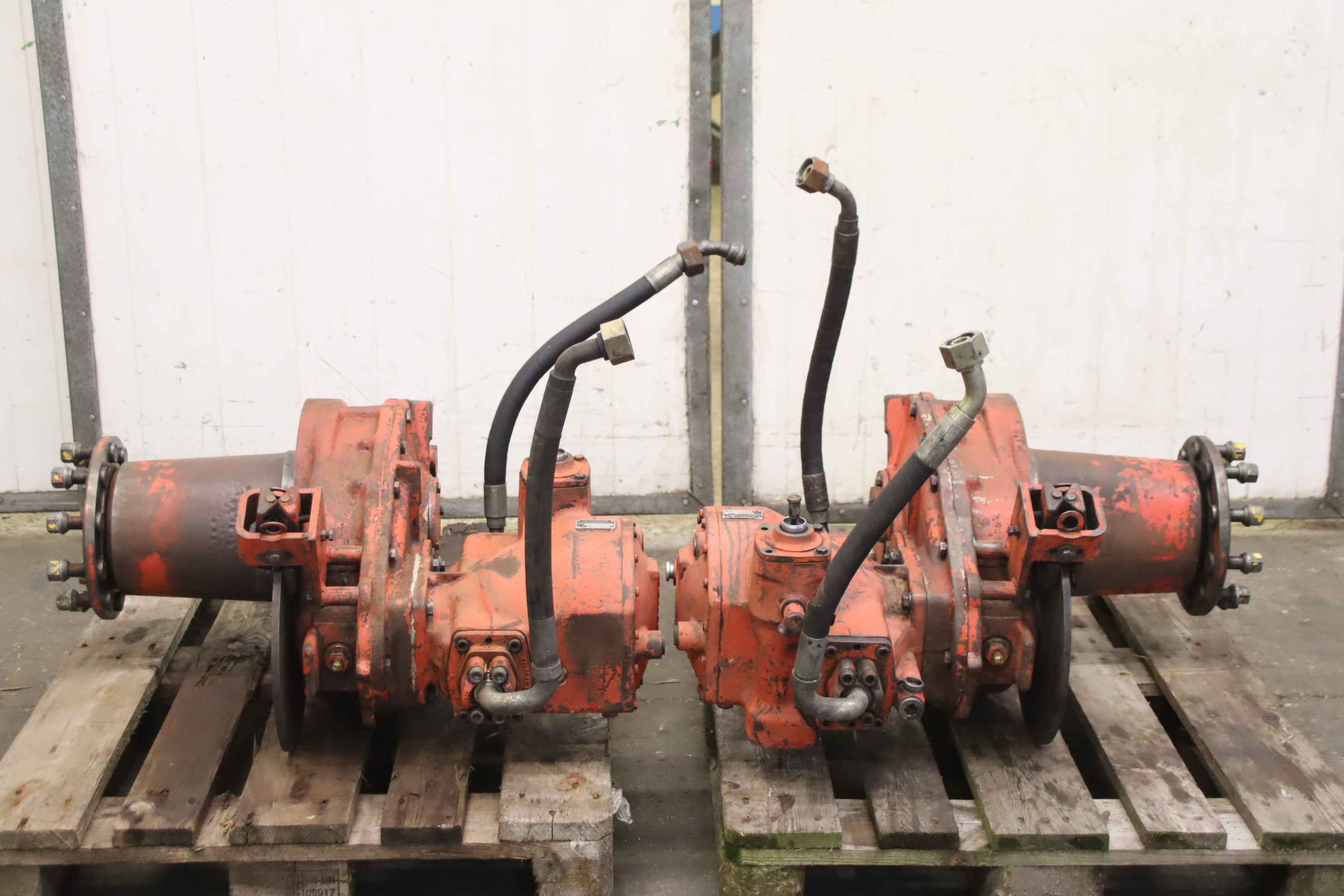Drive axle, AT unit, hydraulic motor-Manufacturer: Linde, drive axle LR for forklift H60D-Hydraulic unit: Linde MV75-Axis: bolt circle Ø 225 mm-Individual components: see photos-Price/tax: complete-Dimensions: 850/860/H400 mm each-Weight: 290 kg/pc.
