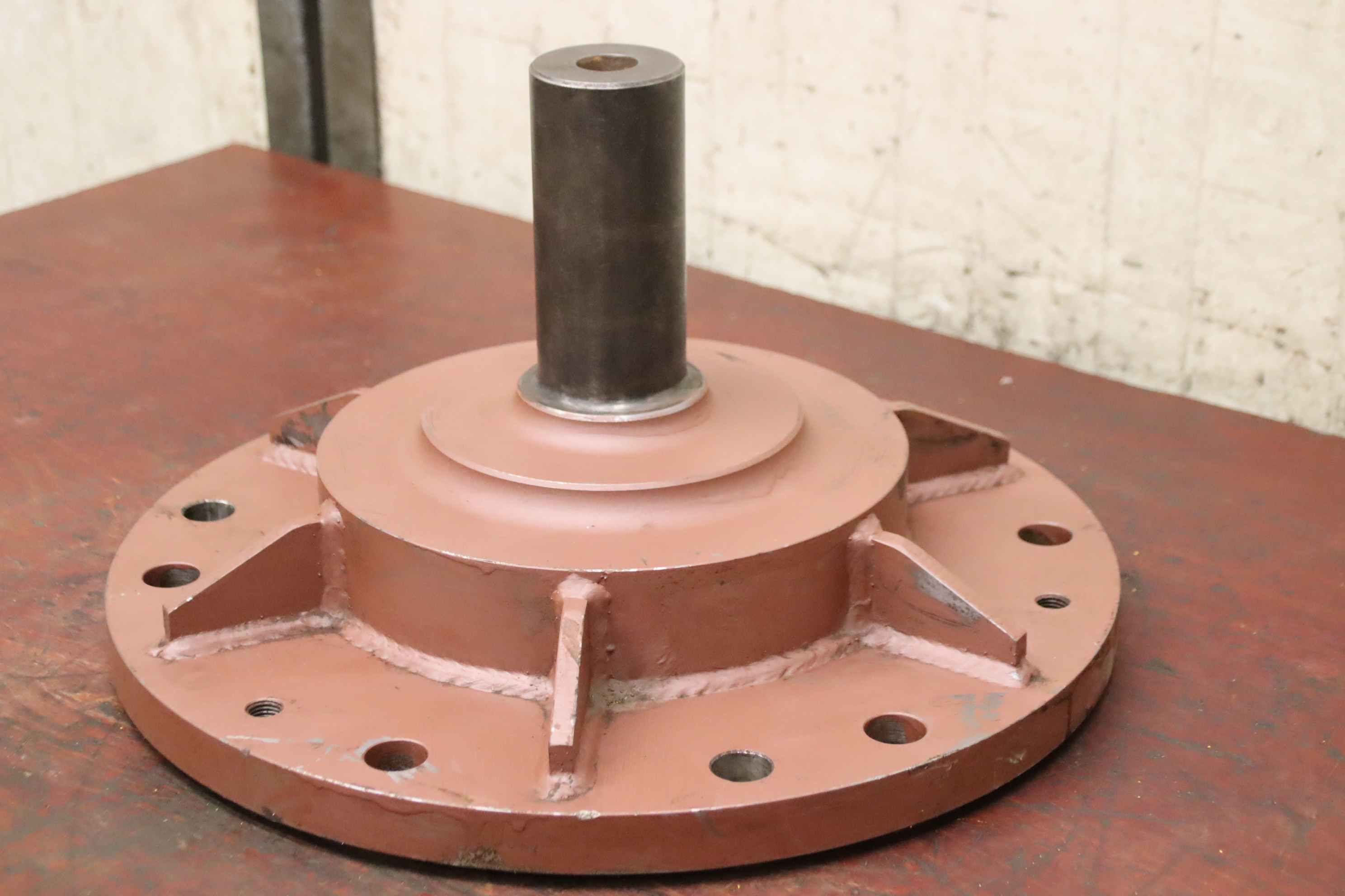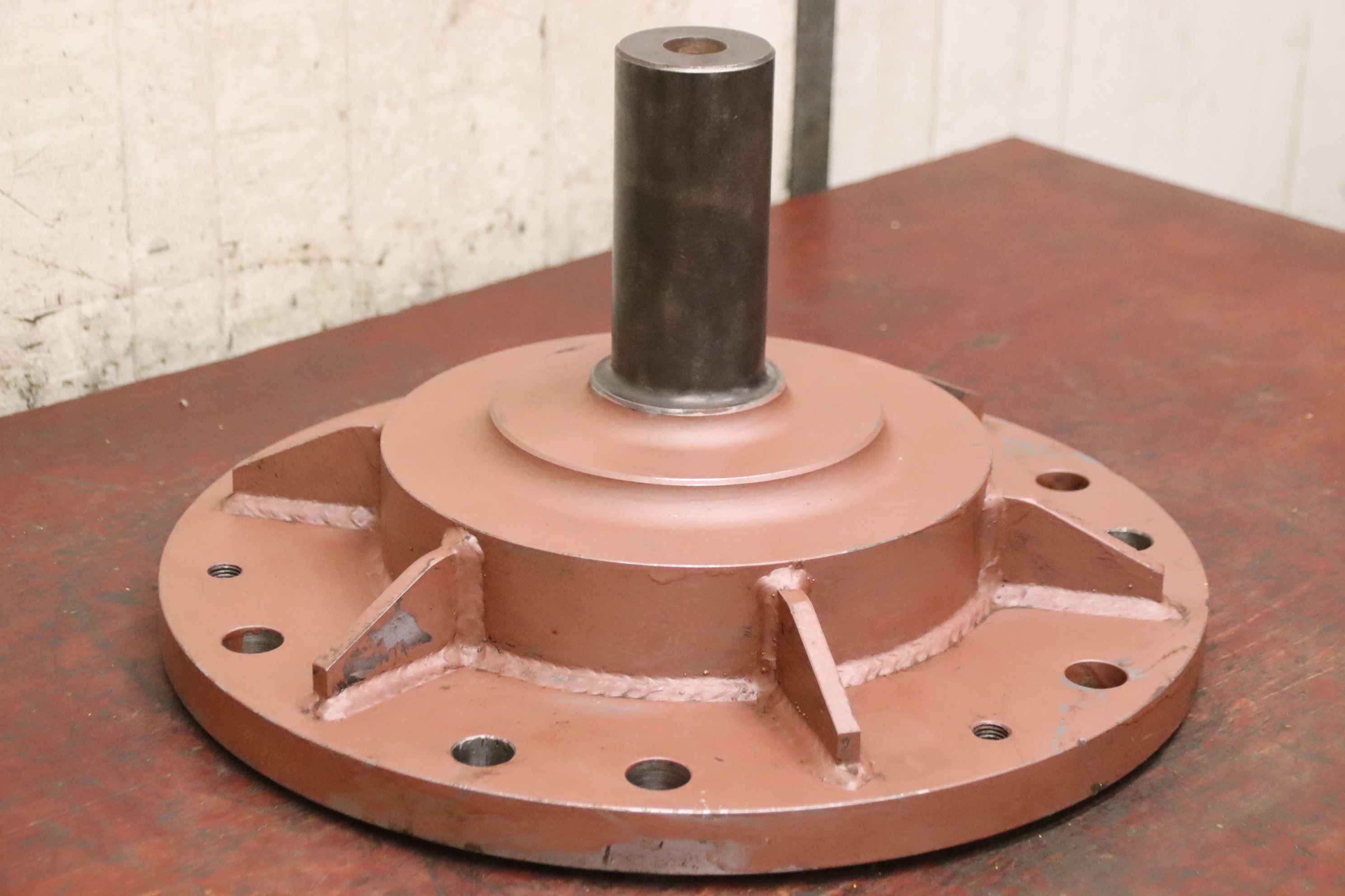 Plug-in shaft for friction wheel, impeller, bridge crane, hall crane, assembly crane, flange hub, gear plug-in shaft, coupling, power coupling, gear coupling, gear coupling -Manufacturer: Konecranes, stub shaft Gearbox stub shaft: for crane chassis -Type: unfortunately without type designation, suitable for gearbox ID 34705 / ID 34752 -Shaft: Ø 70 x 150 mm -Bolt circle: Ø 422 x 25 mm -Dimensions: see photos -Quantity: 2 pieces available -Price: per piece -Dimensions: Ø 480 x 280 mm -Weight: 83 kg/piece
