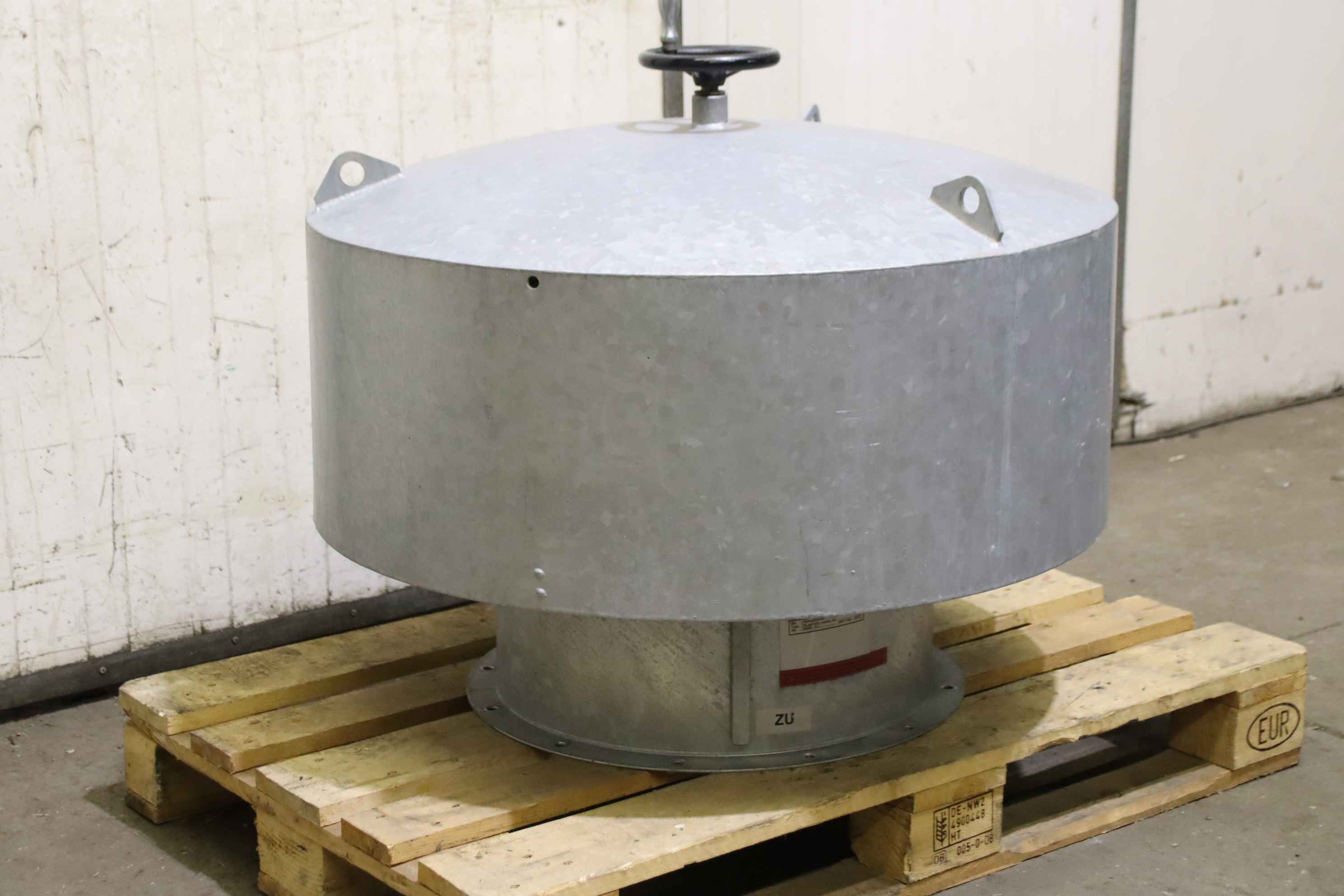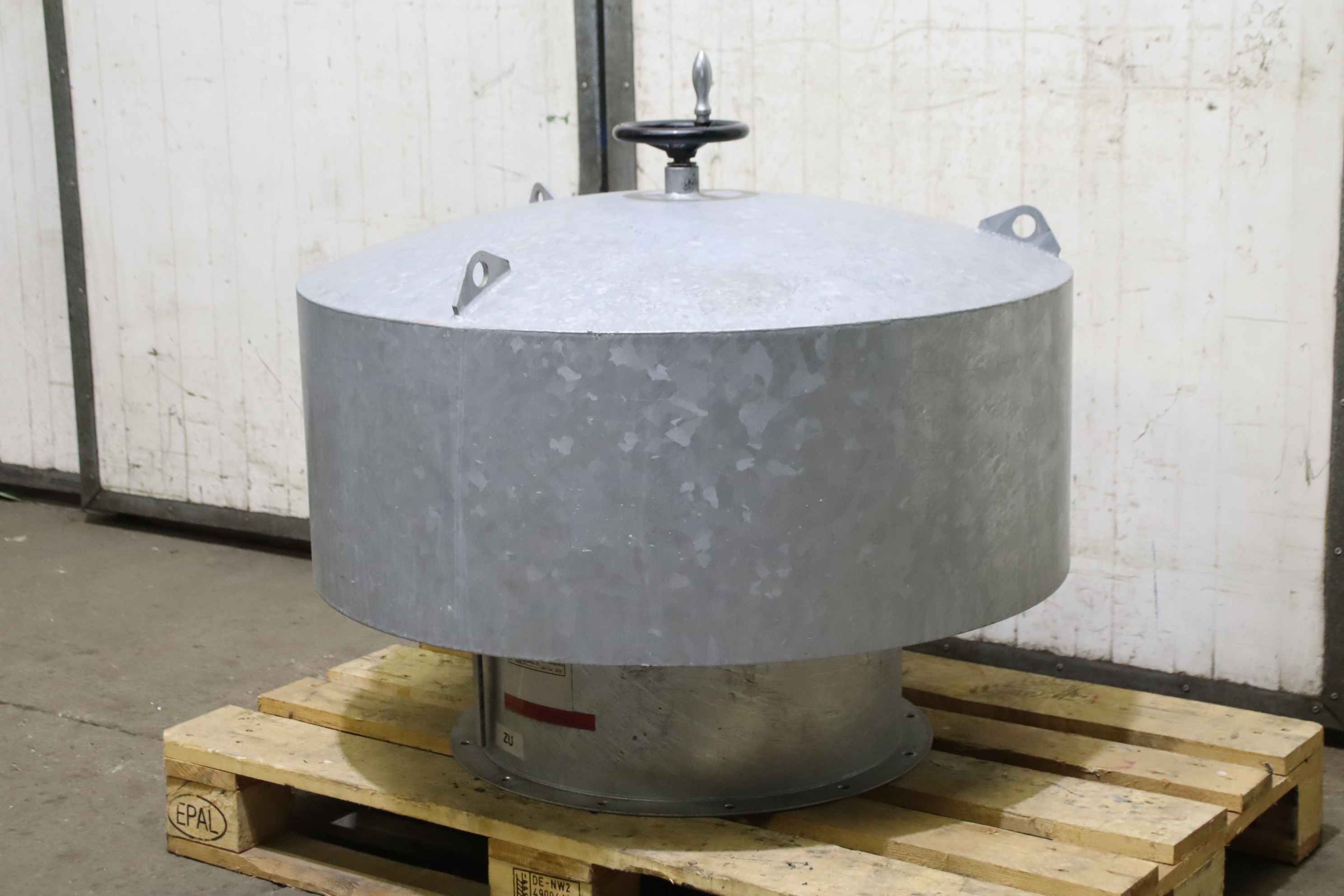 Fan head, chamber fan, Dorade fan, mushroom fan, ship fan, deck fan, ventilation, mushroom head hood for ventilation, ventilation duct, ventilation flap, ventilation system, extraction system, ventilation ducts and fittings, louvered damper, backflow preventer, lamellar fan, mushroom head hood -Manufacturer: Witt & Sohn, Mushroom head hood type PK wd 500 x-schw. VZ -Hood opening: mechanically lockable, handwheel -Bolt circle Ø 550 x 12 mm -Quantity: 2x hoods available -Price: per piece -Overall dimensions: Ø 905 x 820 mm -Weight: 89 kg/unit