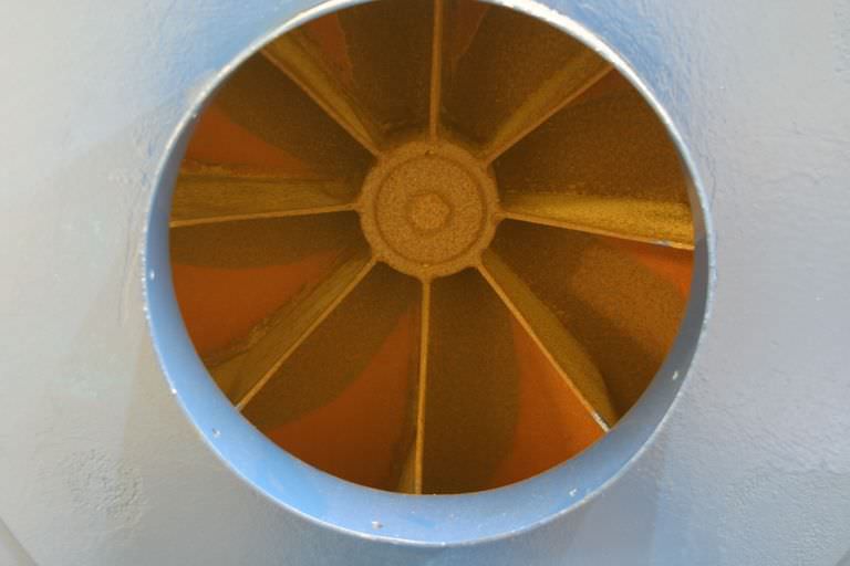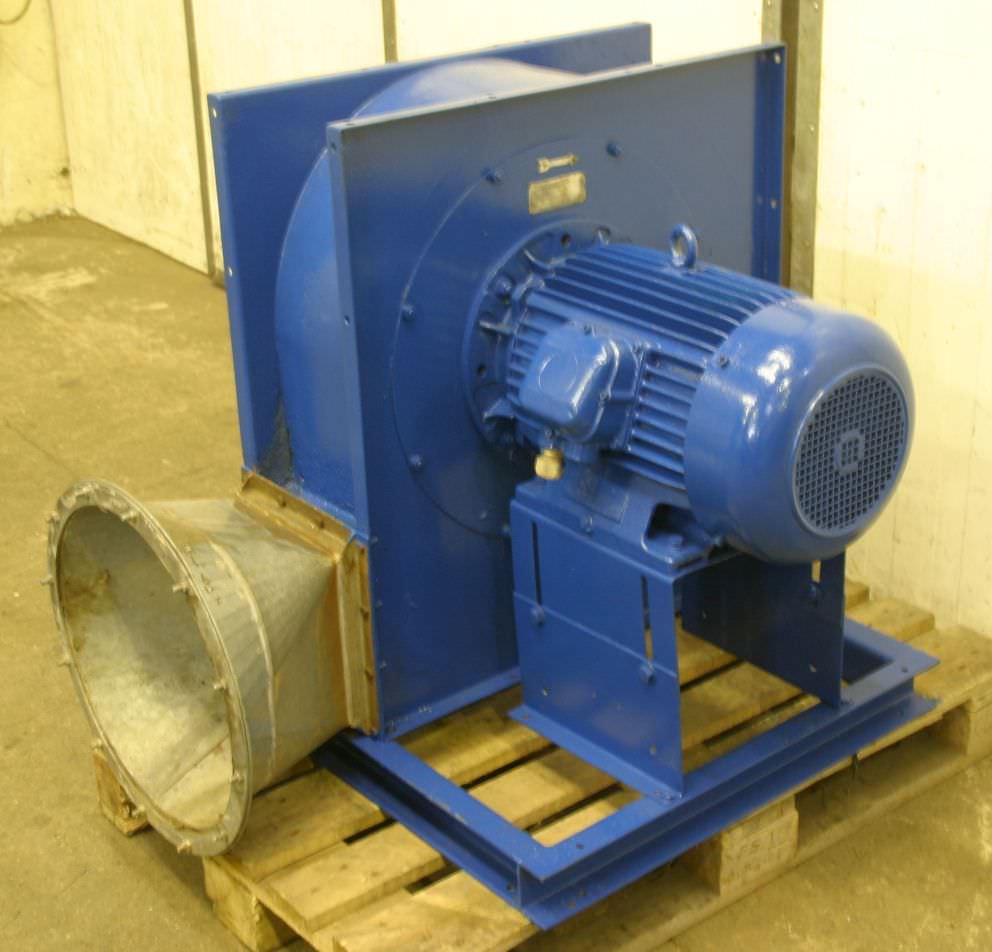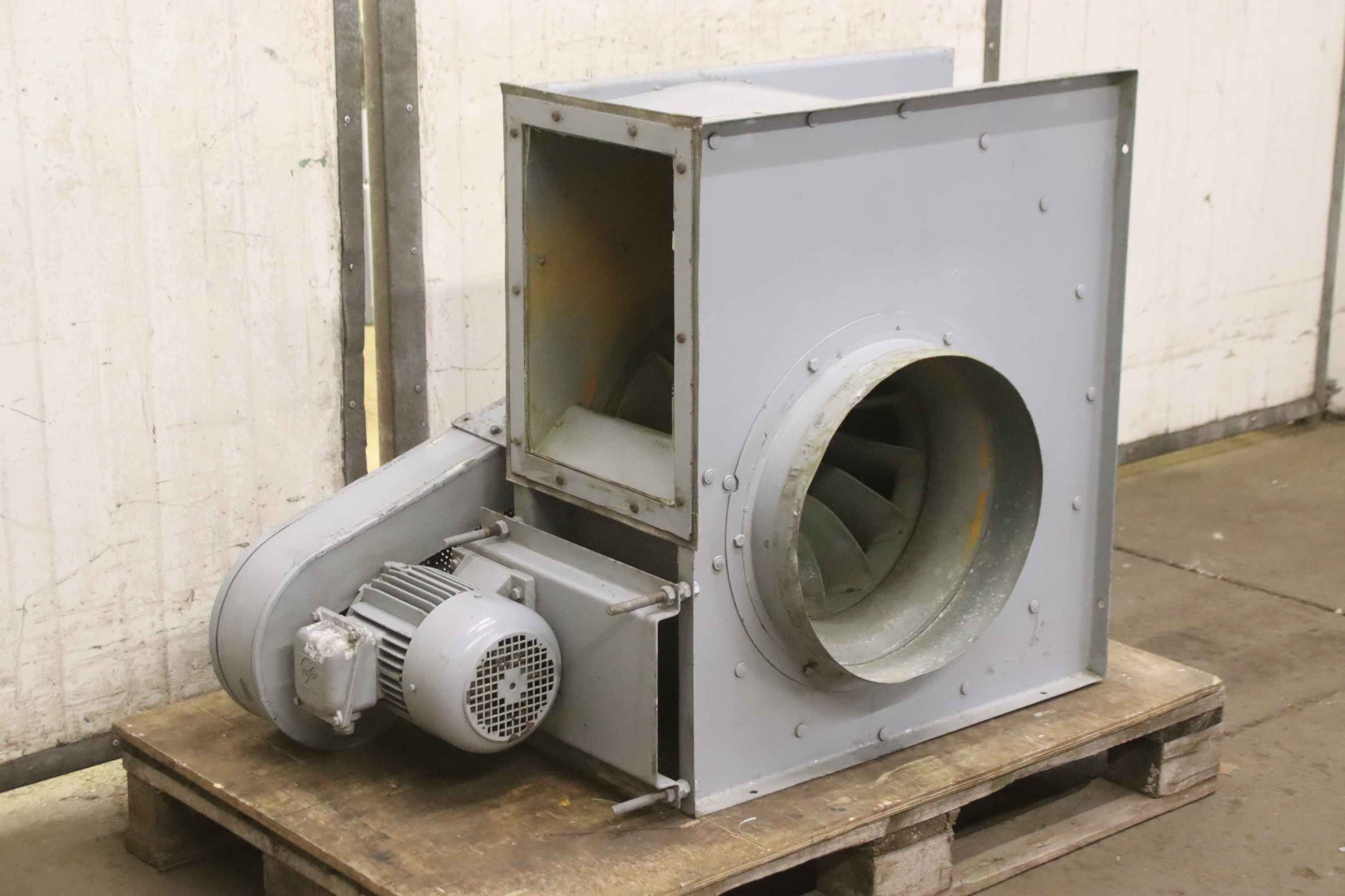 centrifugal fan, dust extraction fan, fan, suction, dust blower -Motor power: 15 kW -Speed: 2925 rpm -Total pressure: Pg 33 m bar -Total pressure: Pst 30 m bar -Volume flow: 9660 m3/h -Inlet connection: O 400 mm -Outlet connection: O 400 mm -Dimensions: 1090/860/H1200 mm -Weight: 238 kg