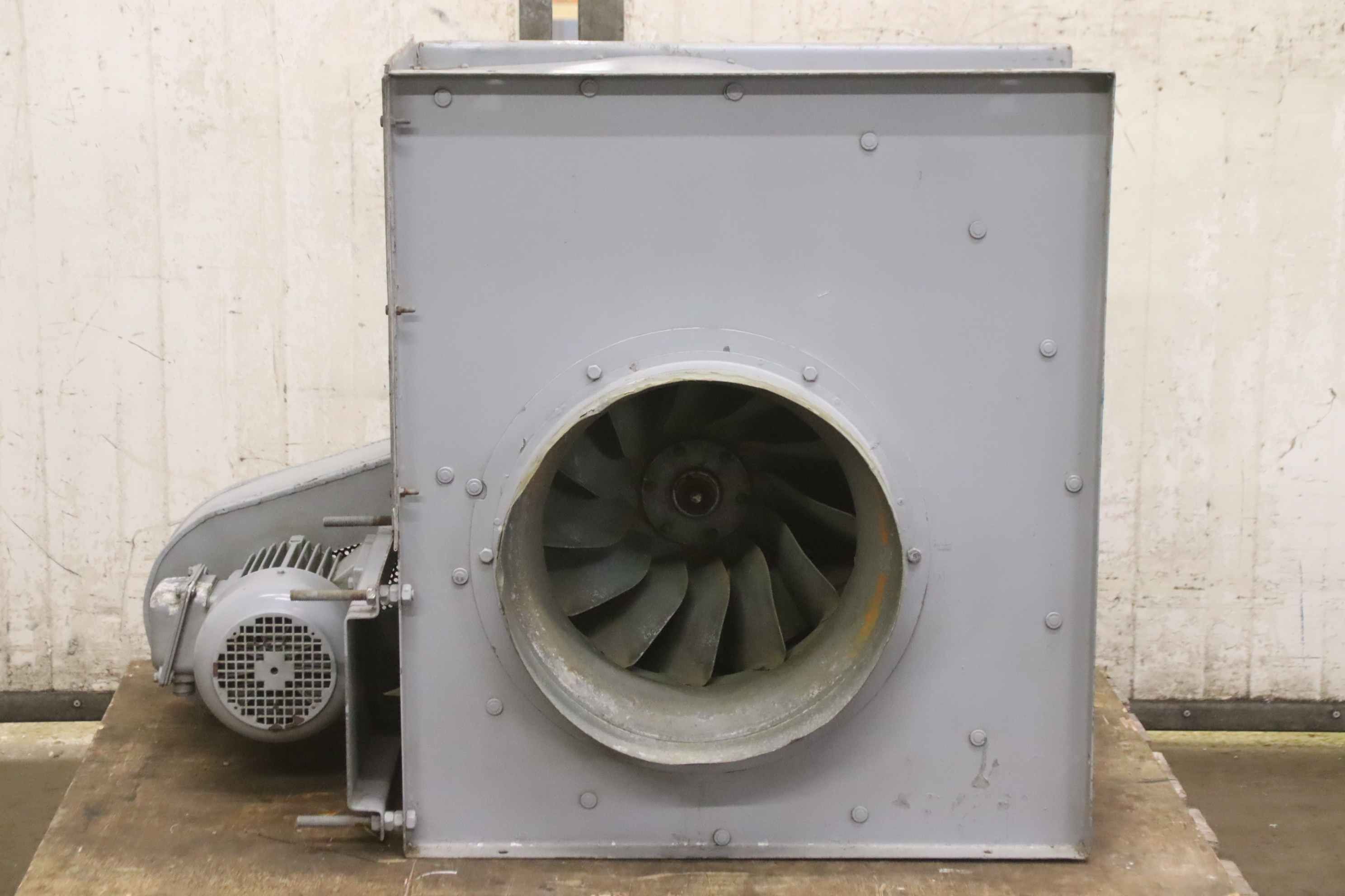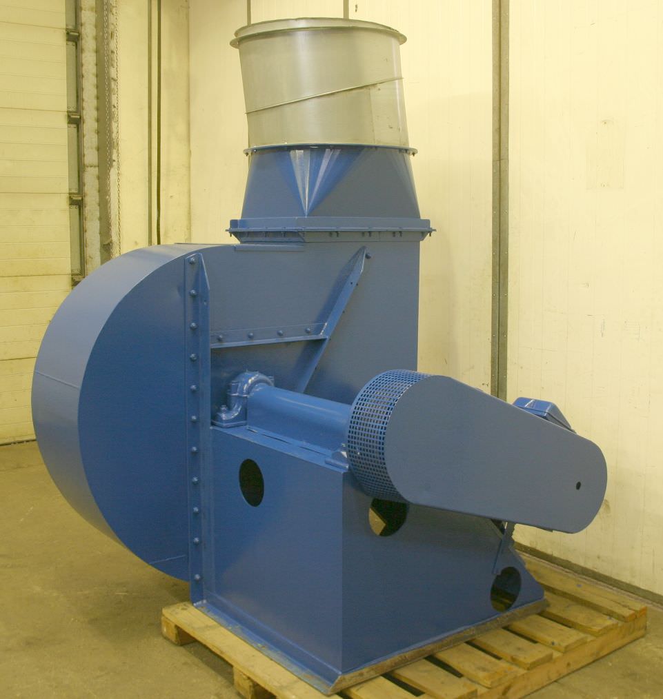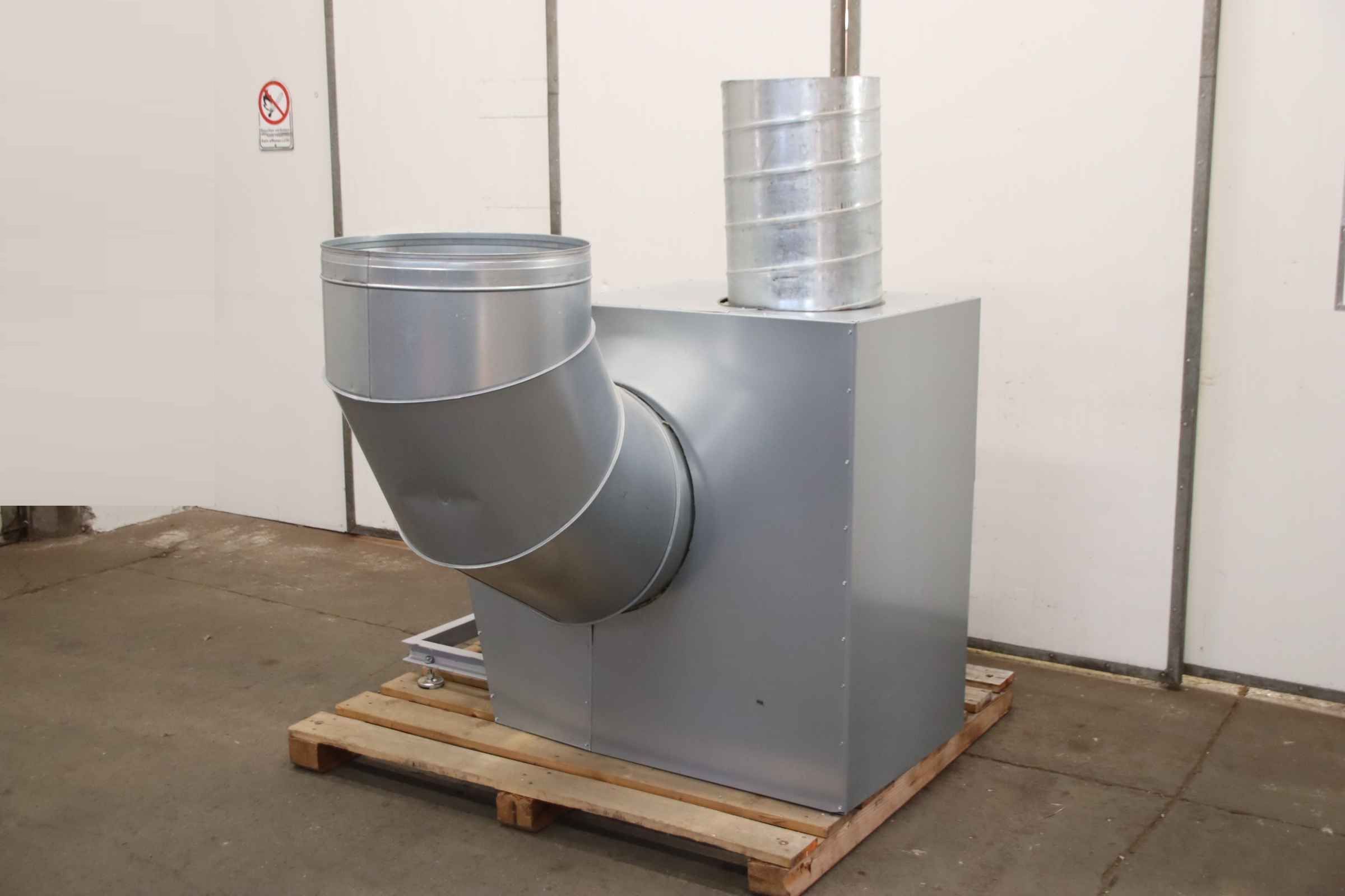 Radial fan, dust extraction fan, fan, extraction, dust blower, blower, exhaust fan -Exhaust fan: heat-resistant -Dust extraction fan: radial fan -Motor: 7.5 kW 1465 rpm -Connection: Inlet Ø 600 mm -Connection: Outlet Ø 400 mm -Volume flow: m³/h -Dimensions: 1985/1570/H1780 mm -Weight: 442 kg