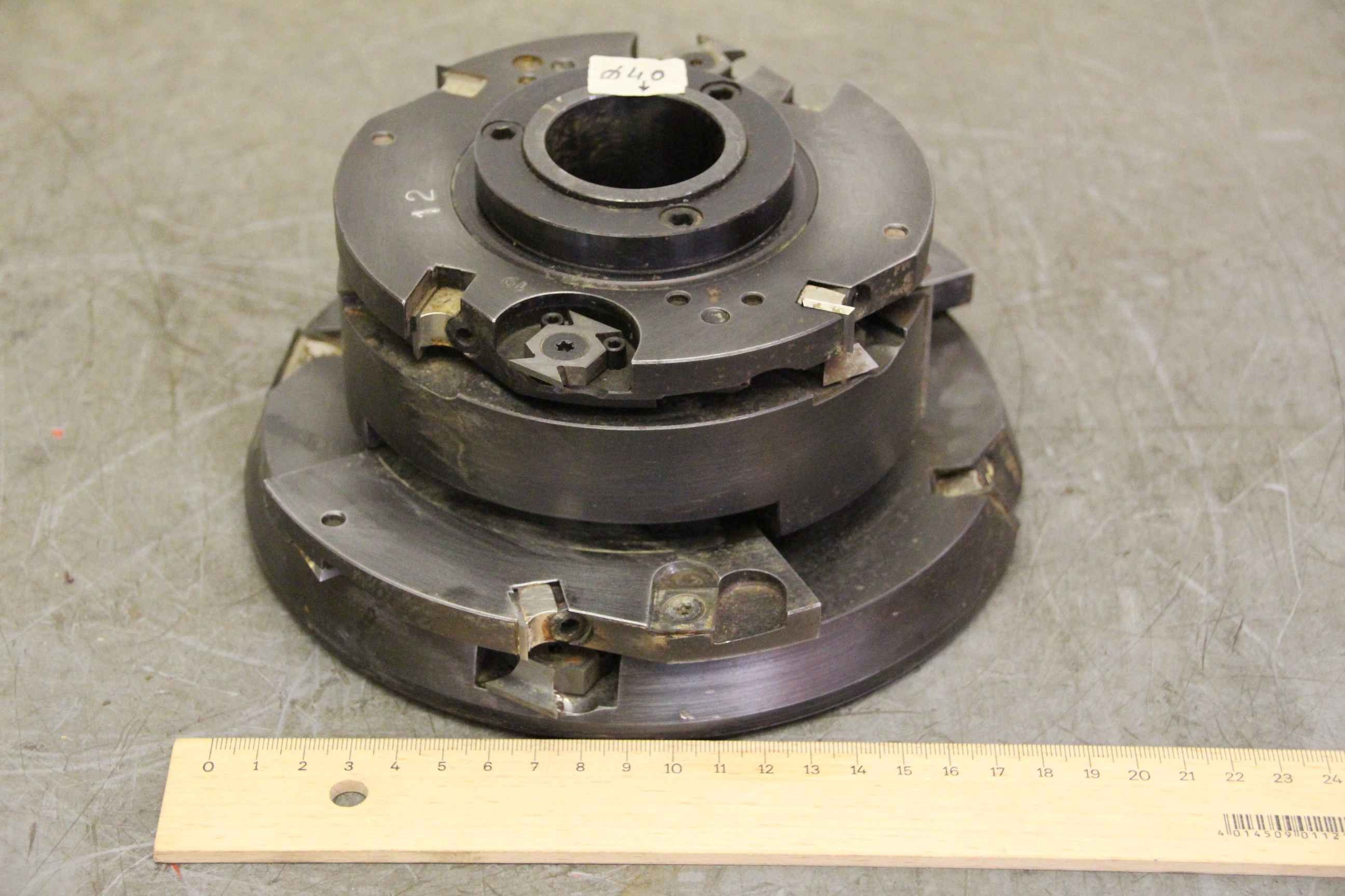 Slotted discs, window milling tools, indexable inserts for window construction tools, wood milling tools, wood milling cutters Slotted discs, milling tool for wooden windows, wood router bit, milling head, milling tool, wood router bit, profile router bit -Manufacturer: VIVALDI, window milling tool -Outer milling cutter: Ø 172 mm -Height: 100 mm -Hole: Ø 40 mm -Speed: up to max. 6000 rpm -Weight: 8.2 kg