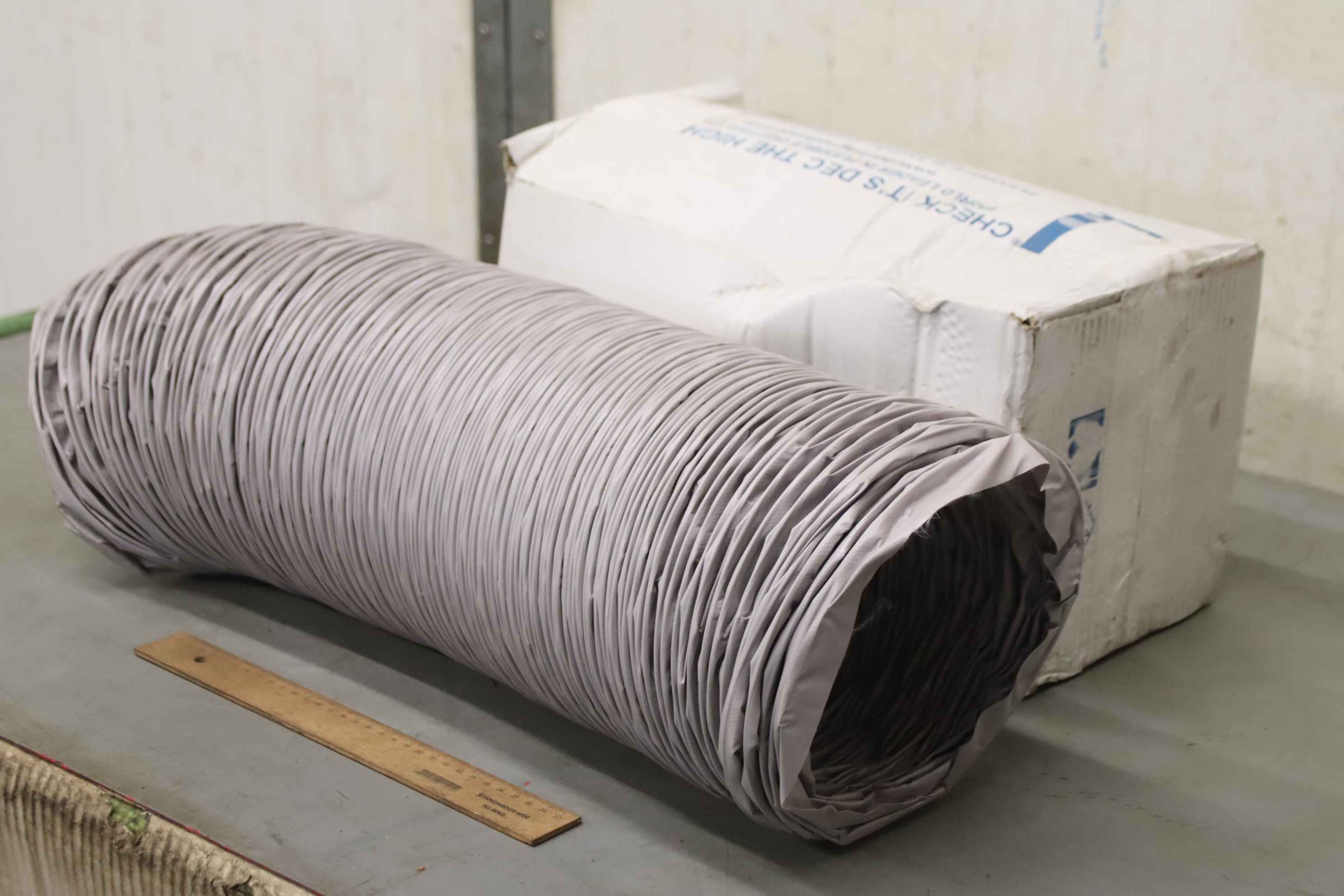 Angles for filter systems, chip extraction, dust extraction, extraction systems, ventilation ducts and fittings -Manufacturer: DEC, ventilation hose, original packaging -Type: Greydec 100 - 152mm x 6 meters -ART.code: DG1152/6 -Cardboard dimensions: 400/175/H175 mm -Weight: 1.7 kg