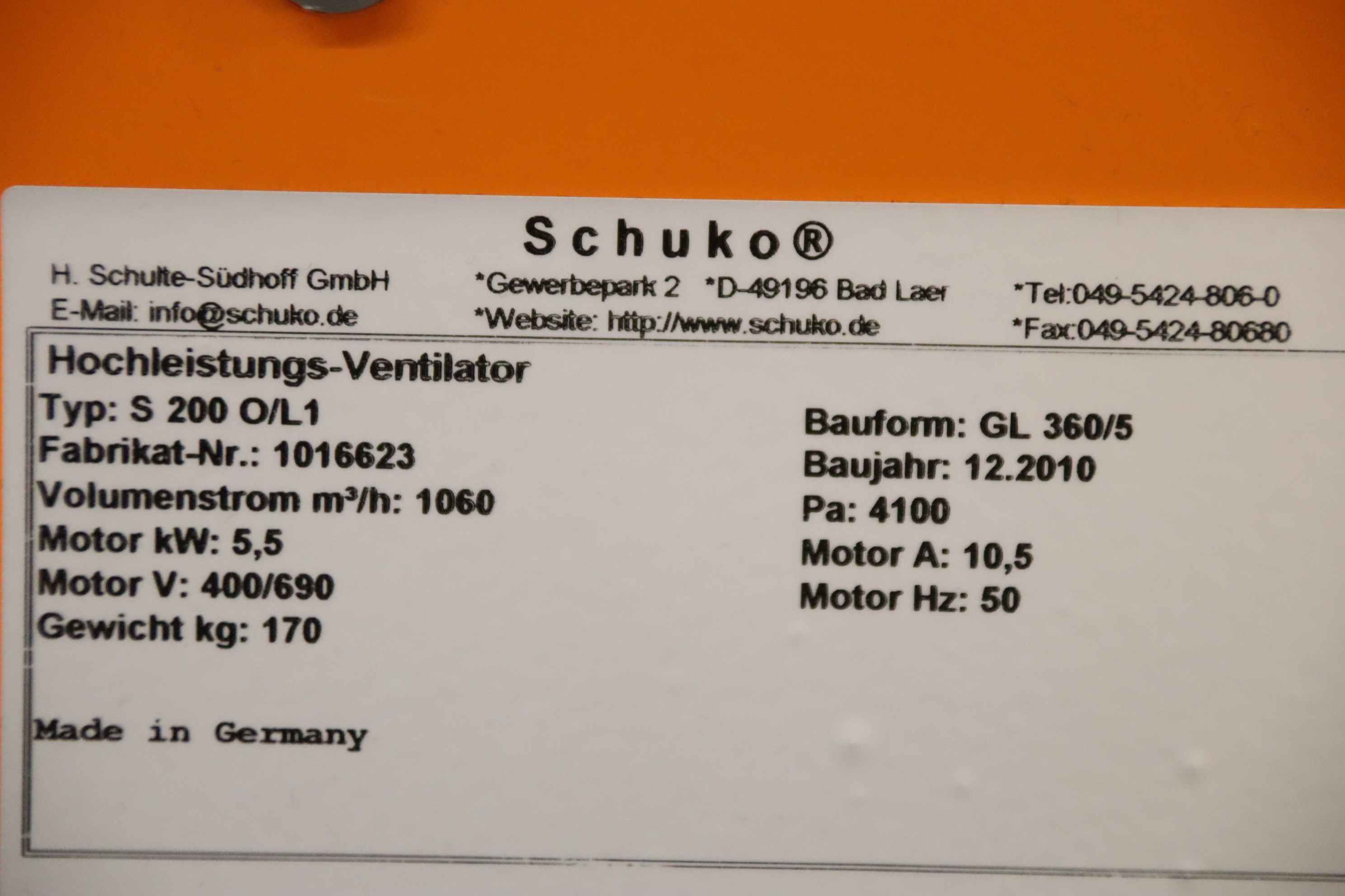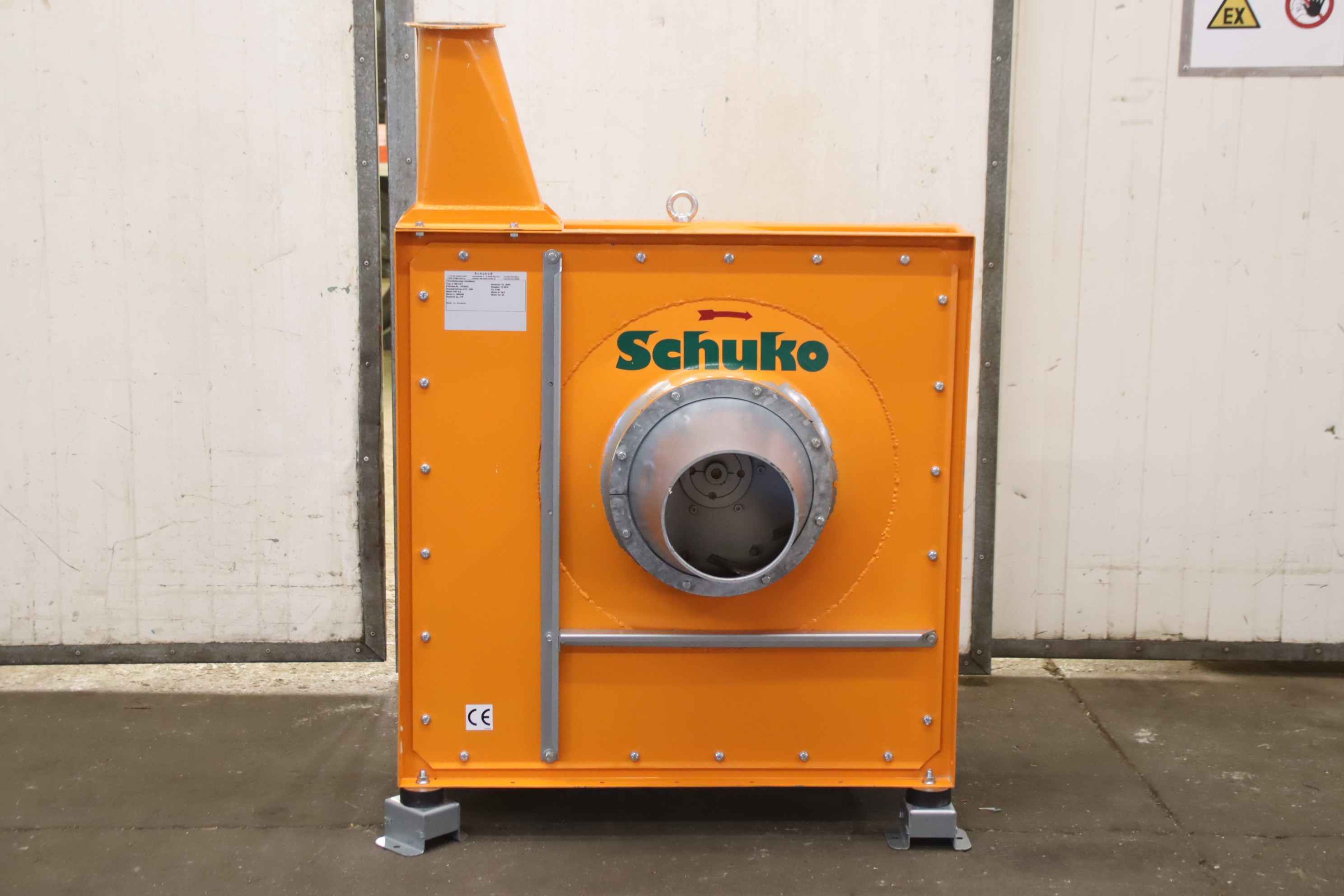 Centrifugal fan, chip extraction fan, fan, suction, chip blower, high performance fan -Motor power: 5.5 kW -Speed: 2895 rpm -Volume flow: 1060 m³/h -Connection input: Ø 200 mm -Connection output: Ø 115 mm -Dimensions: 775/1000/H1350 mm -Weight: 170kg
