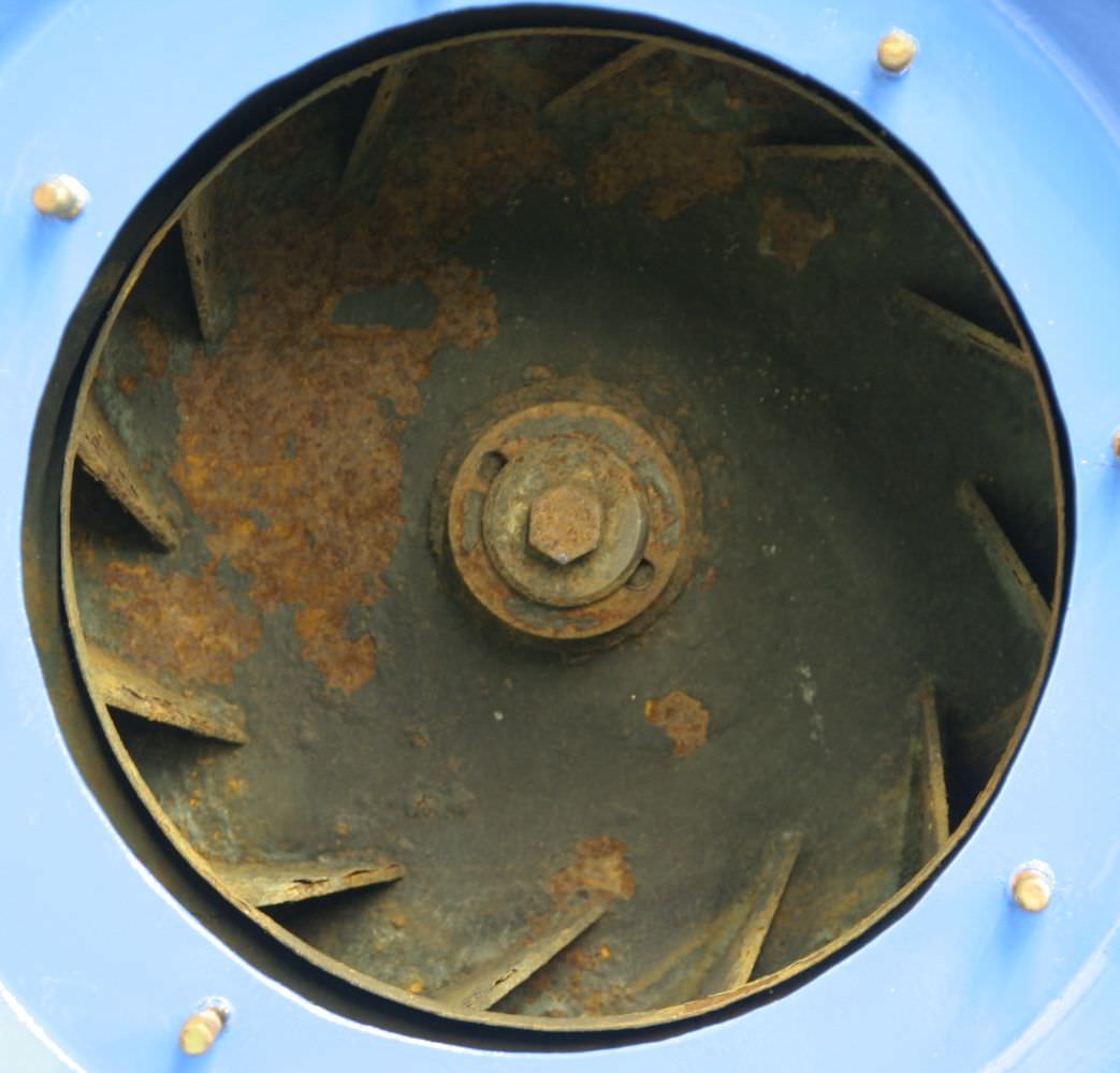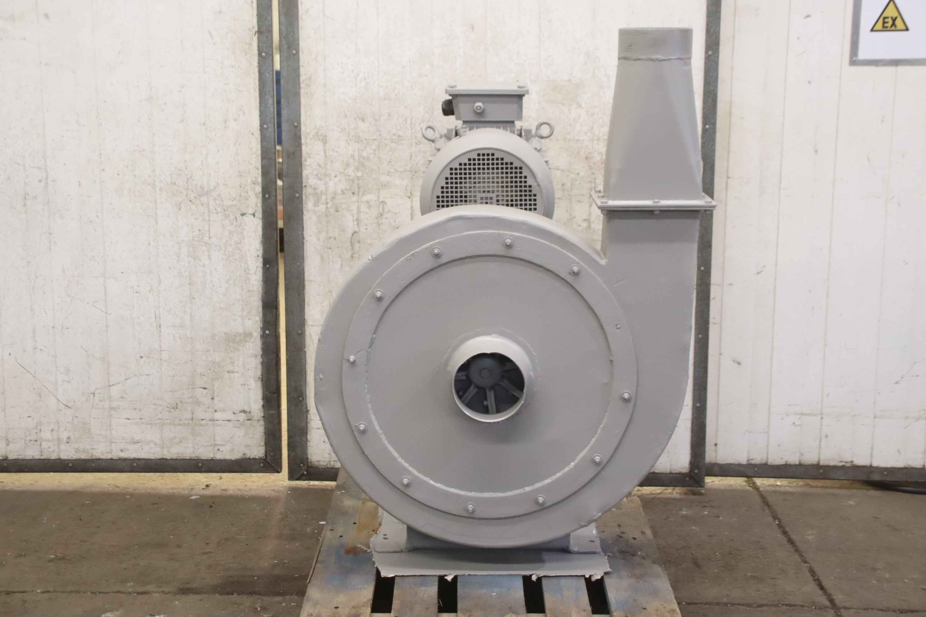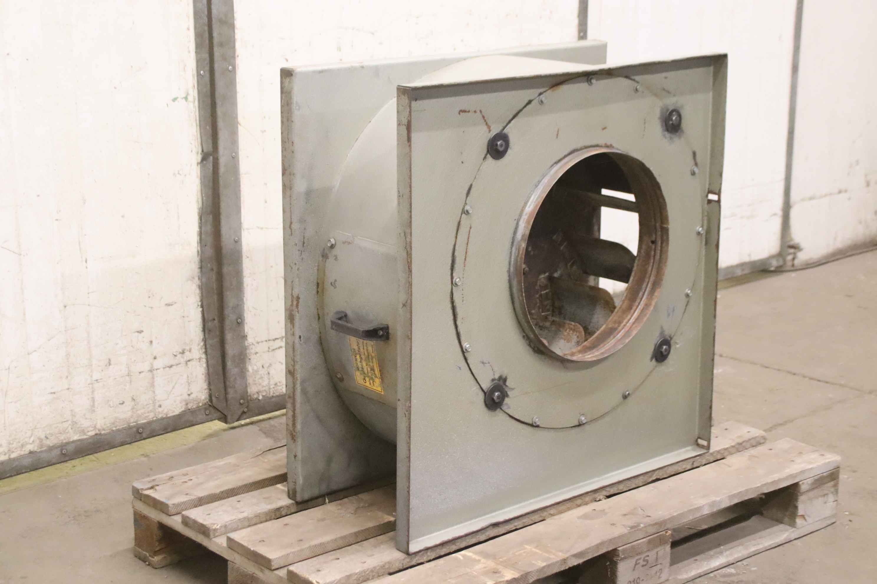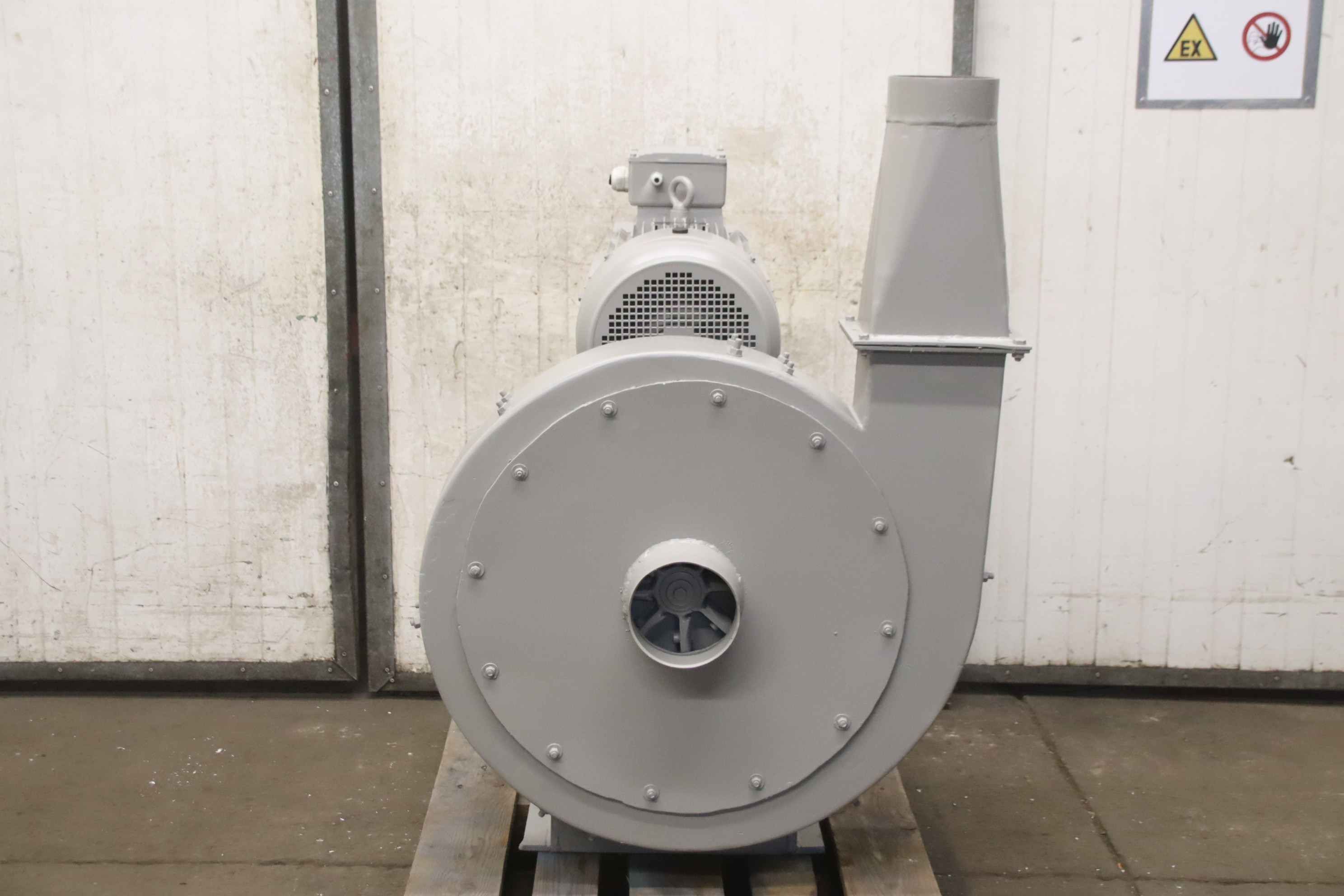 Radial fan, dust extraction fan, fan, extraction, dust blower, blower, exhaust fan-Dust extraction fan: radial fan-Motor: VEM 3,6 kW 1430 U/min Ex protected-Fan wheel: Ø 580 x 180 mm-Connection: inlet Ø 395 mm-Connection: Output 280 x 485 mm-Dimensions: 825/670/H825 mm-Weight: 118 kg