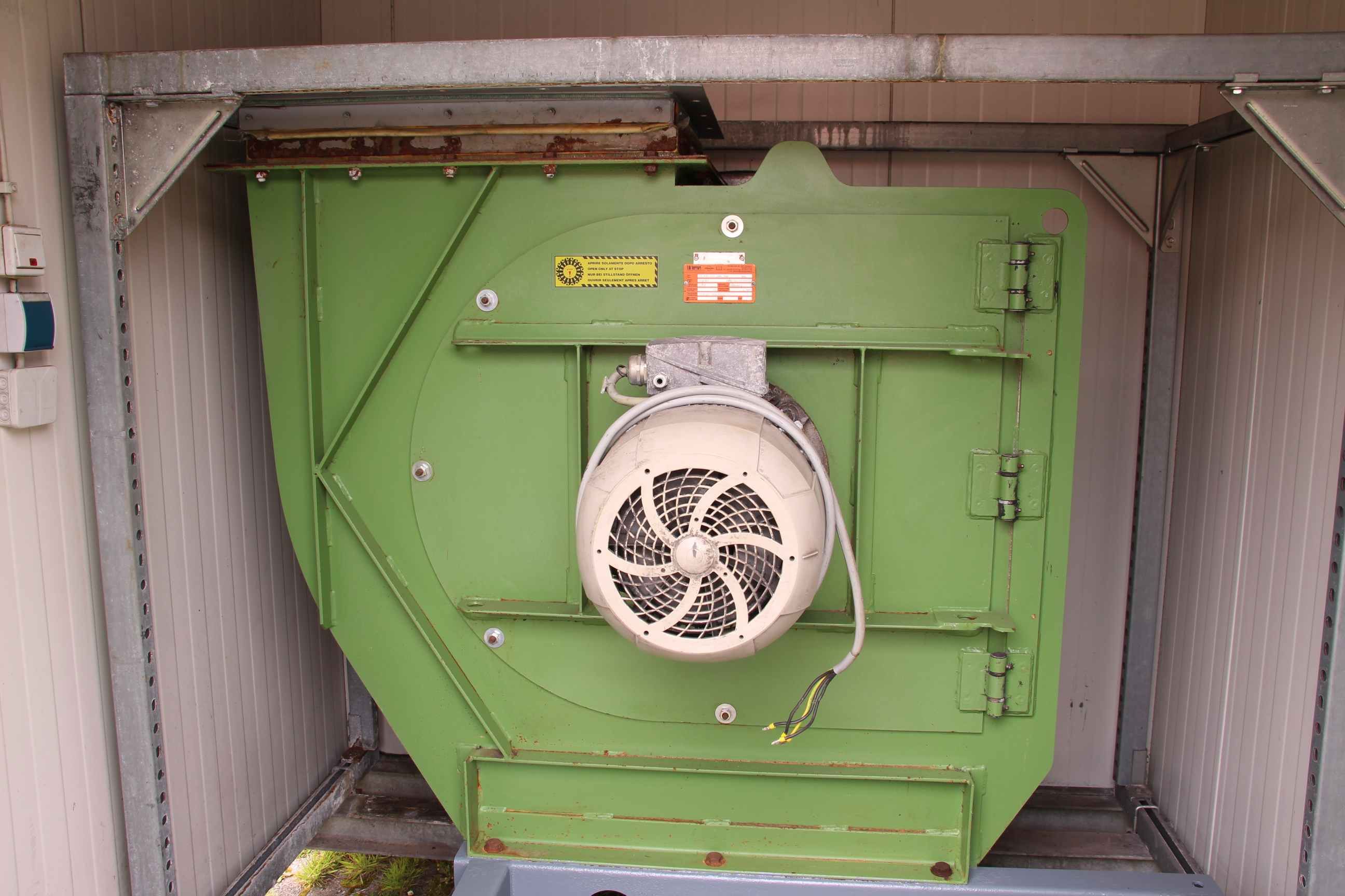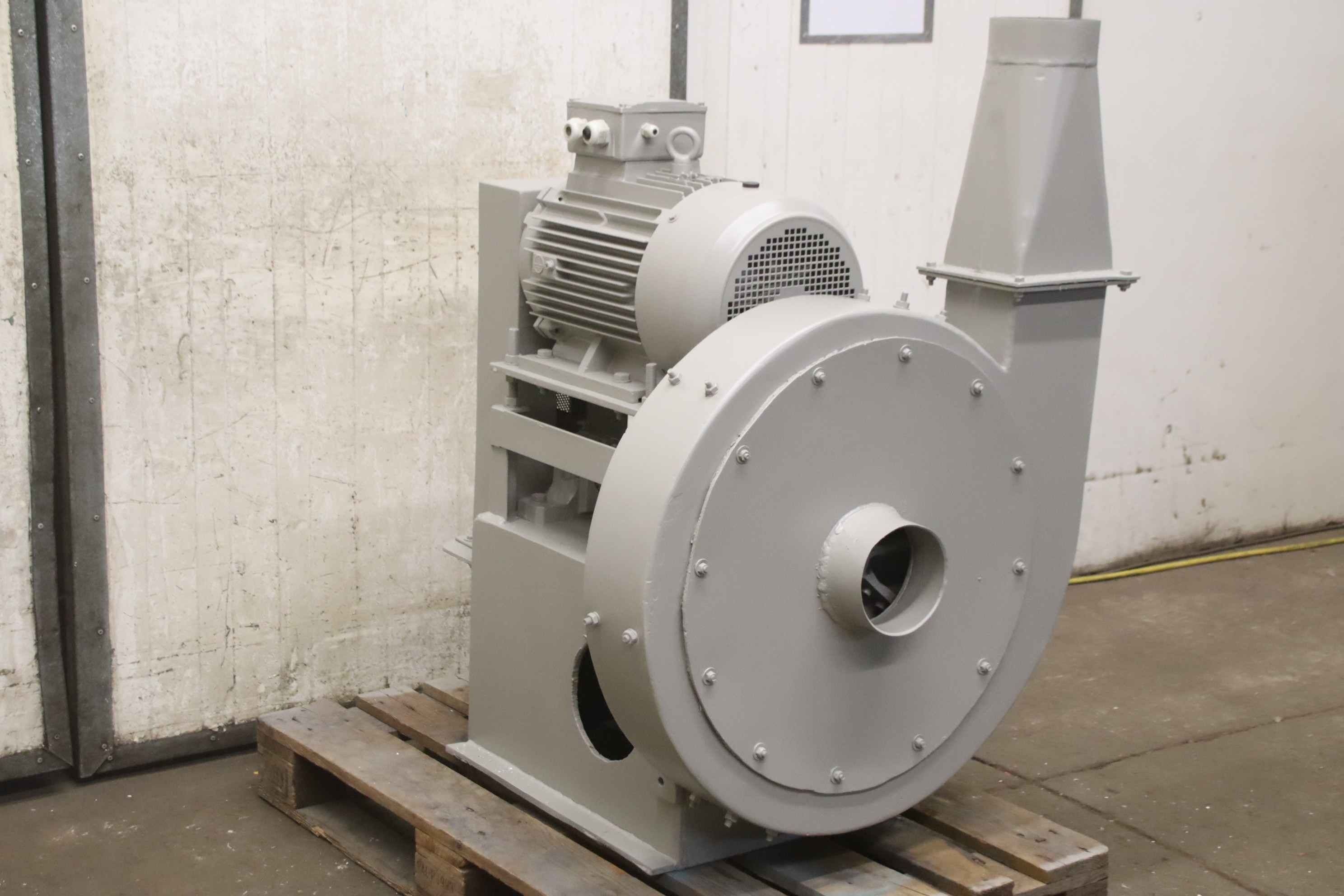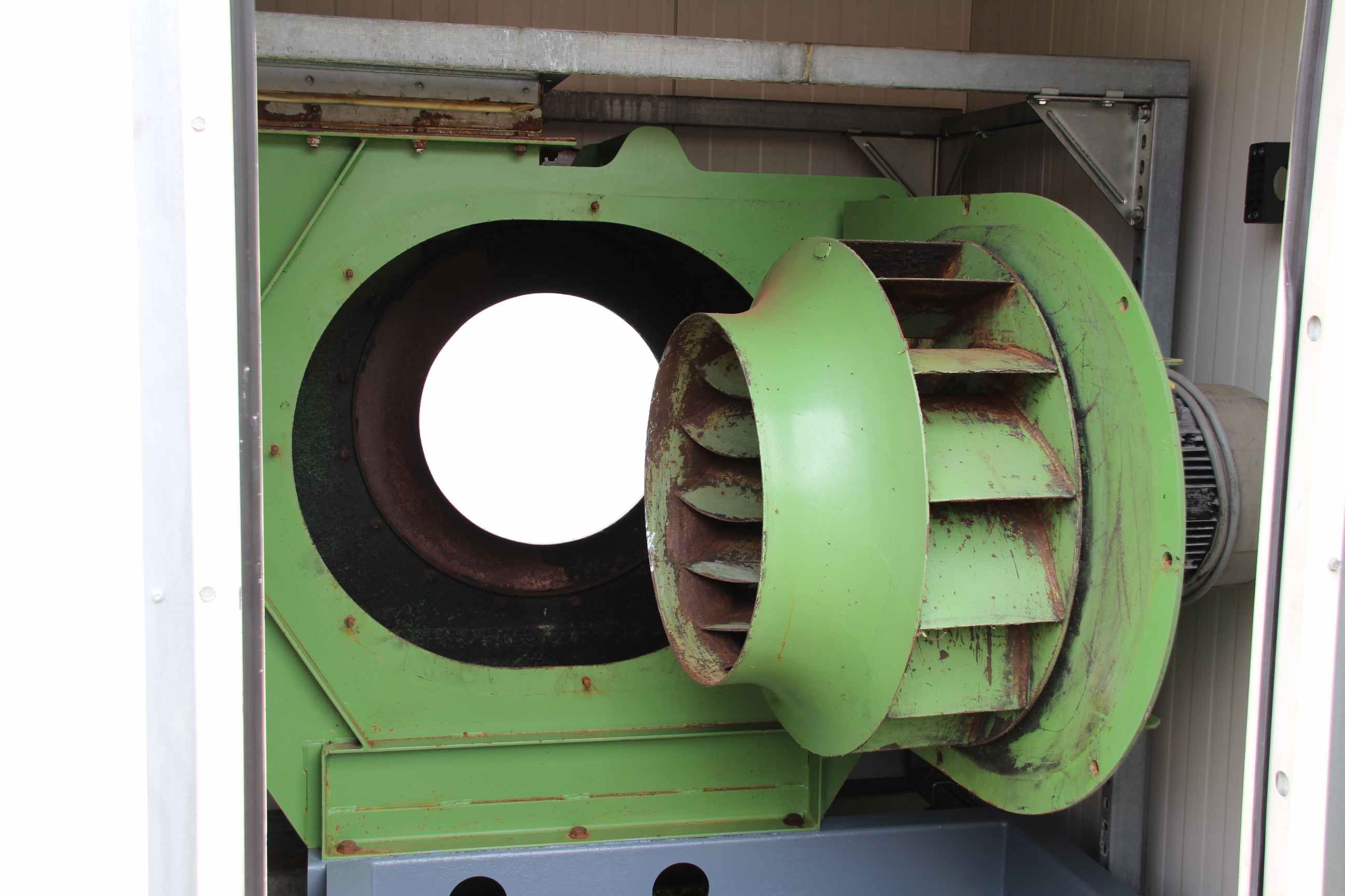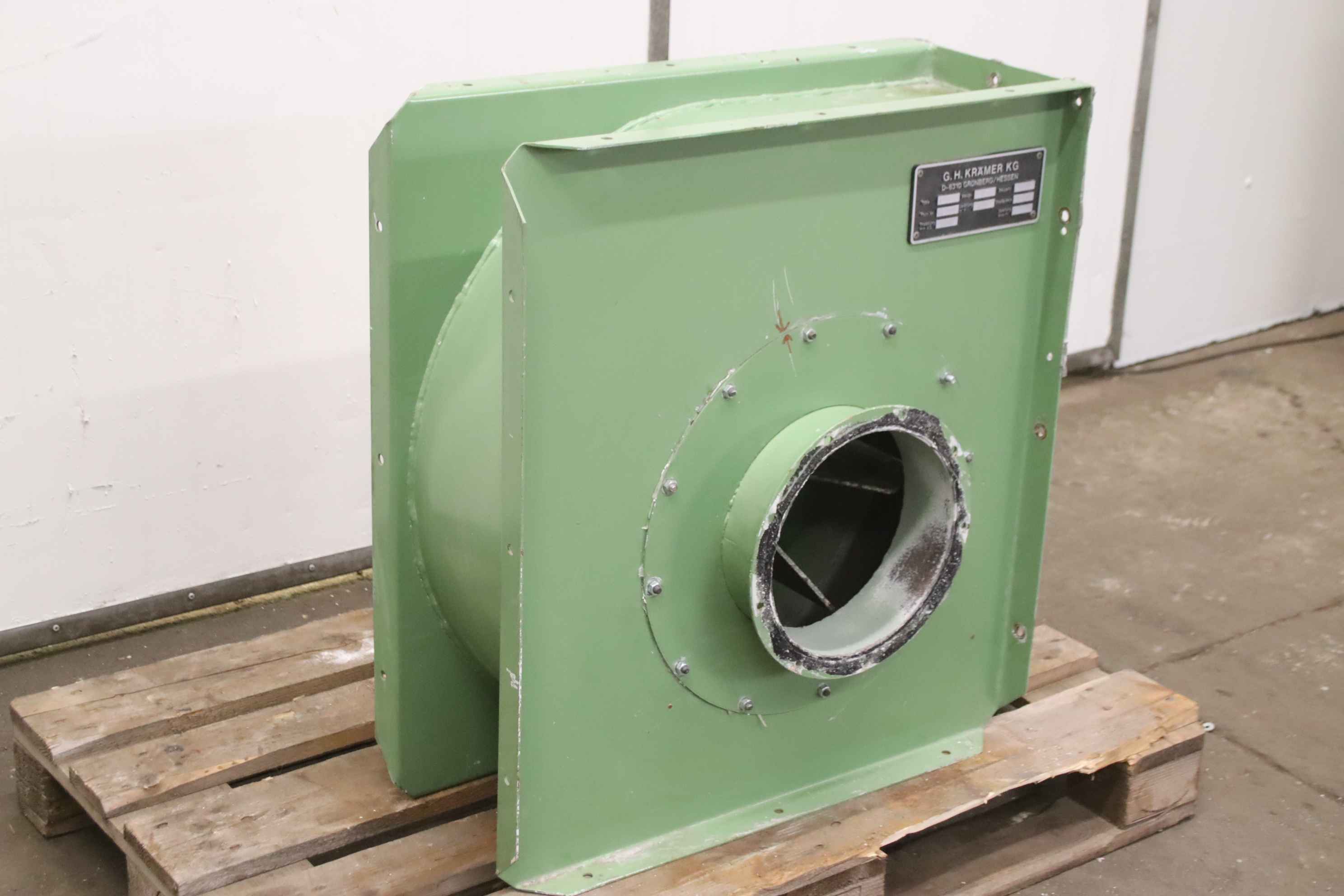 Radial fan, dust extraction fan, fan, extraction, dust blower, blower, exhaust fan-Dust extraction fan: radial fan-Motor: VEM 3,6 kW 1430 U/min Ex protected-Fan wheel: Ø 580 x 180 mm-Connection: inlet Ø 395 mm-Connection: Output 280 x 485 mm-Dimensions: 825/670/H825 mm-Weight: 118 kg