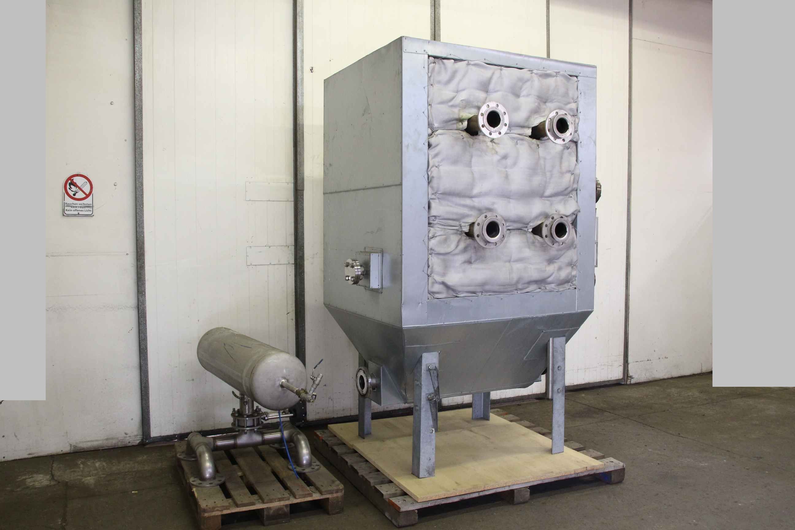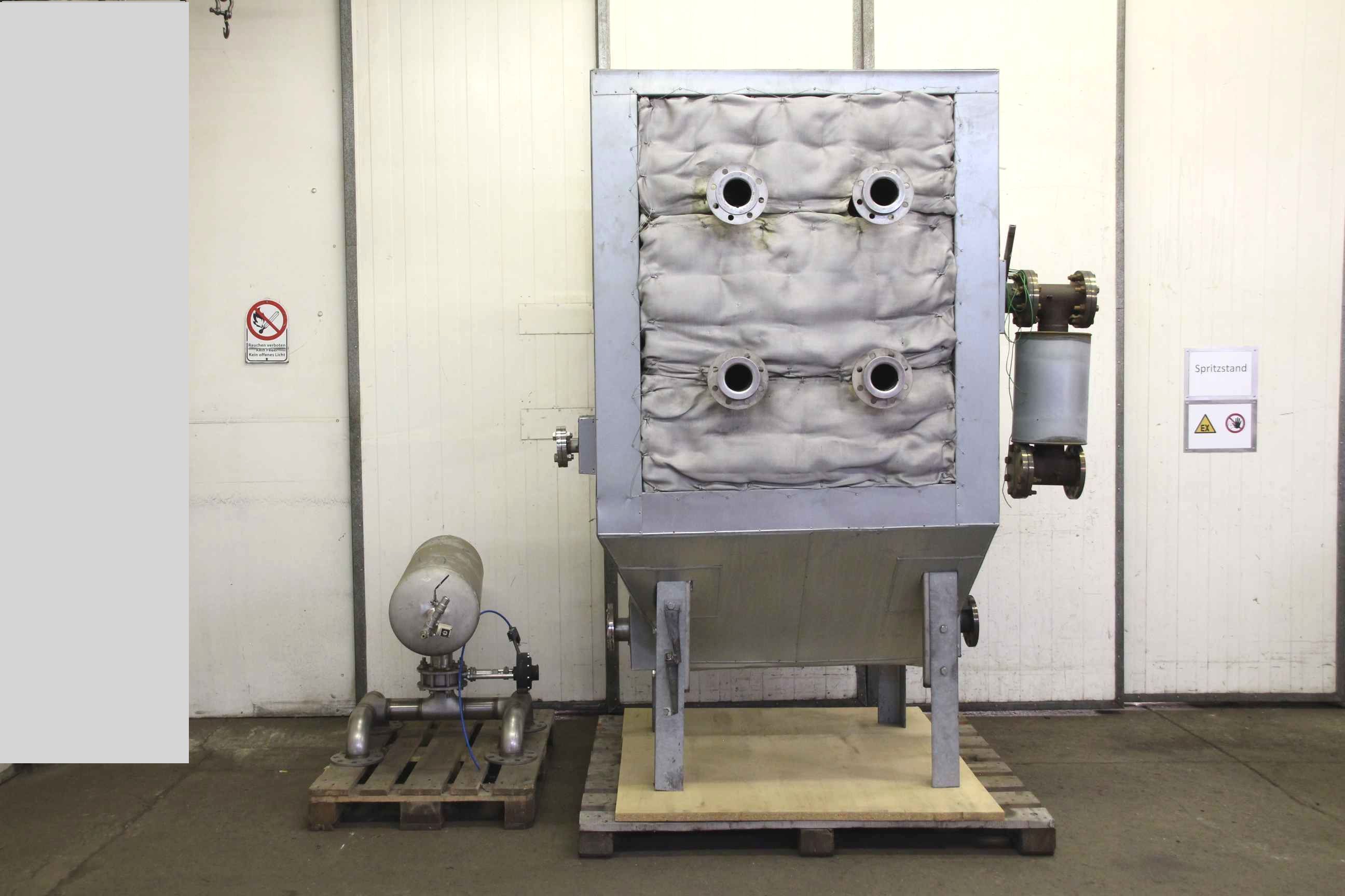 exhaust filter system, exhaust filter system, exhaust filter, hot filter, industrial exhaust filter -Filter system: Manufacturer/type unfortunately unknown flange dimensions DN100 -Individual components: see photos -Dimensions: 2020/1630/H2490 mm / 1850/800/H800 mm -Total weight: 1292 kg