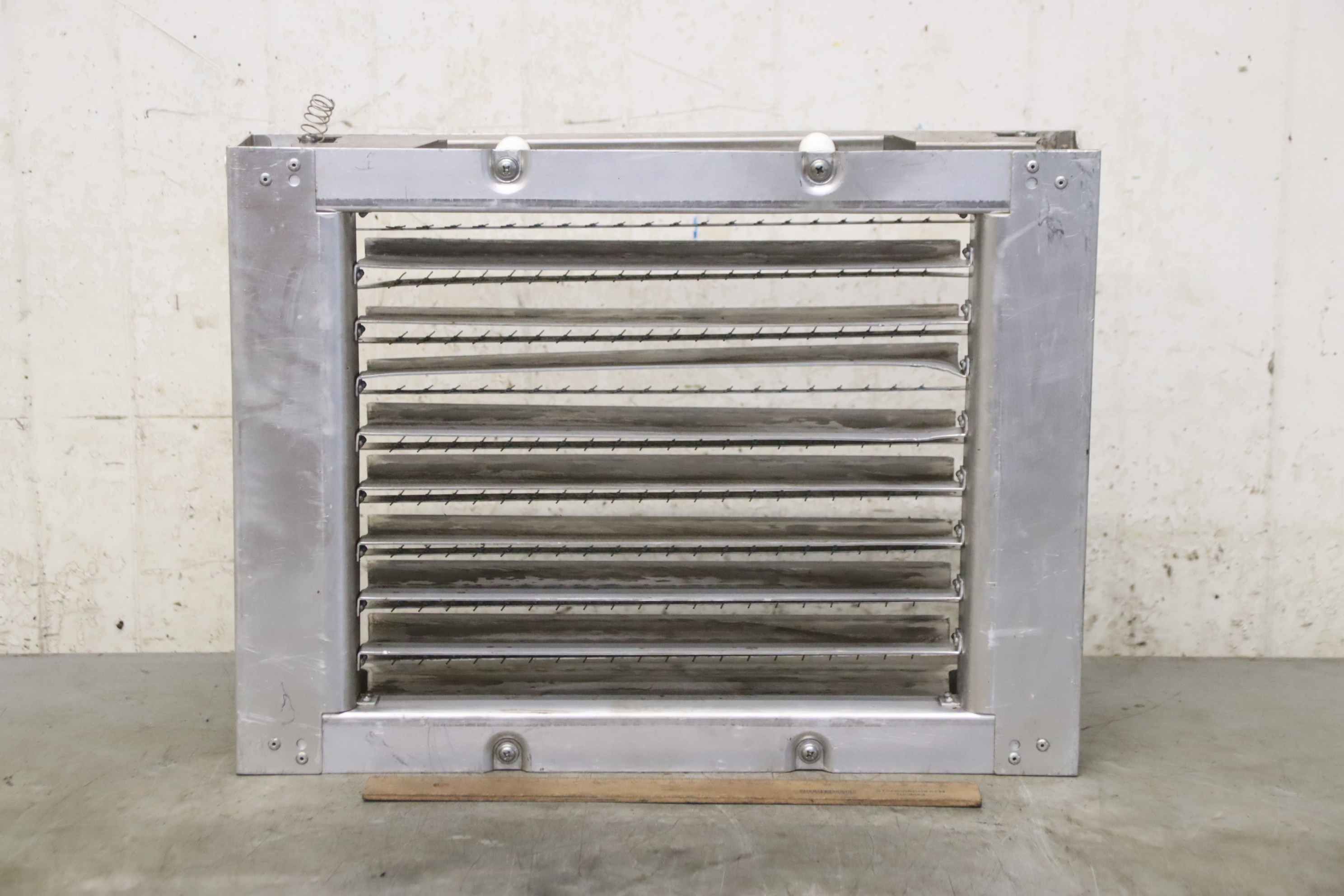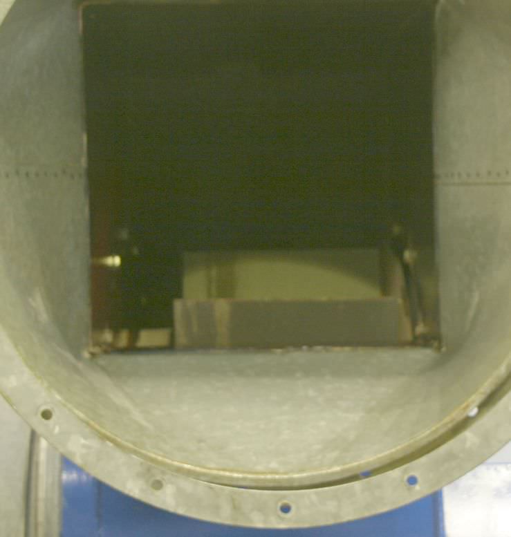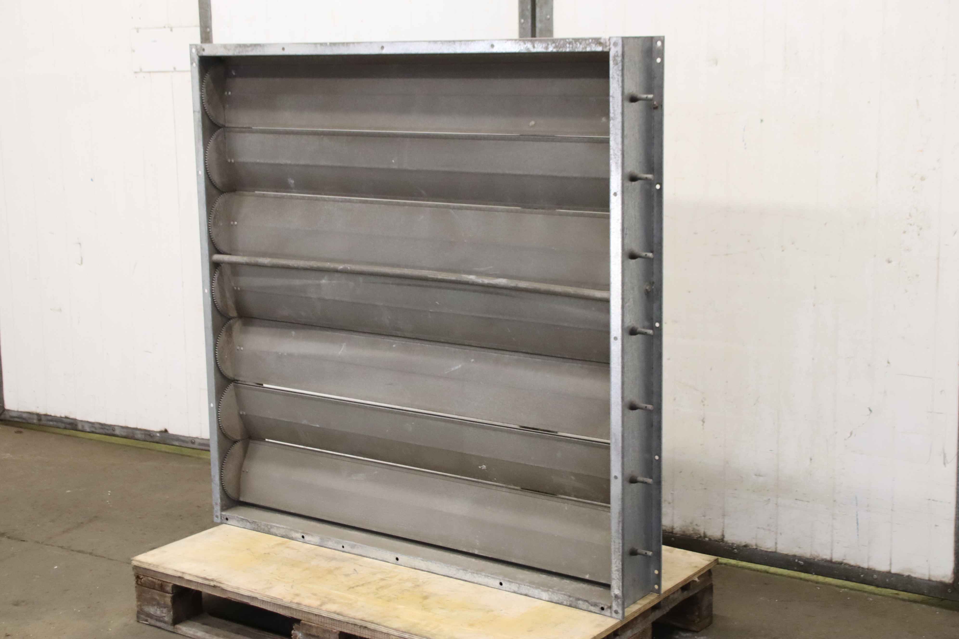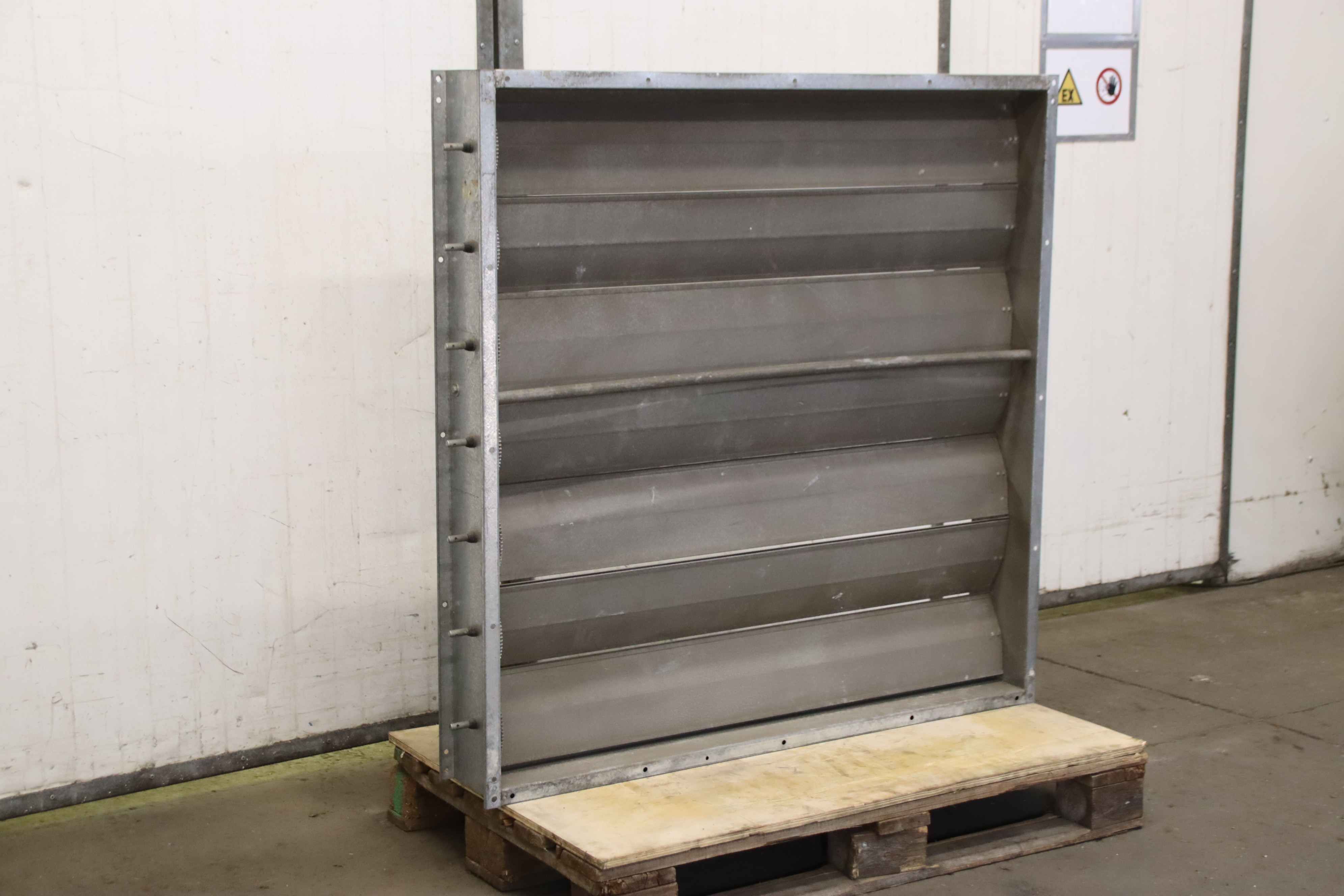 Air outlet, ventilation duct, ventilation flap for ventilation system, filter system, chip extraction, dust extraction, extraction system, ventilation ducts and fittings, shutter flap, non-return flap -Slat fan: without fan, air outlet, lateral. Slats adjustable -Connection opening: Ø 800 mm -Dimensions: 1130/1130/770 mm -Weight: 135kg