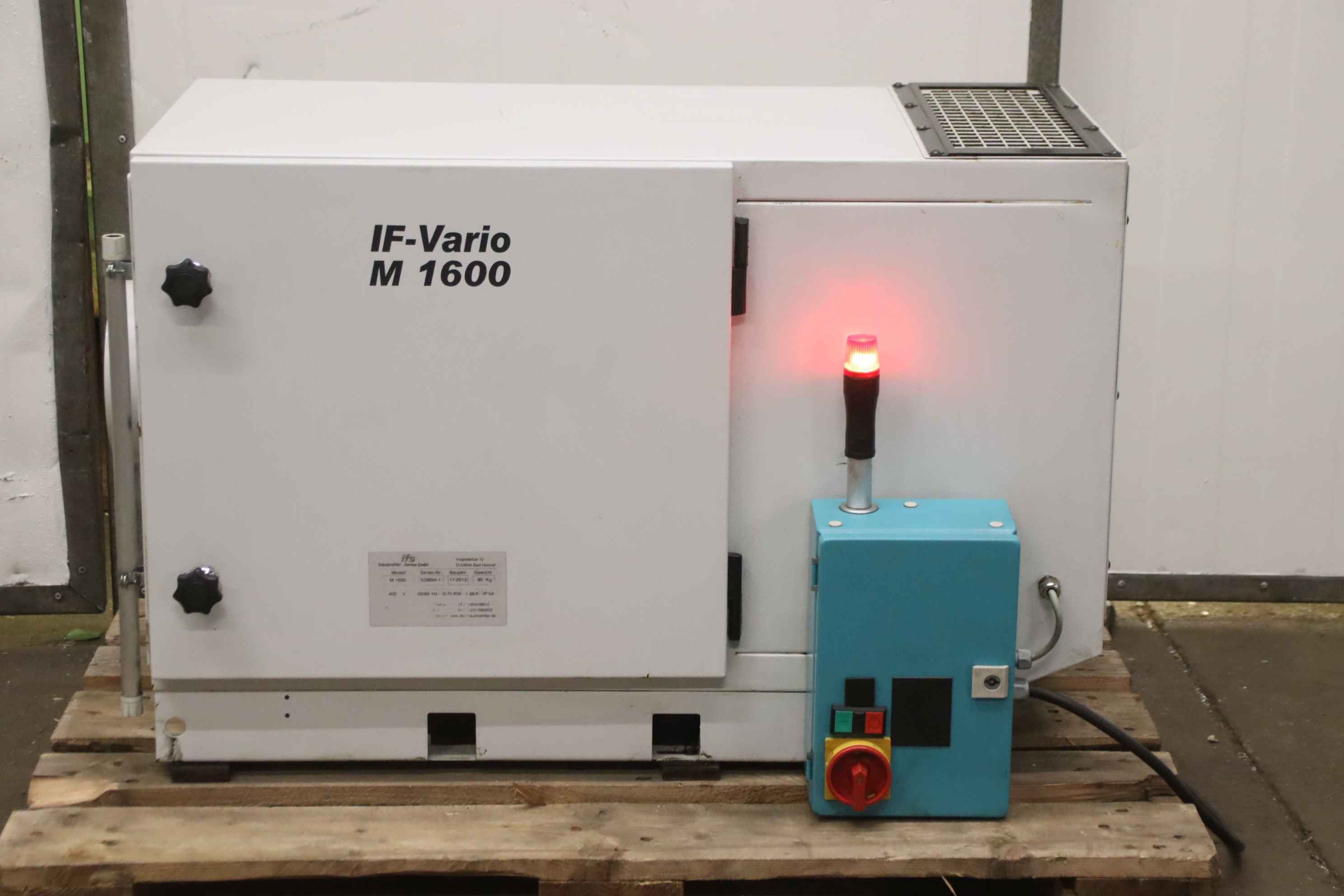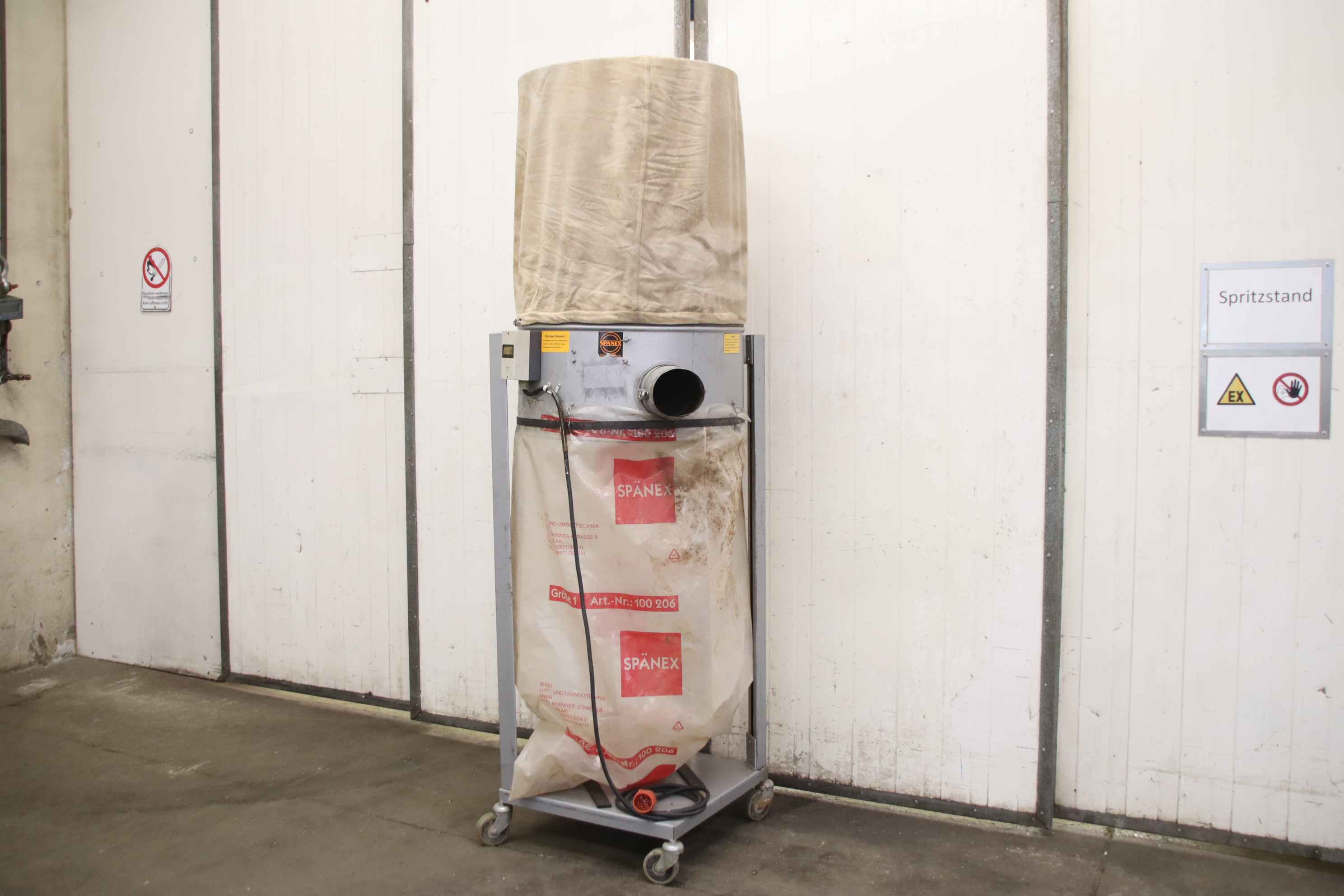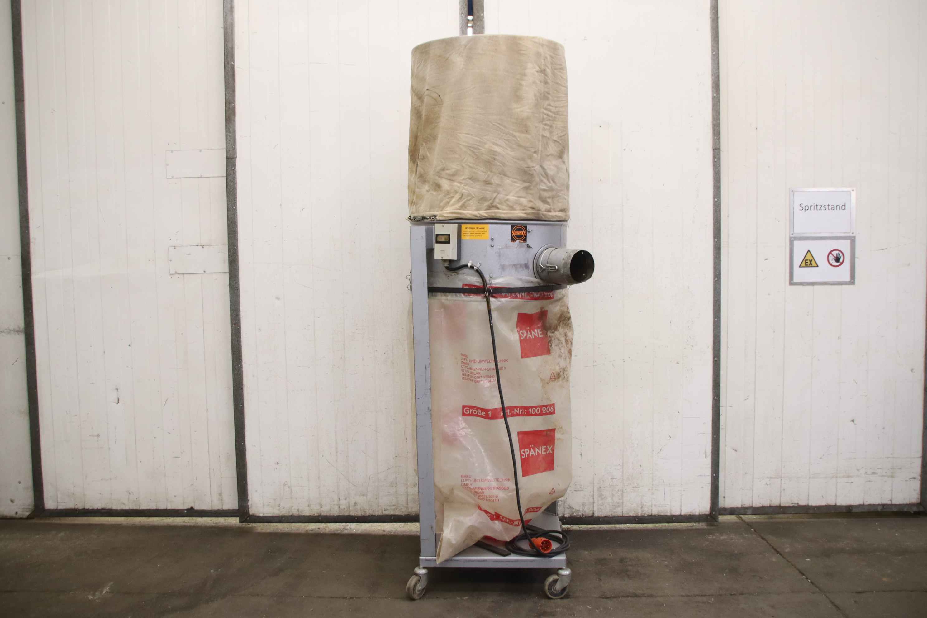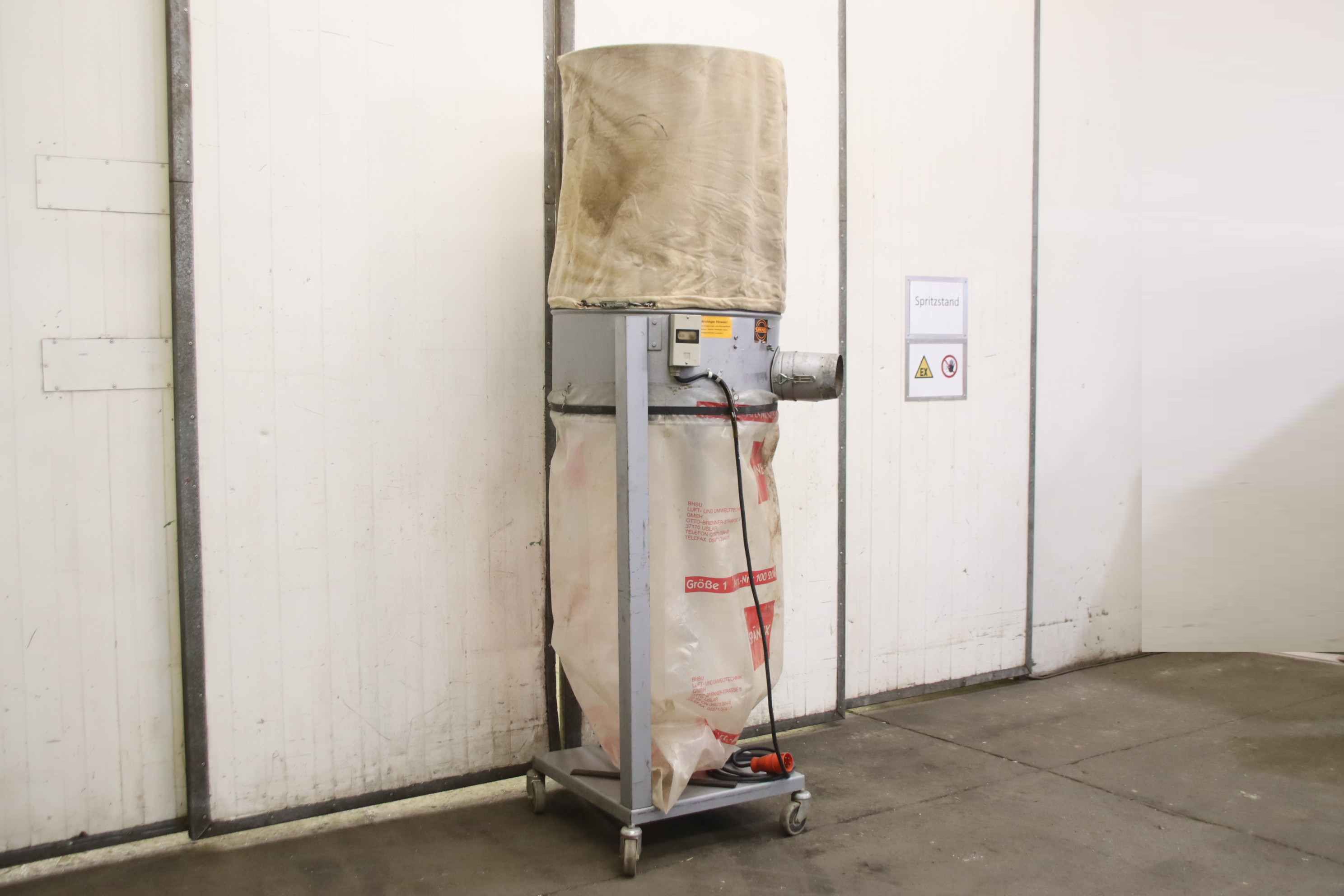 Hall extraction system, chip filter system, filter system, chip extraction, wood chip extraction, Radial fan, chip extraction fan, fan, suction, chip blower-Manufacturer: Spänex, mobile filter system-Motor: Siemens 0.75 kW-Speed: 2850 rpm-Connection input: Ø 140 mm-Base: on wheels-Dimensions: 680/680/H2290 mm-Weight: 60 kg