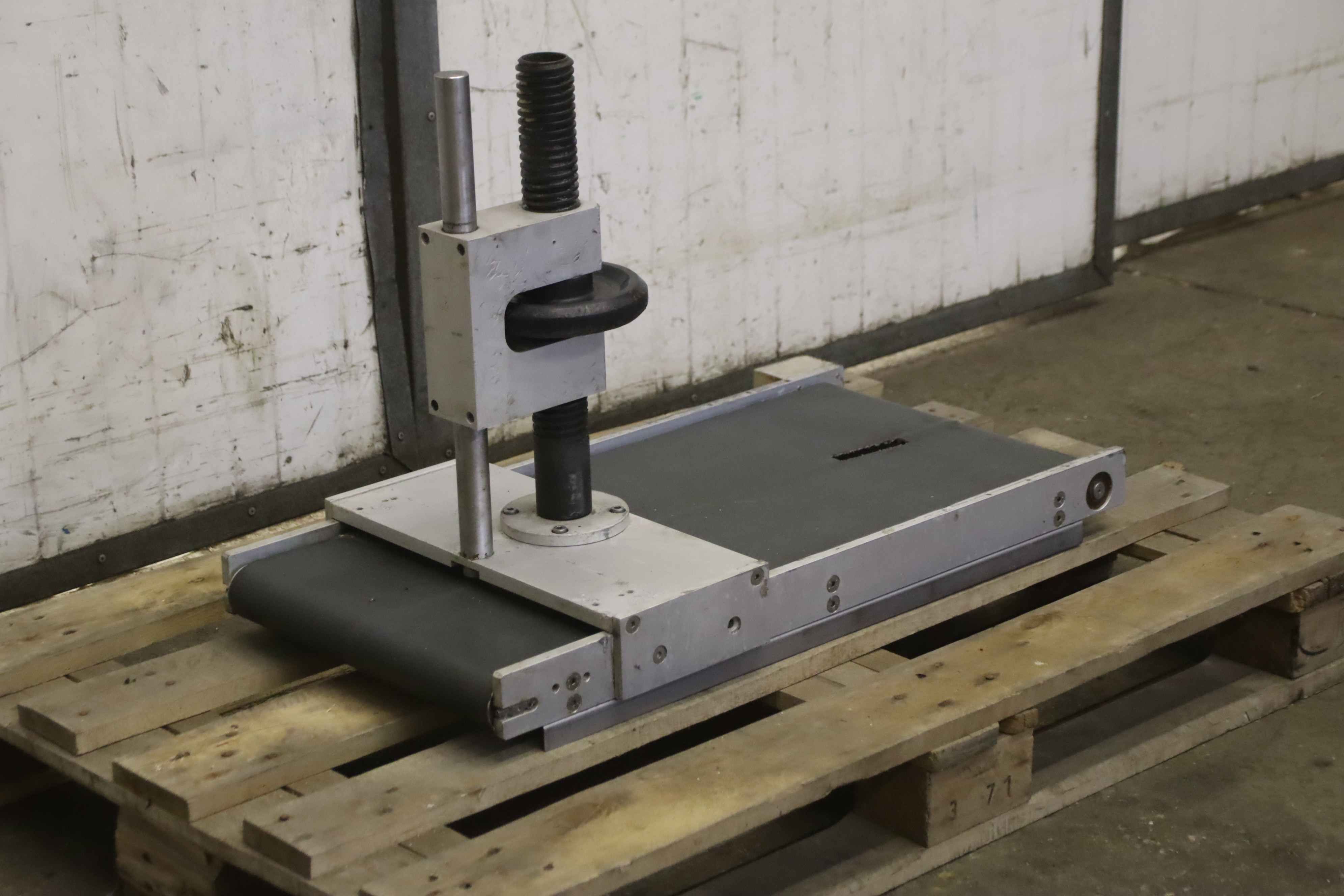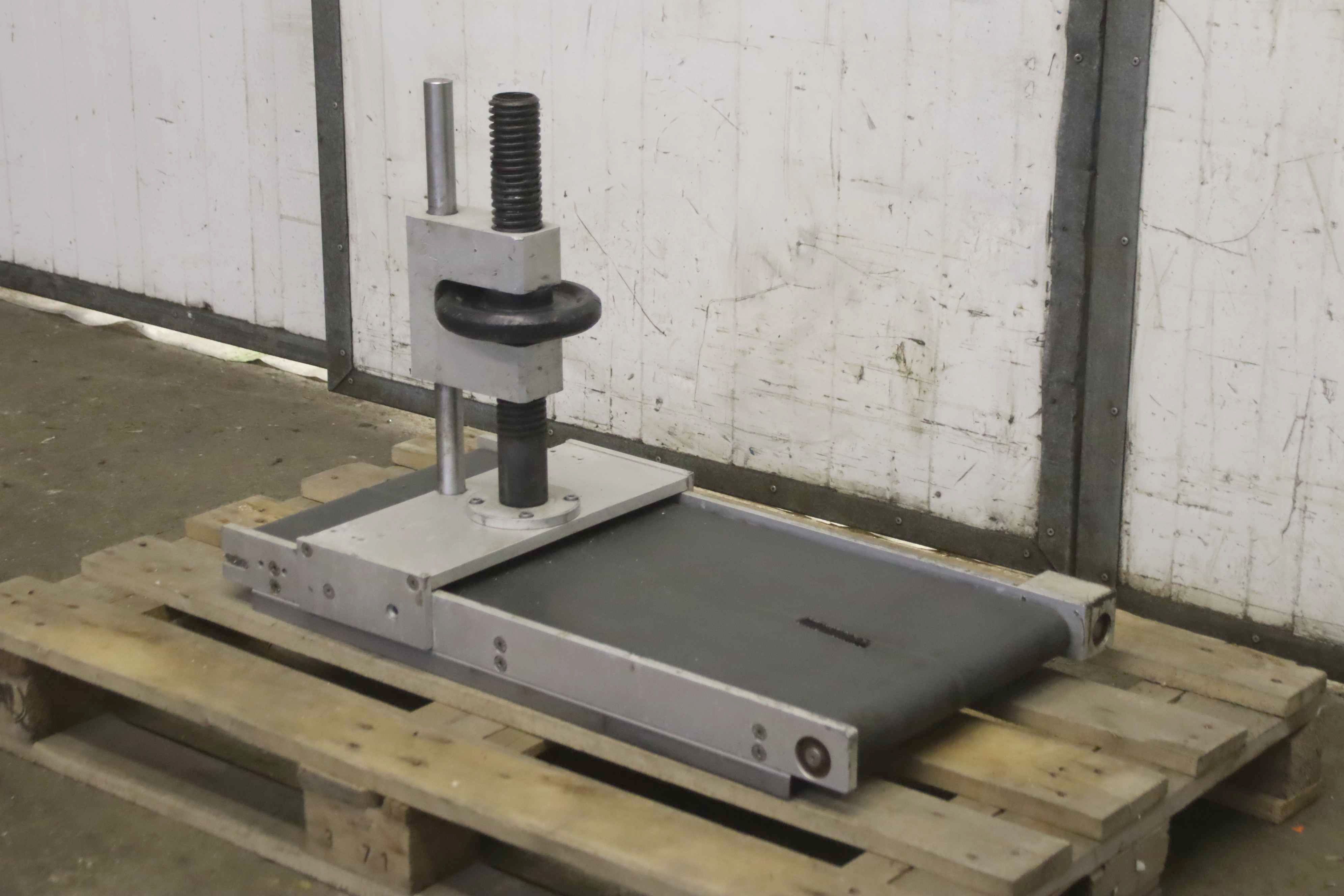 Conveyor belt, belt conveyor, conveyor belt, belt conveyor-Manufacturer: Kramer Grebe Conveyor belt from vacuum packaging system Tiromat 3000/430-Strap width: 370 mm-Conveyor length: approx. 830 mm-Conveyor belt: adjustable in height, without drive-Transport dimension: 830/425/H545 mm-Weight: 28 kg