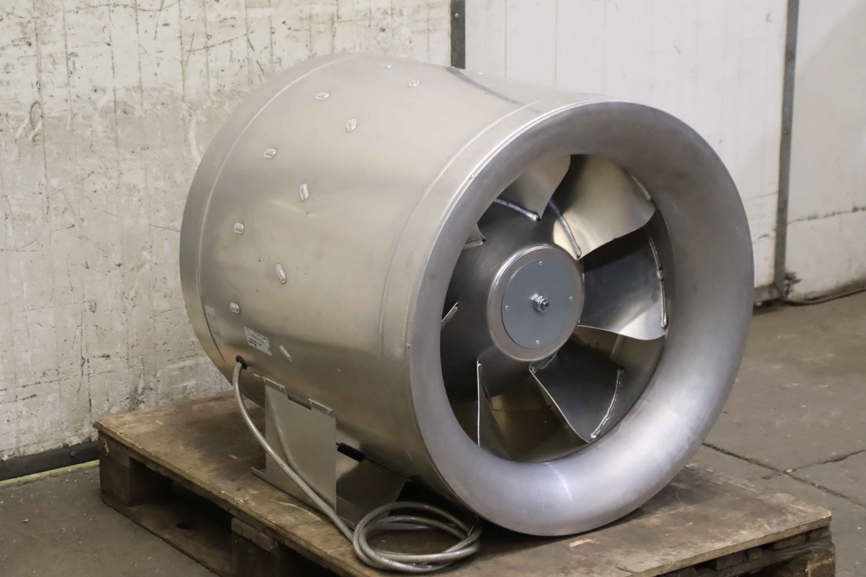 Fan, ventilator, electric motor, blower, emergency ventilation fan, flue gas fan, axial fan, axial ventilator, axial fan, suction fan, diagonal fan, duct fan, diagonal fan -Manufacturer: Maico, axial fan, tube fan, diagonal fan -Type: EDR 71-0080.0665 -Power: 3.74 kW -Conveying volume: approx. 23140 m³/h -Quantity: 3 pieces available -Price per piece -Dimensions: 730/720/H720 mm -Weight: 48 kg/piece