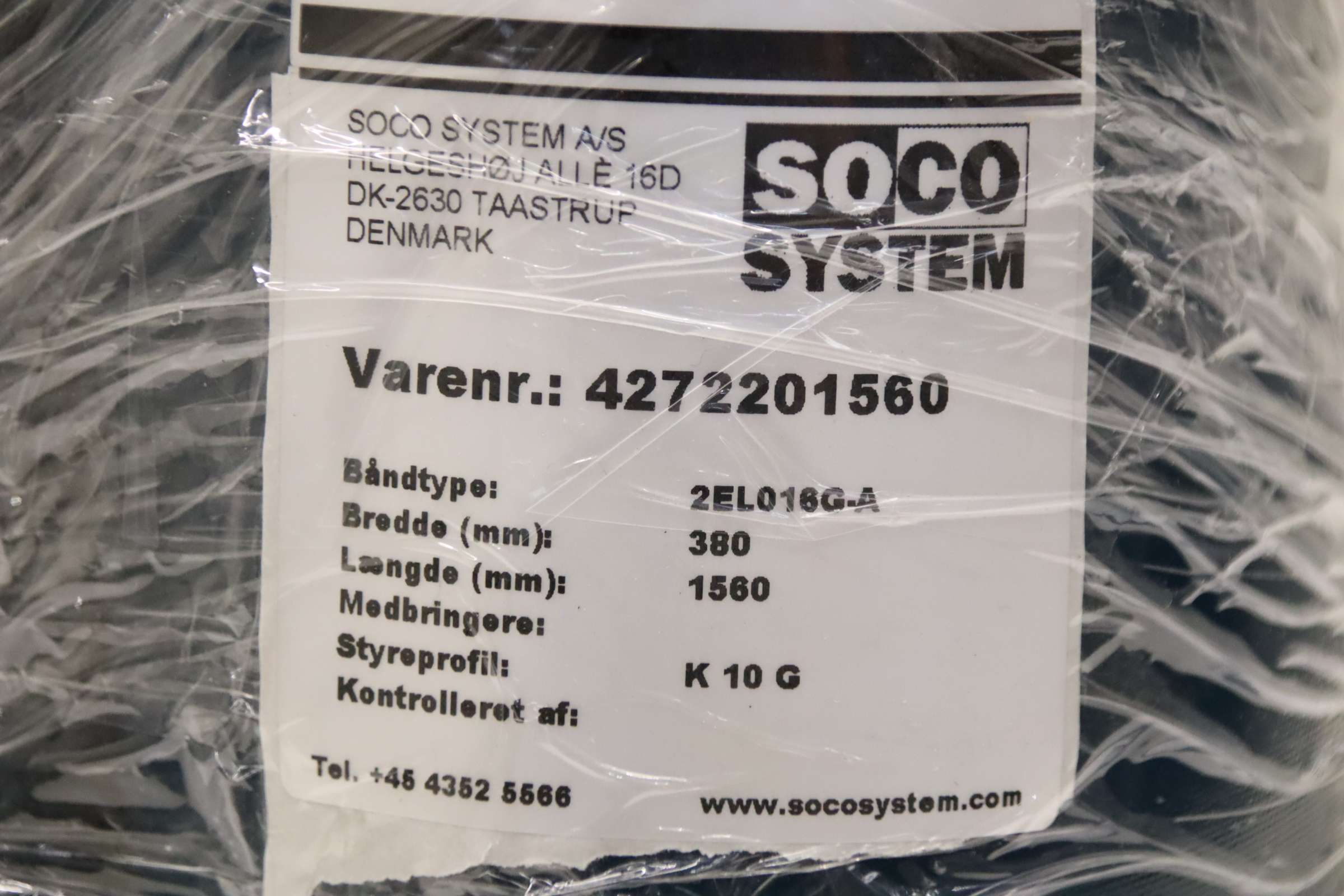 Rubber protective mats, conveyor belt, belt conveyor belt, conveyor belt rubber, rubber conveyor belt, conveyor belt, conveyor belt -Manufacturer: Soco System, Conveyor belt type 2EL016G-A, unused, original packaging -Width: 380 mm -Length: 1560 mm -Quantity: 2 pieces available -Price: per piece -Transport dimensions: 380/200/H130 mm -Weight: 1.4 kg