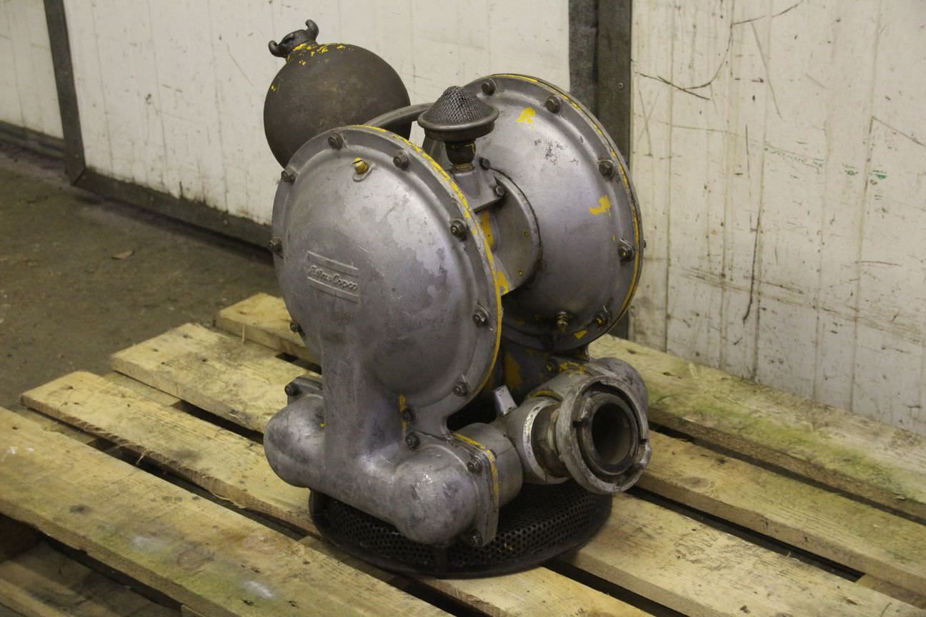 Pneumatic double diaphragm pump-Fast venting and immediate suction of the medium-Dry running without: damage-Hermetically sealed for: moisture-sensitive liquids-Excellent for: abrasive liquids with low to medium viscosity and materials sensitive to shear forces:-Air max. Pressure: bar-Air connection: 1 inch-Water output: l/min-Water max. Pressure: bar-Connection: B coupling-Dimensions: 480/400/H530 mm-Weight: 32 kg