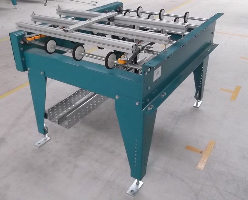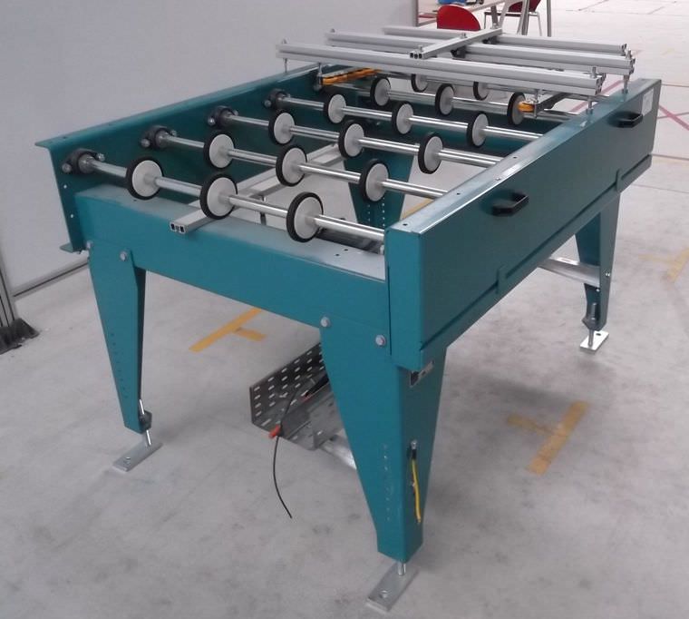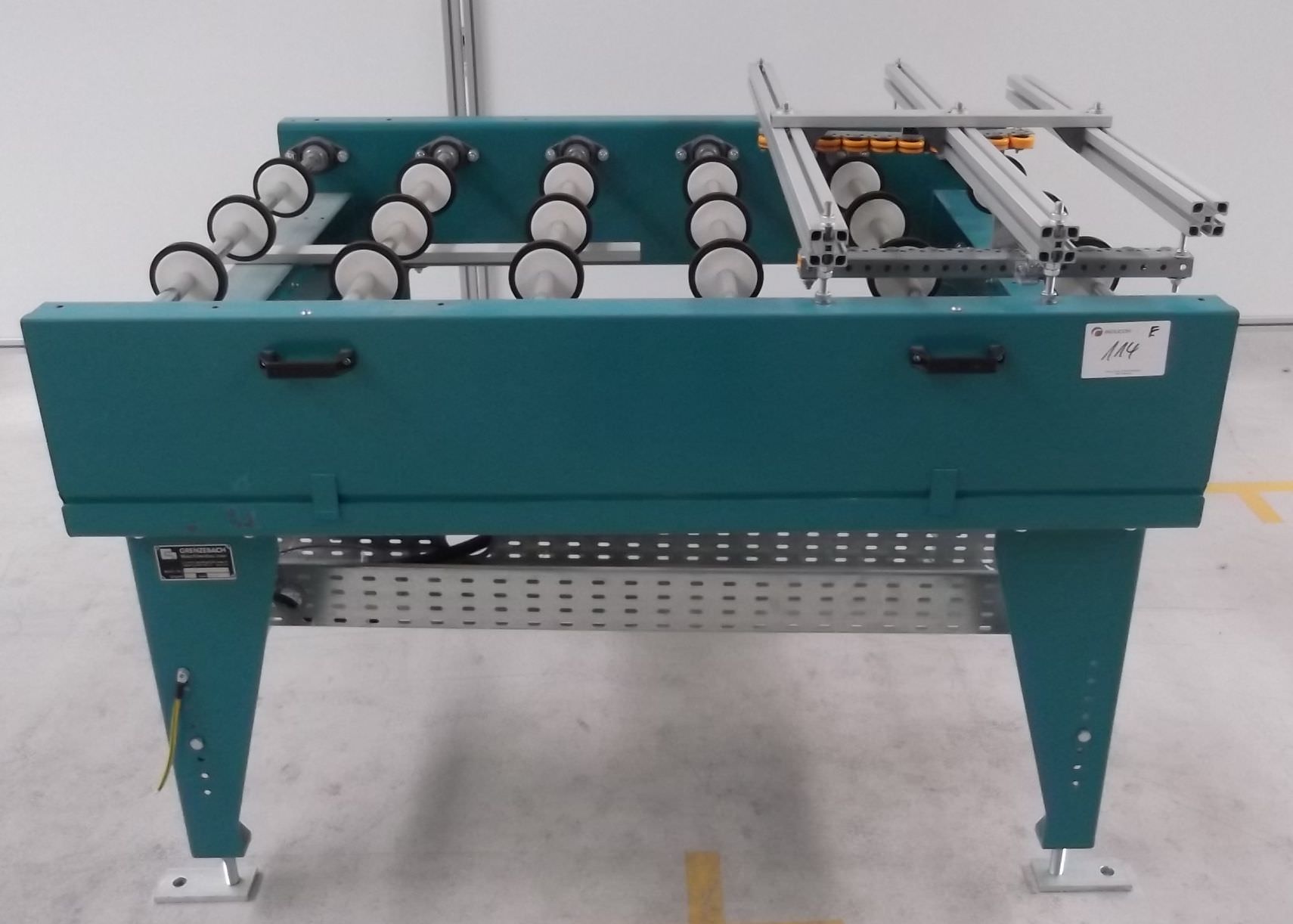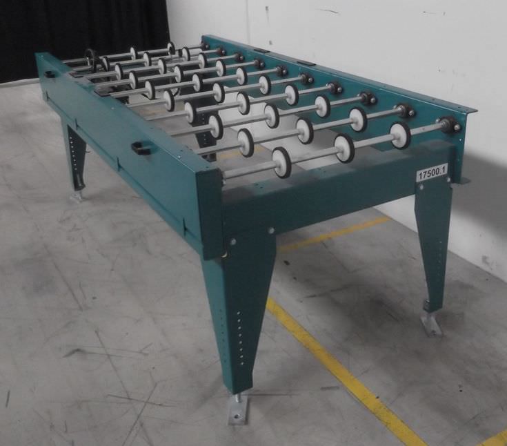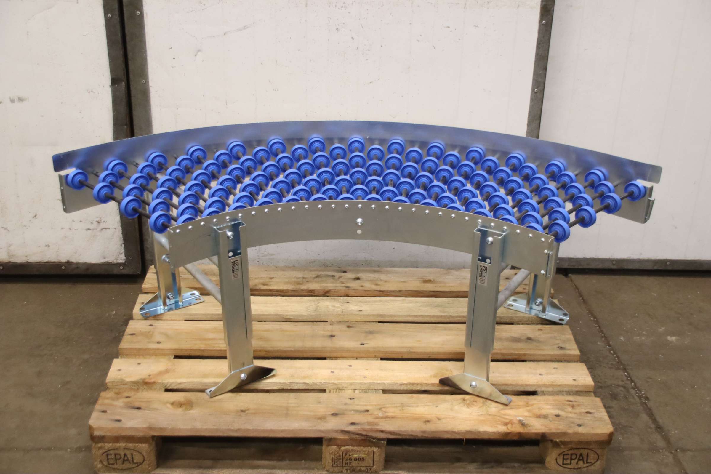 Curved roller conveyor, curved track, curved roller conveyor, curved roller conveyor, curved roller conveyor, roller curve, curved conveyor with drive, roller track, roller curve conveyor, roller track, conveyor track, lightweight roller conveyor -Manufacturer: Soco System, non-driven roller curve conveyor, height-adjustable -Height: max. 710 mm -Rollers: Ø 48 x 15 mm -Number: 2x roller conveyor available -Price: per piece -Transport dimensions: 1470/600/H510 mm -Weight: 23 kg/pc.