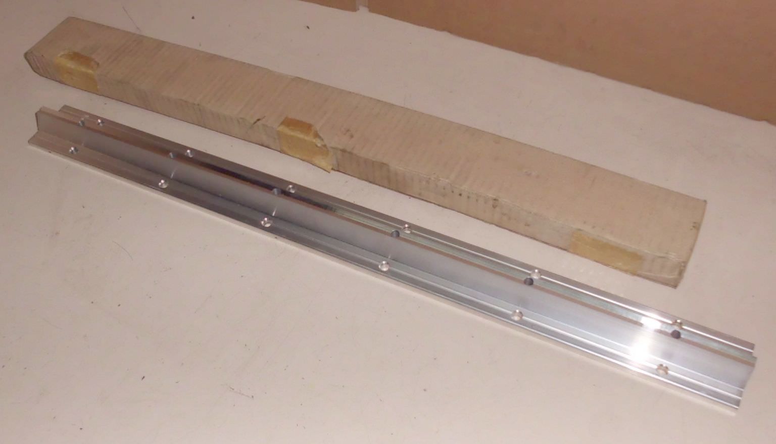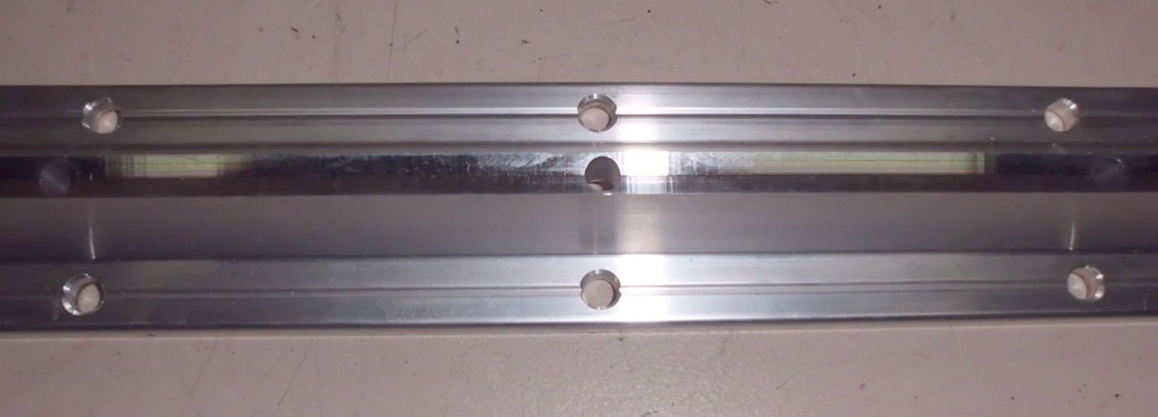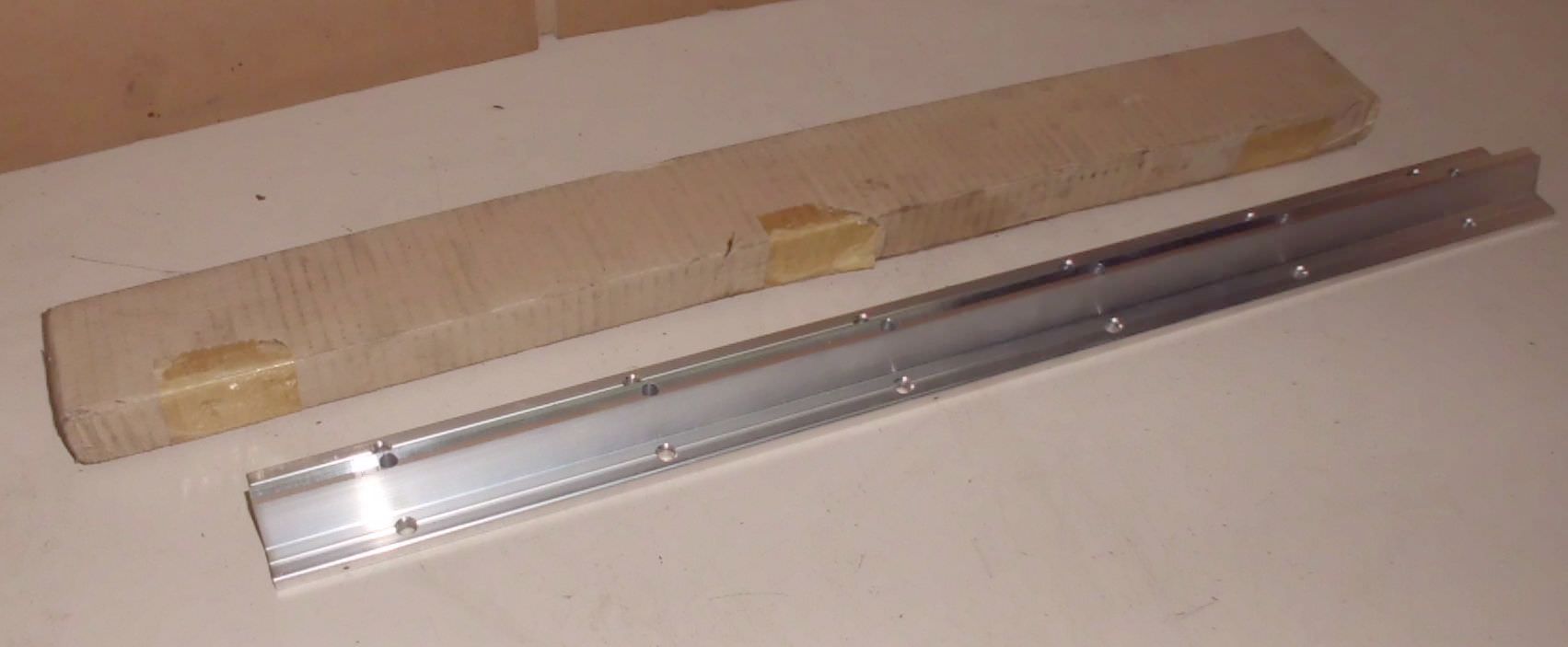 Guide rail - support rail for shafts, rails -Type: 1050-620-00 -Holes: 6.5 mm -Holes spaced 100 mm -Price: per piece -Quantity: 6 pieces available -Dimensions: 600x50xH23 mm -Weight: 1 kg/piece
