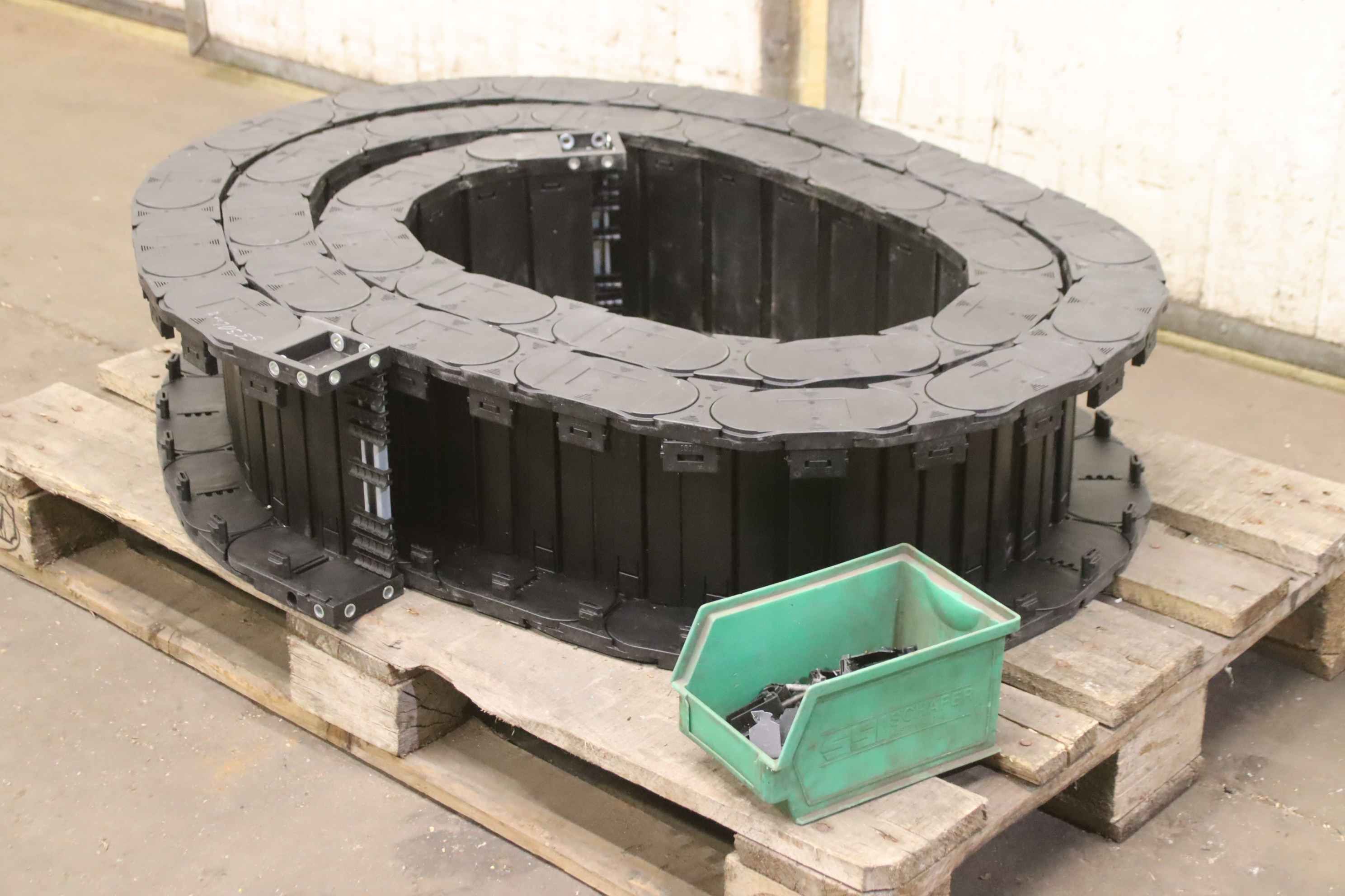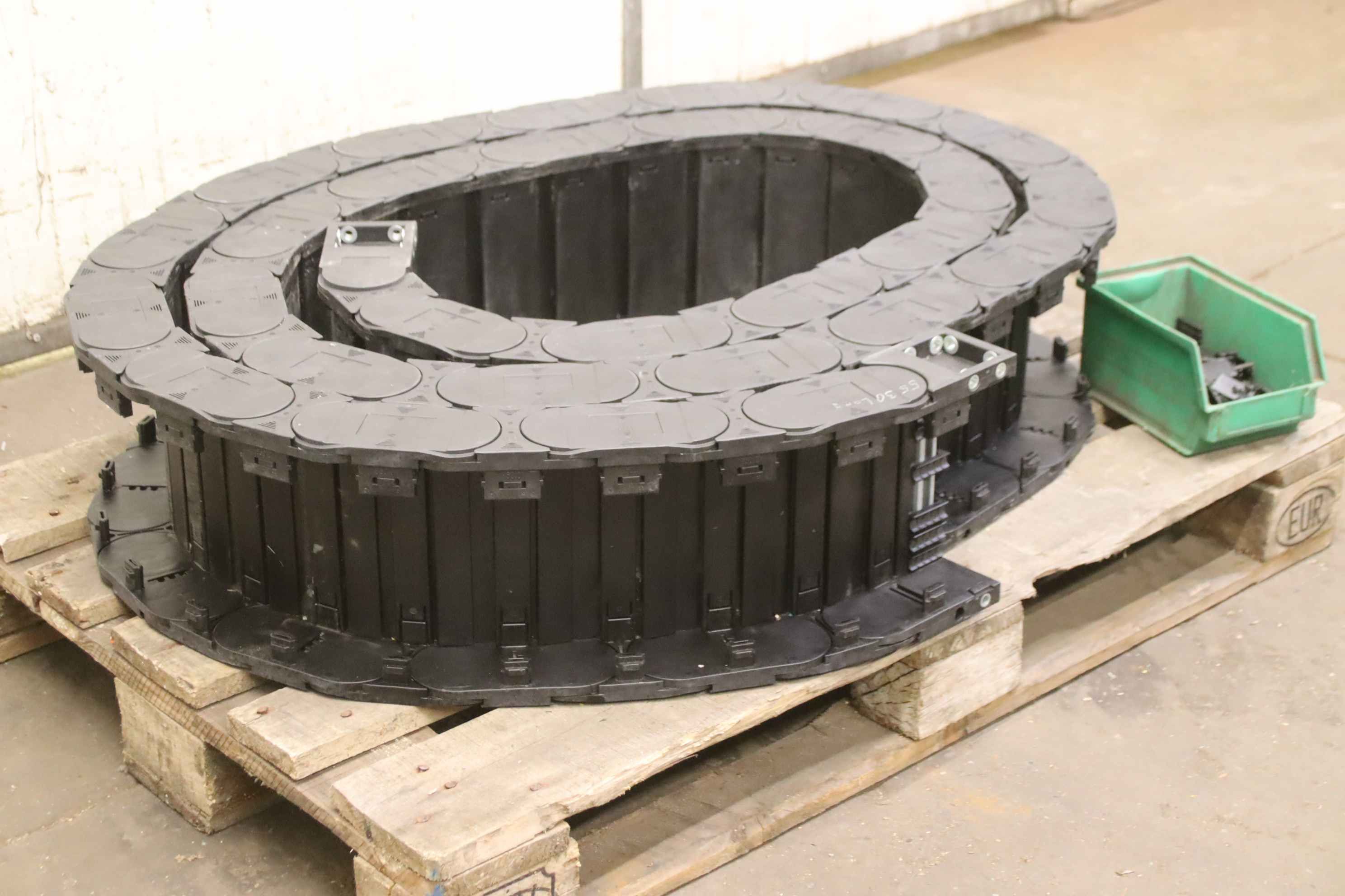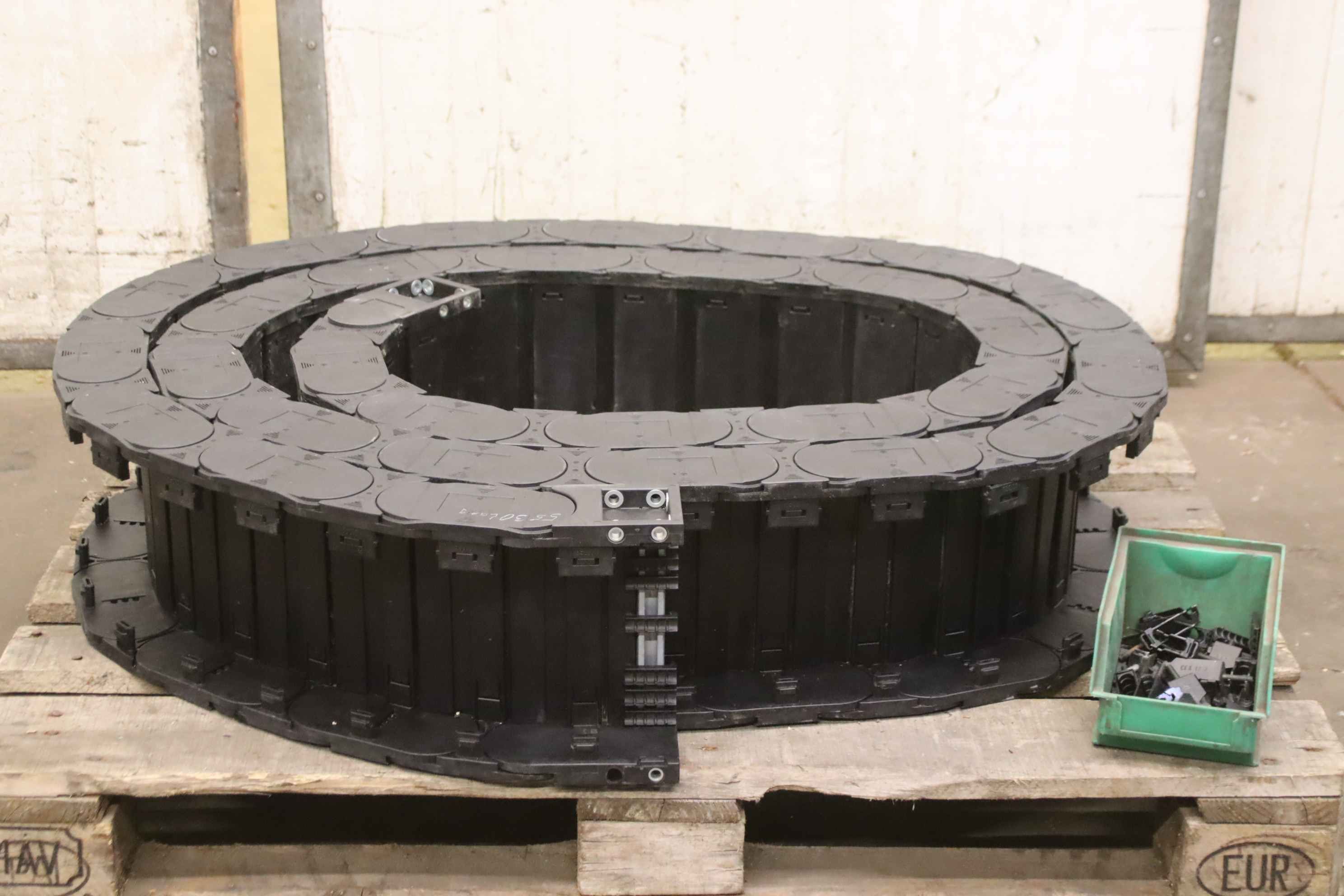 energy chain, cable drag chain, energy guiding chain, cable chain, drag chain-Manufacturer: IGUS, energy chain cable drag chain-Length: 5530 mm-Width: 240 mm-Accessories: incl. U-clamps type CFX 12.1 / CFX 12.2 see photos-Transport dimensions: 1060/840/H245 mm-Weight: 26 kg