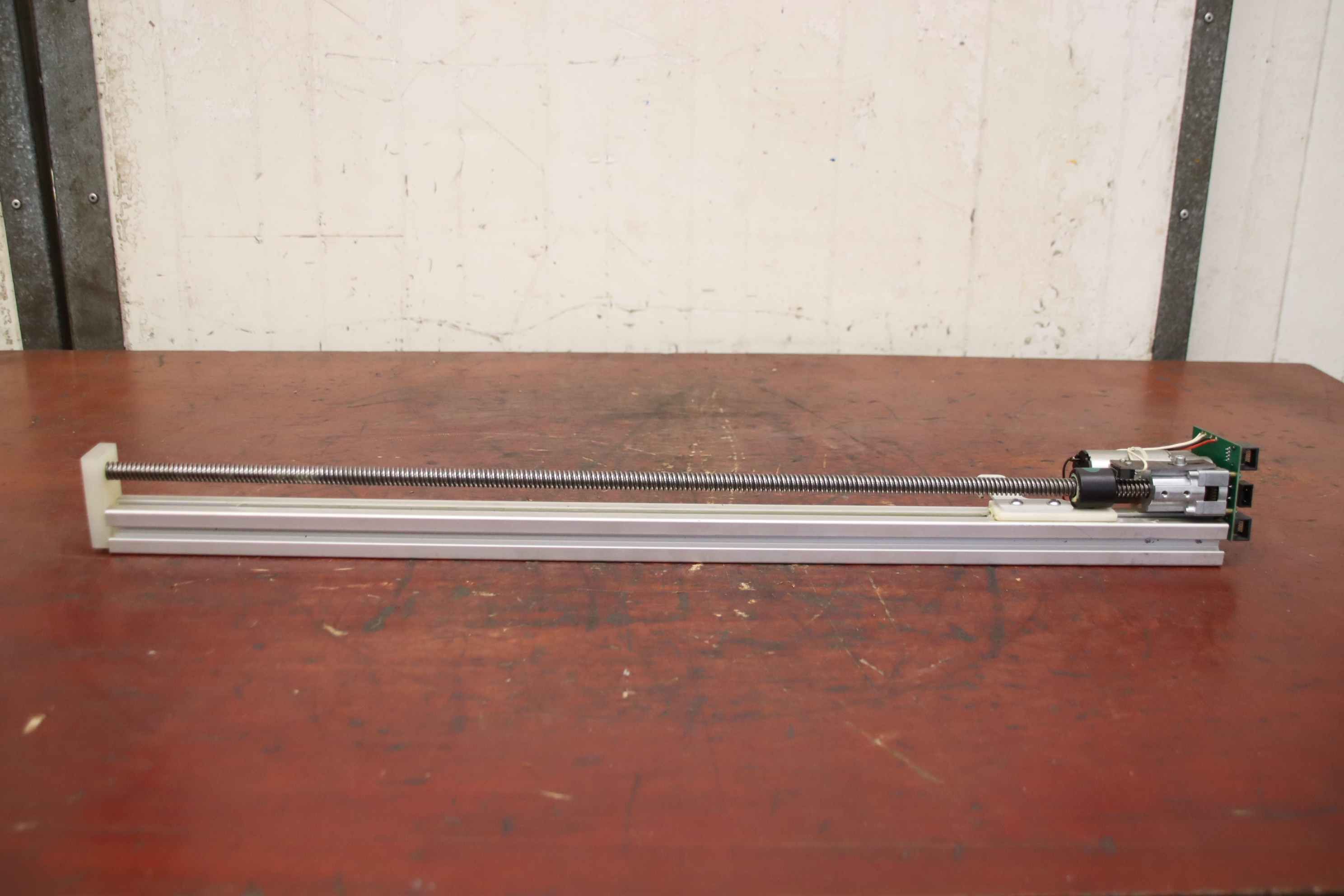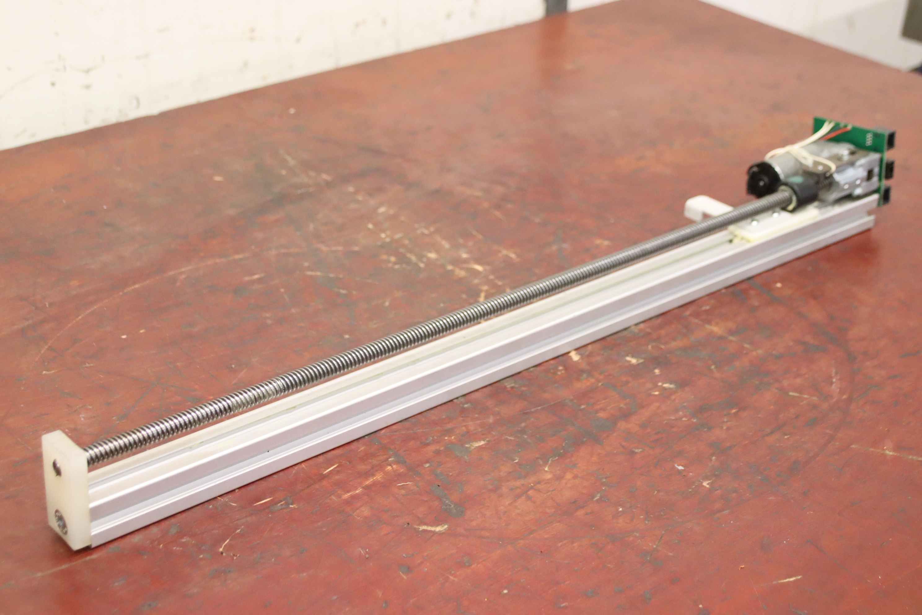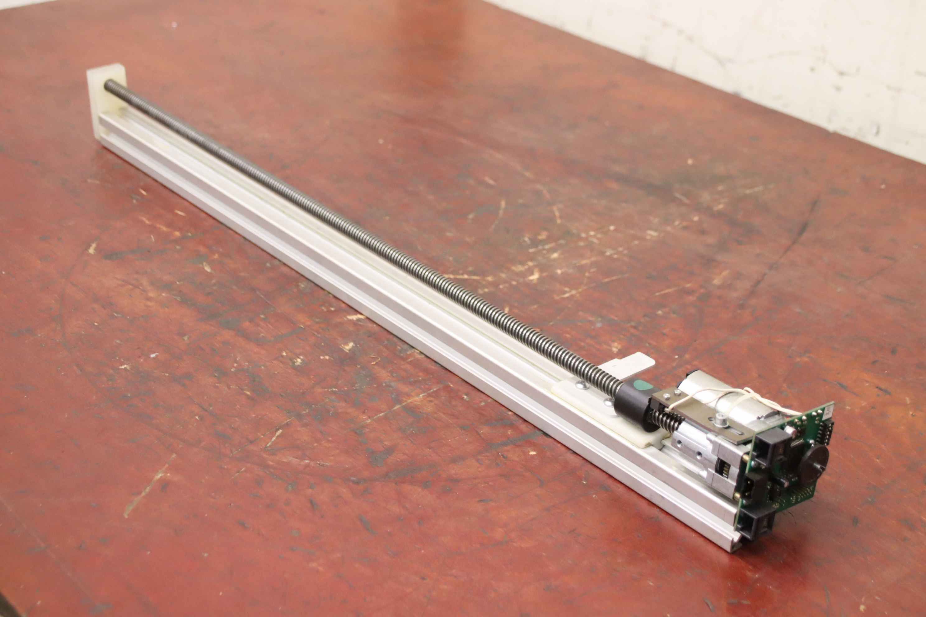 Linear drive, linear gear, lifting gear, spindle drive, linear axis, linear rail, linear guide, roller guide rail, guide carriage, guide rail, rail guide for tool dispensing systems -Manufacturer: igus, linear drive type DryLin T from Achterberg Toolbase AK -Actuator: DLG 060-068.03 -Threaded rod: Ø 12 x 980 mm -Number: 8x linear drive available -Price: per piece -Dimensions: 1615/110/H120 mm -Weight: 5.5 kg/piece