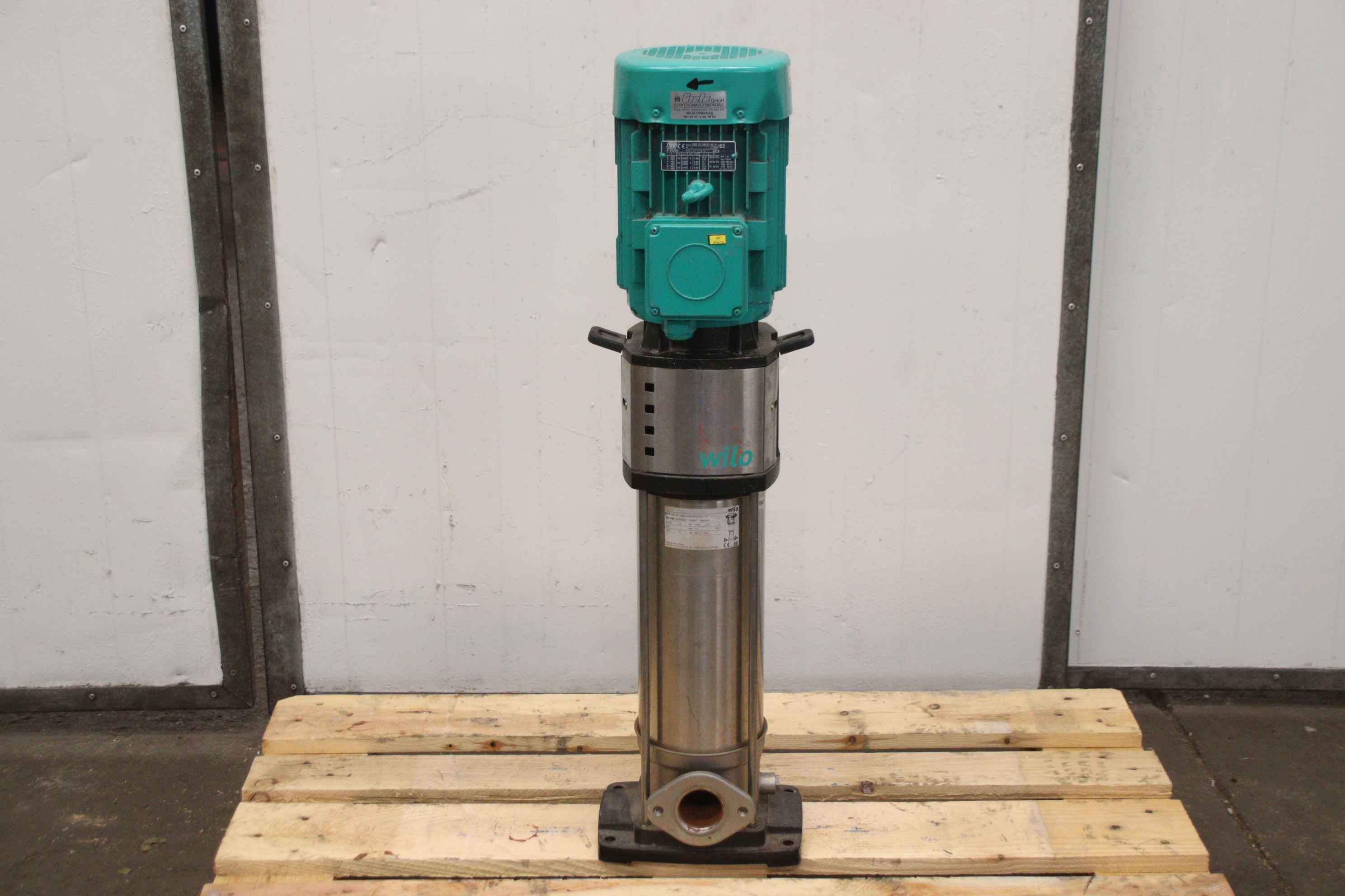 Centrifugal pump, water pump, domestic water pump, garden pump, high-pressure centrifugal pump-Manufacturer: WILO, high-pressure centrifugal pump type Helix V1008-1/16/E/KS/400-50-Power: 3 kW-Flow rate: l/h-p max: 16 bar-Number: 2x pump available-Price: per piece-Dimensions: 250/240/H950 mm-Weight: 47 kg/piece