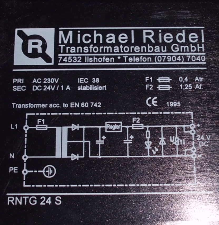 transformer -Type: RNTG 24 S -DC power supply: pri. 230 V sec. 24 V -Power: 400 VA -Primary: 230V -Secondary: 24/1A V -Power: 24 W -Number: 1 pieces available -Price: per piece -Weight: 1 kg