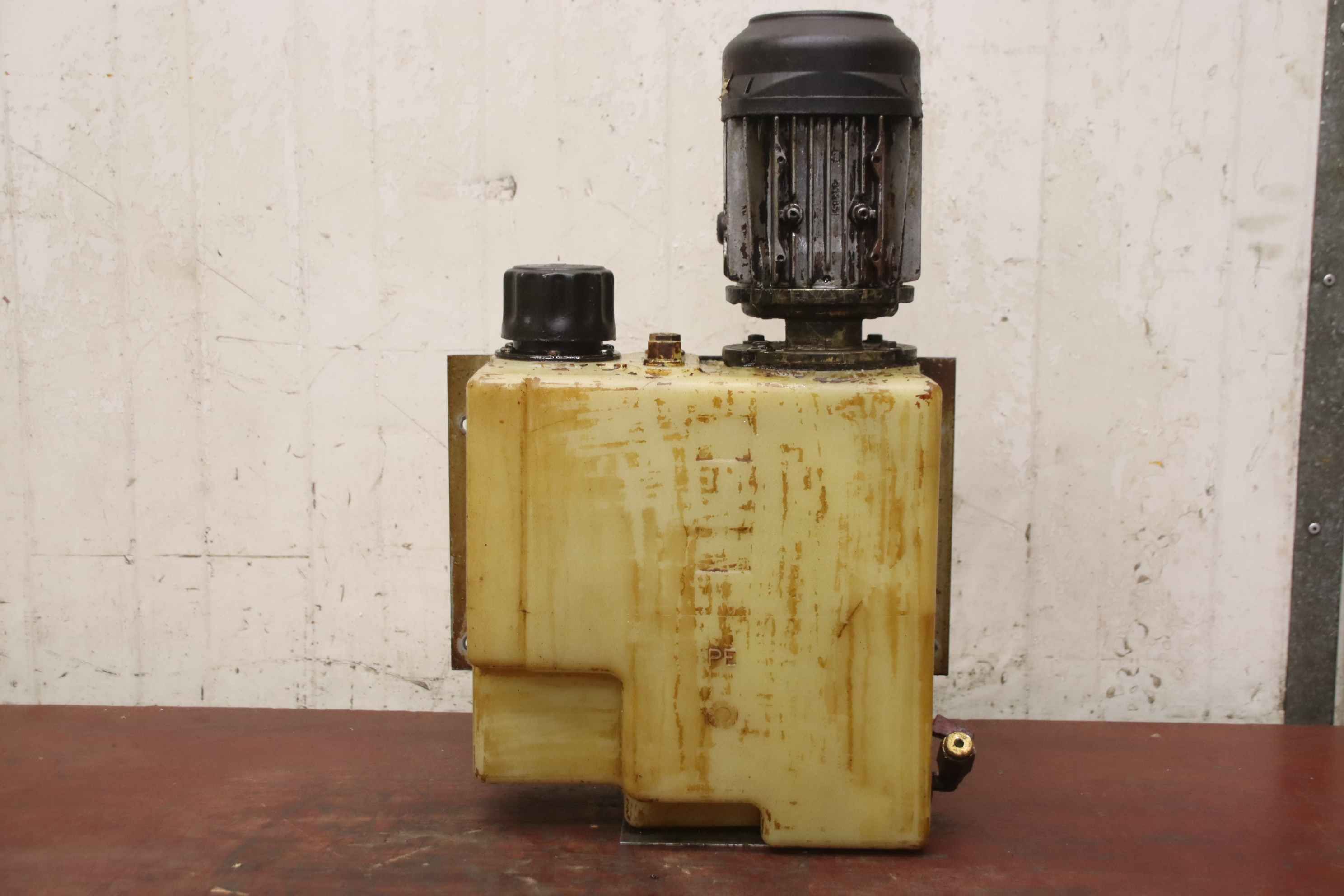 Hydraulic unit, hydraulic pump, hydraulic pump, universal unit, hydraulic station,-Manufacturer: Bosch, hydraulic unit with hydraulic tank from vertical lathe Scherer VDZ 80 DS-Motor: ATB 0.5 kW / 2820 rpm-Individual components: see photos-Dimensions: 360/190/H540 mm-Weight: 14 kg