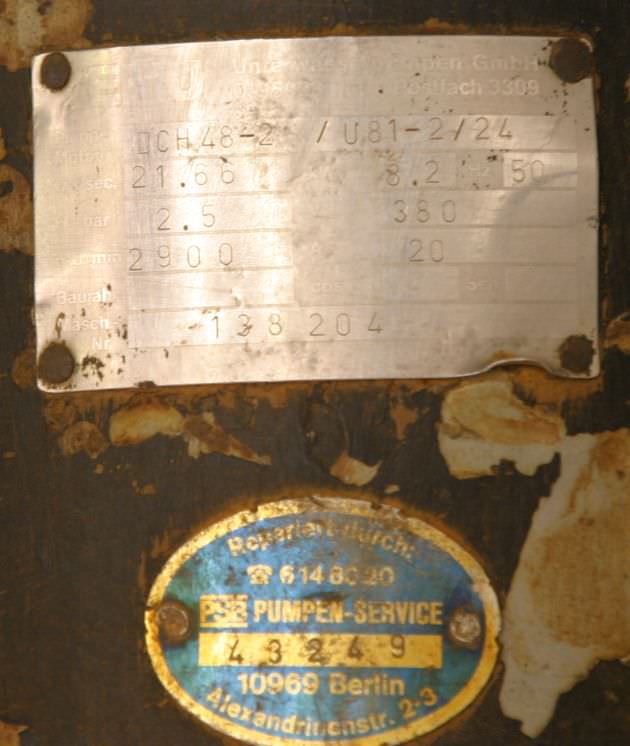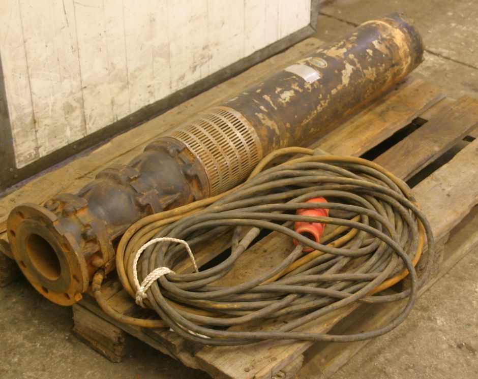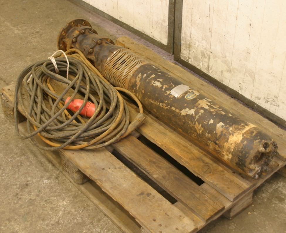 Underwater electric pump, submersible pump, well pump, deep well pump -Drive: 8.2 kW -Output: 1800 l/min -Delivery head H: 25 m (2.5 bar) -Pump length: 1260 mm -Flange outer diameter: 220 mm -Flange inner diameter: 100 mm -Pump diameter: 170 mm -Weight: 150 kg