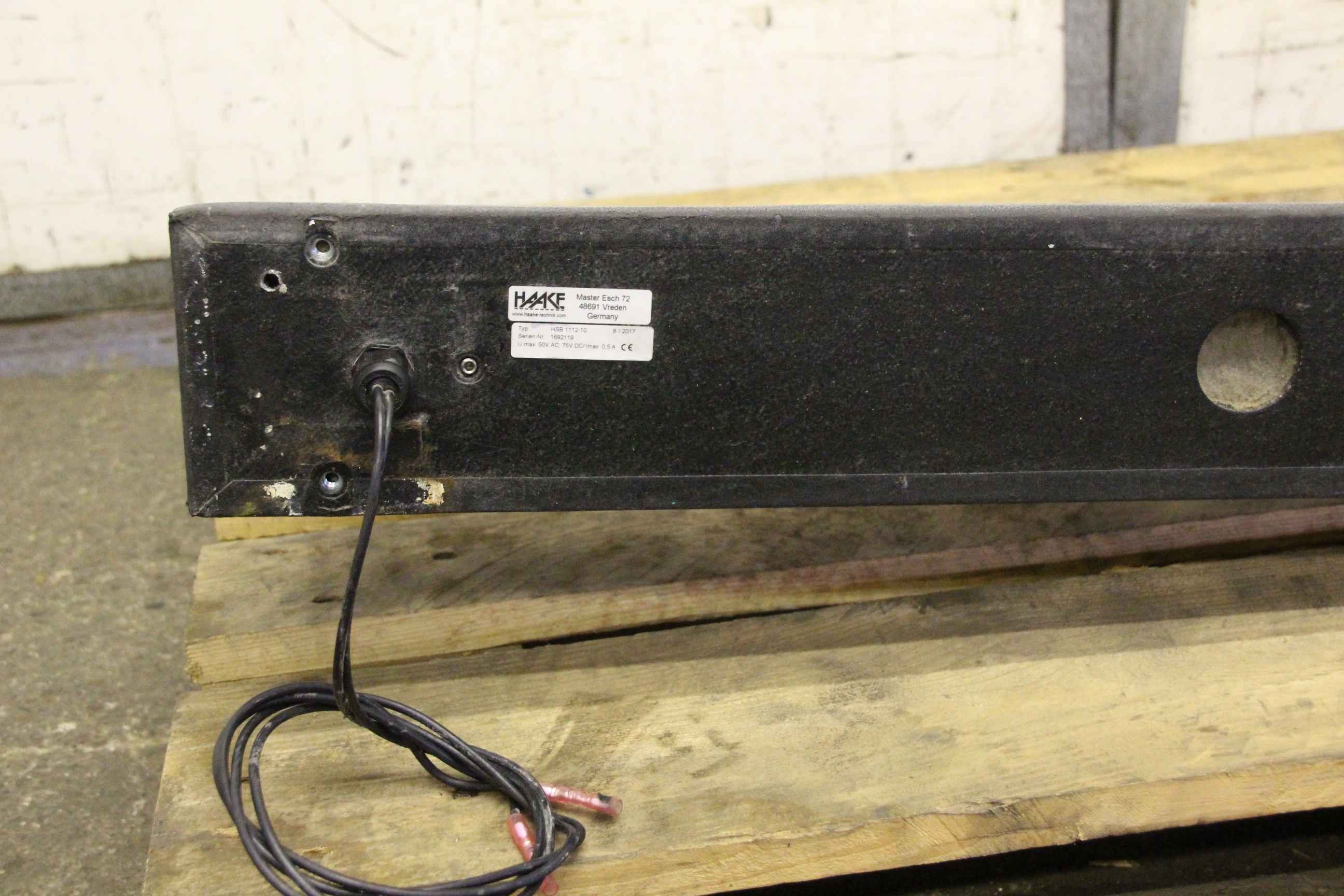 Safety control, safety door switch, switch buffer, bumper, safety contact buffer-Manufacturer: Haake, switch buffer - bumper-Type: HSB 1112-10-Voltage: 50 V AC, 75V DC-Price: per piece-Number: 2 pieces-Dimensions: 2830/180/H110 mm-Weight: 7.2 kg/piece
