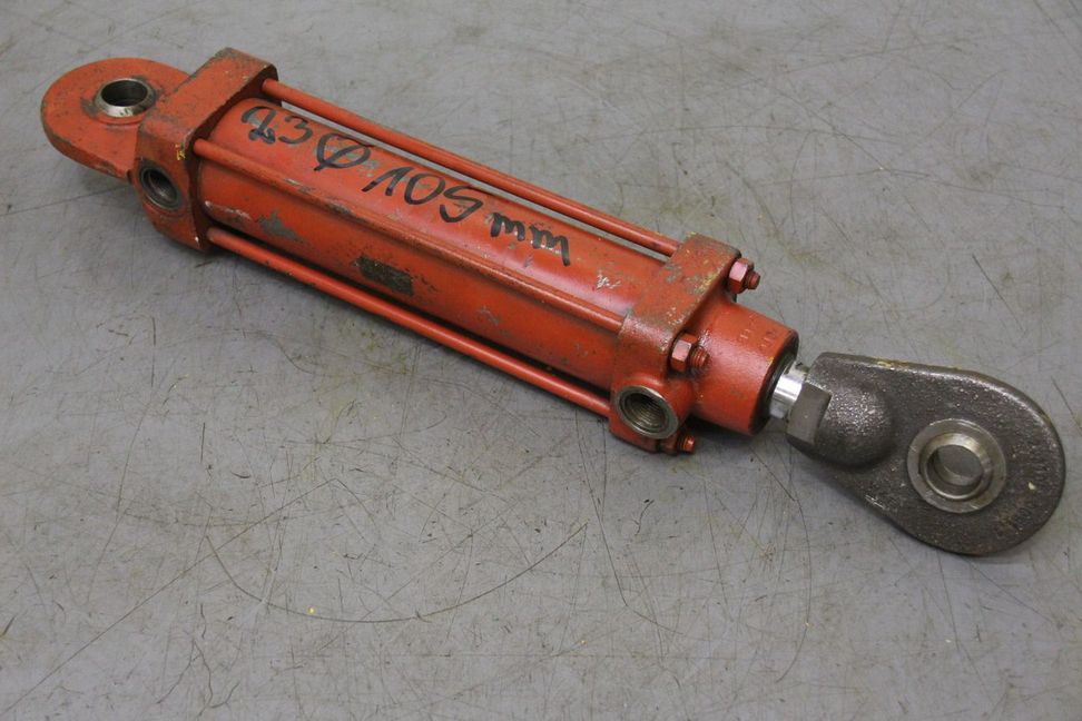 Hydraulic cylinder, support cylinder, hydraulic piston, pressure piston, center mower lifting cylinder -Hydraulic cylinder: stroke 105 mm -Piston rod: Ø 23 mm -Recordings: Ø20 x 22 mm -Cylinder: outer Ø 58 mm -Dimensions: 475/70/H75 mm -Weight: 5.7 kg