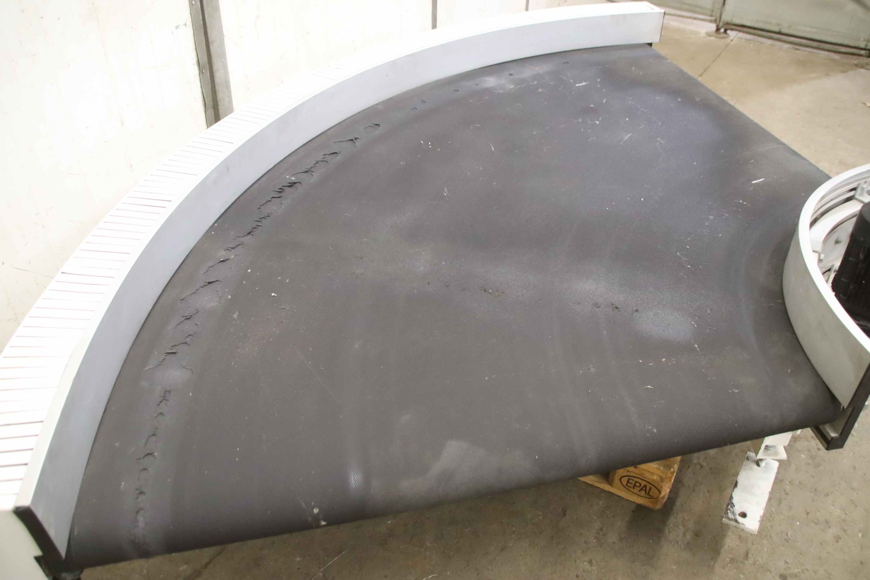 Curved conveyor belt, curved track, curved conveyor track, curved roller conveyor, curved roller conveyor, curved conveyor, curved conveyor with drive, conveyor belt -Manufacturer: TGW, 90° curved conveyor belt with drive -Speed: 10m/min -Drive: SEW-Eurodrive 0.55 kW 16 rpm SA57 DT80K4/TF/Z/IS -Conveyor width: 1275 mm -Transport dimension: 1600/2760/H545 mm -Weight: 342 kg
